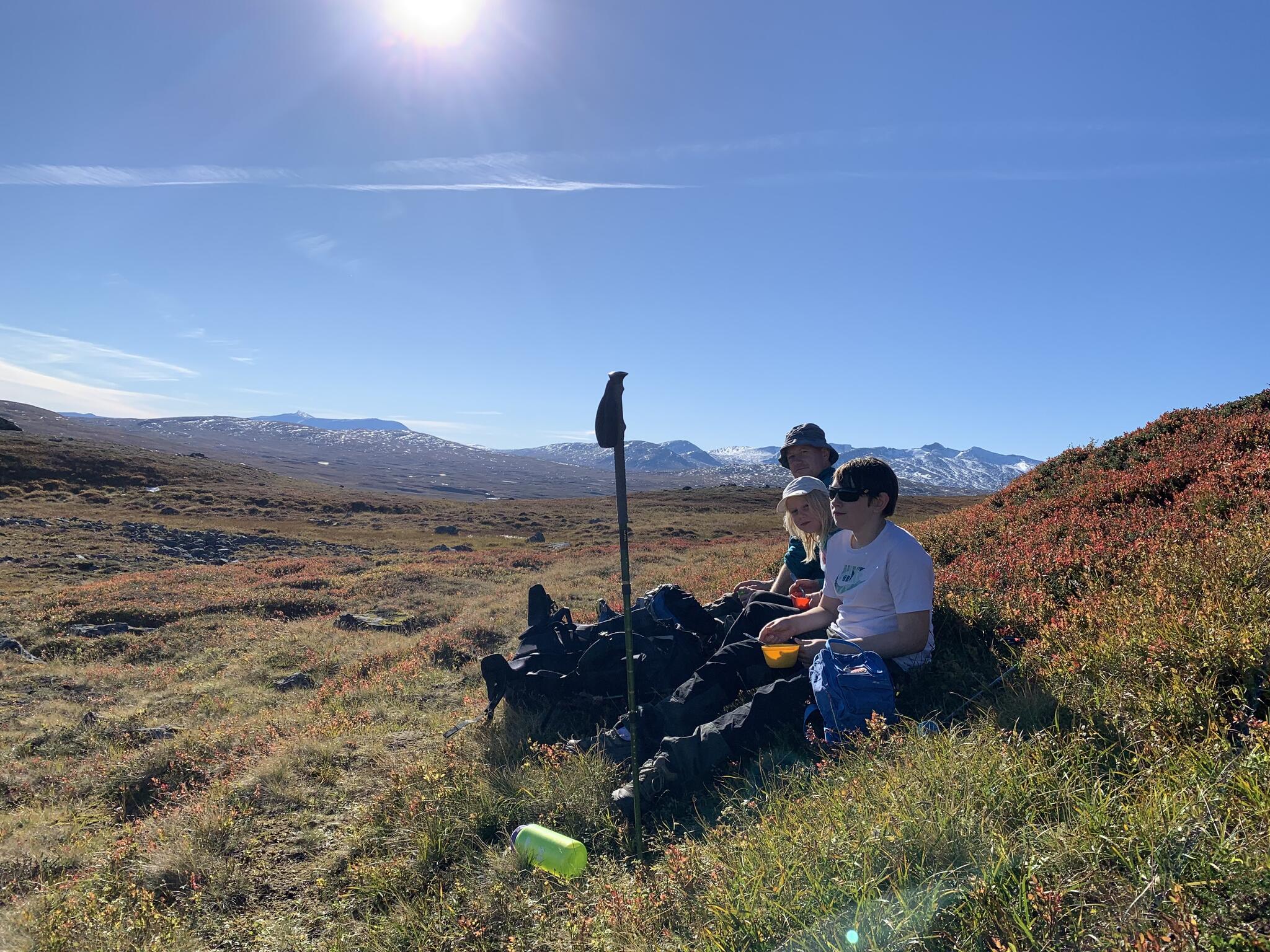 I mer än en månad hade vi väntat på en helg med fint väder för fjällvandring. Nu när det sammanföll med firande av vårt tennbröllop så blev det ju lämpligt. På bröllopet bad vi våra gäster skriva på lappar hur vi skulle fira vårt femårsfirande. Det var nu vi firade och ett av förslagen var ”Spaweekend i Jämtlandsfjällen”. Så vandring och bastu i Storulvån blev bra.