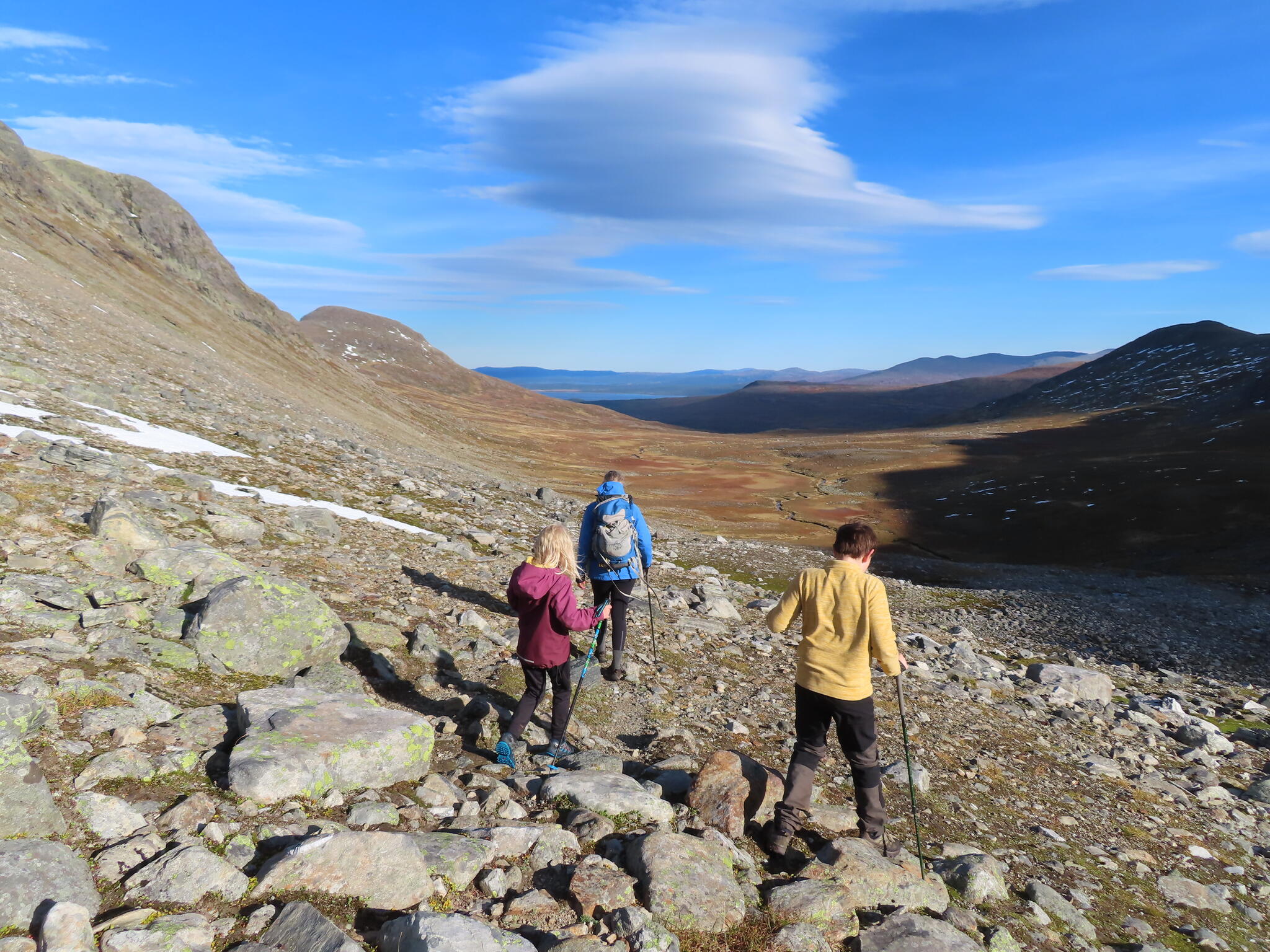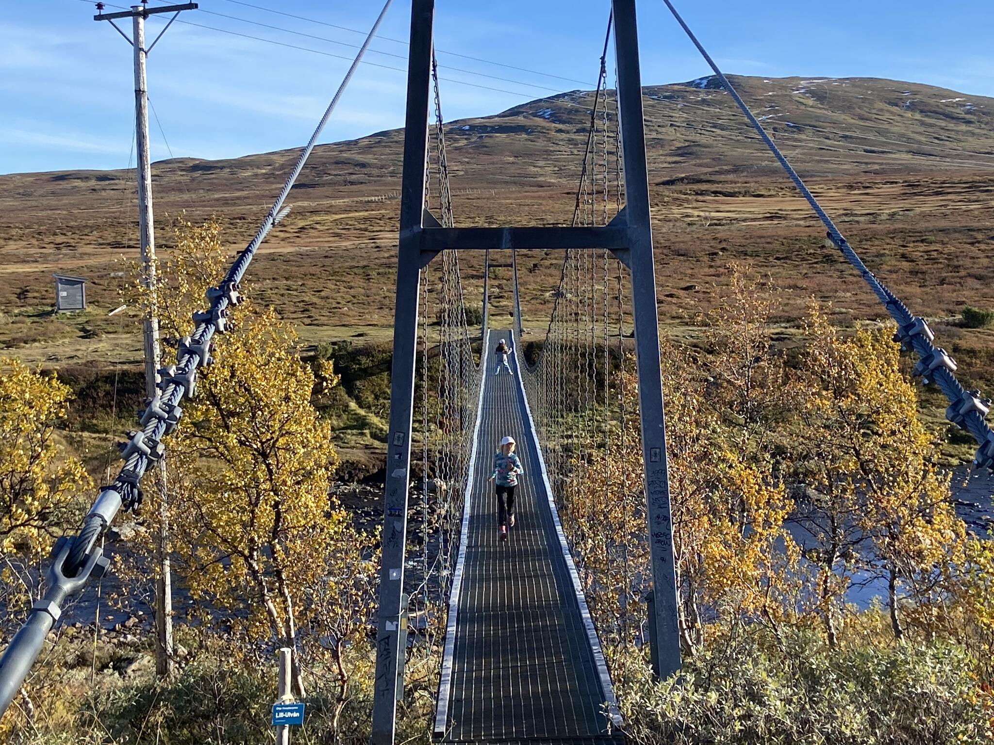 Från toppen delade vår familj på oss och jag gick vidare längs ryggen och sedan söder om dalgången vid Lillulvån, till hängbron. Medan övriga gick mer rakt på den hängbron. Där möttes vi igen.