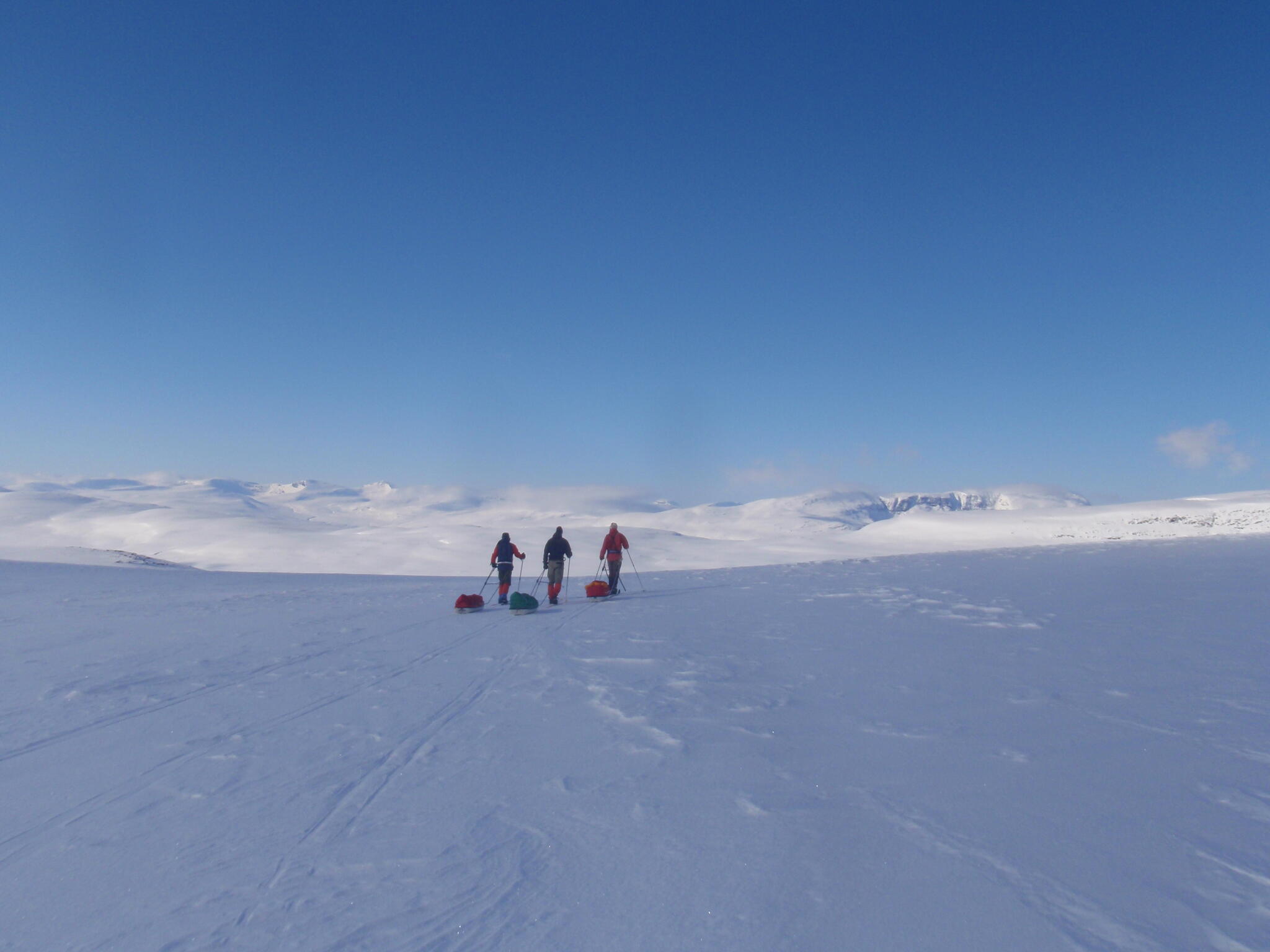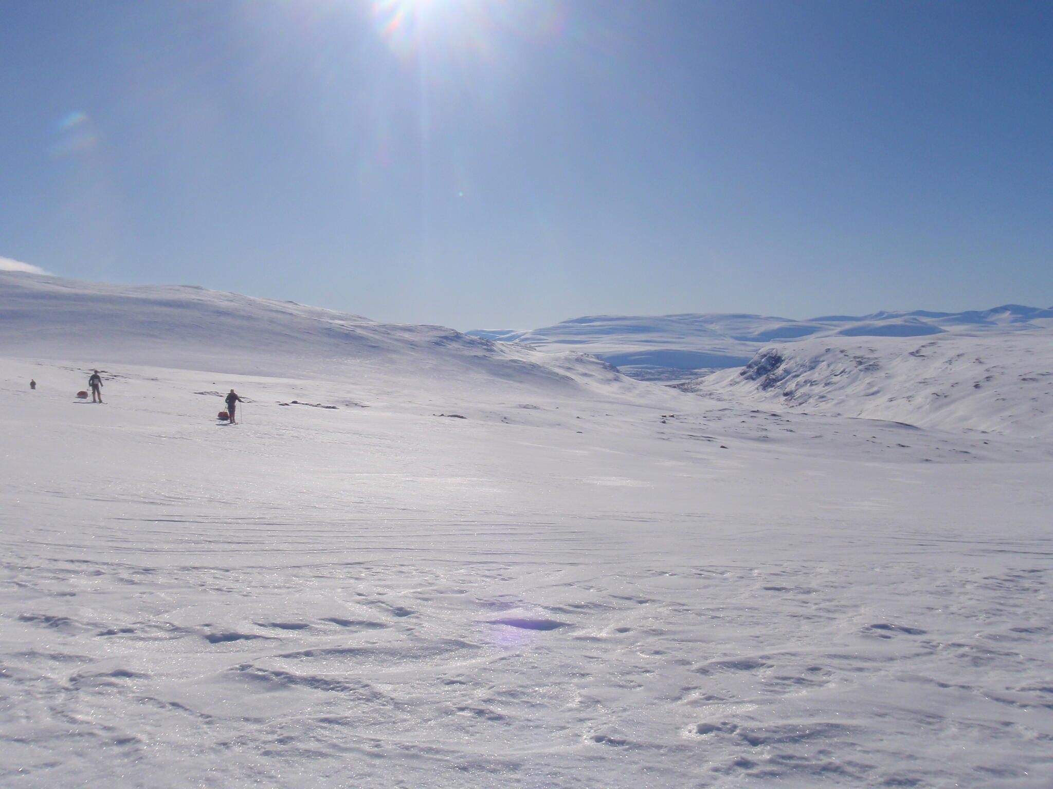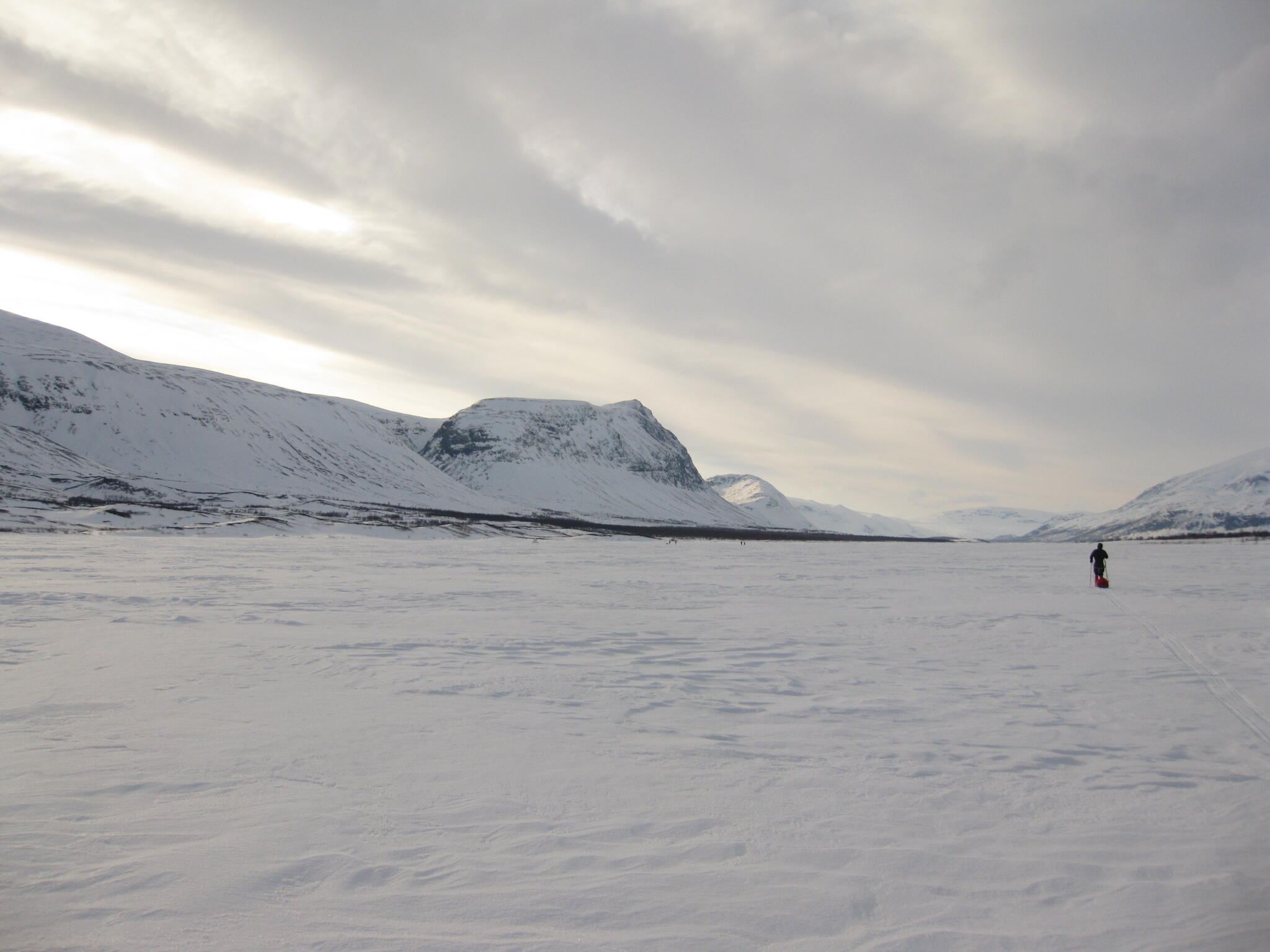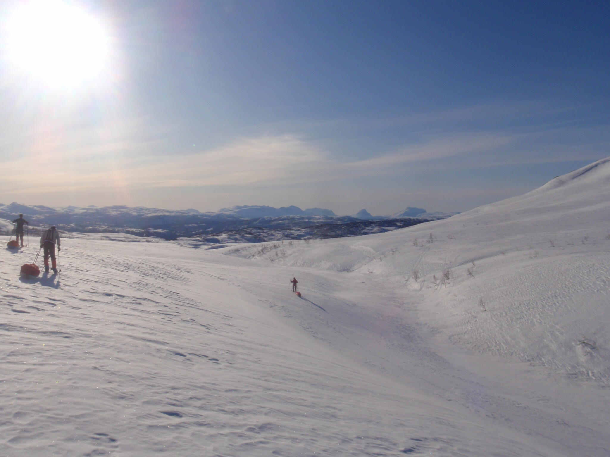 Vi mötte inga andra som var på turåkning annat än till och från pimpelfiskeplatser. Med tanke på hur pass vackert och lättillgängligt området är från Sverige så var det förvånansvärt få svenskar där. Trots att vi var i området runt påsk så såg vi inga norrmän som var på tur. Vi tältade ca ett dygn vid Nordkalottleden och under den tiden passerade ingen.