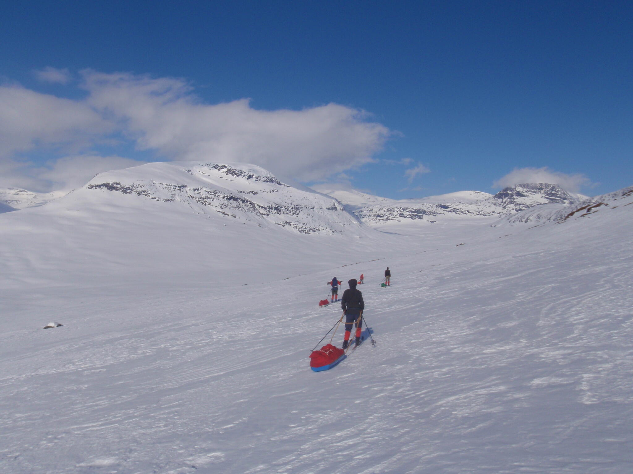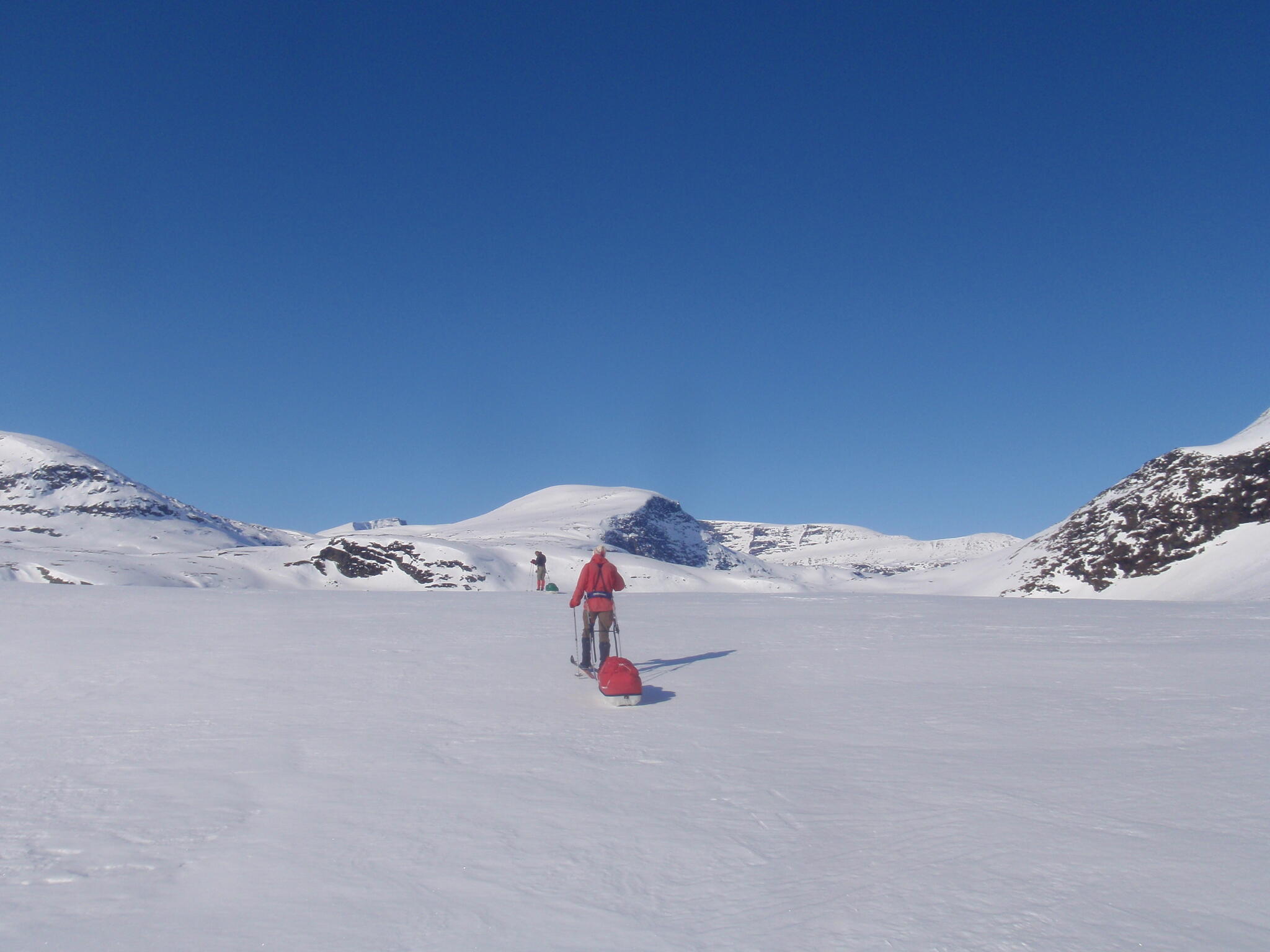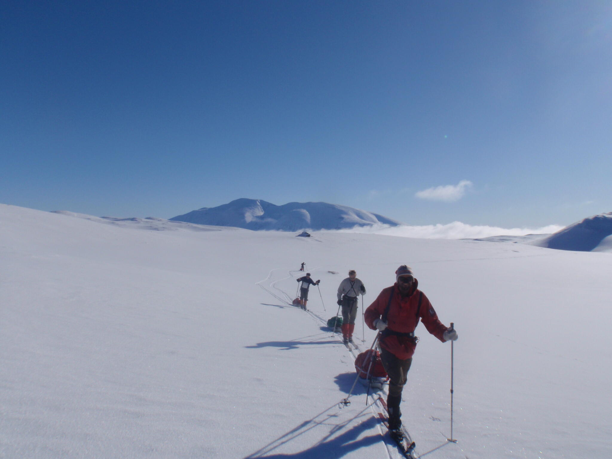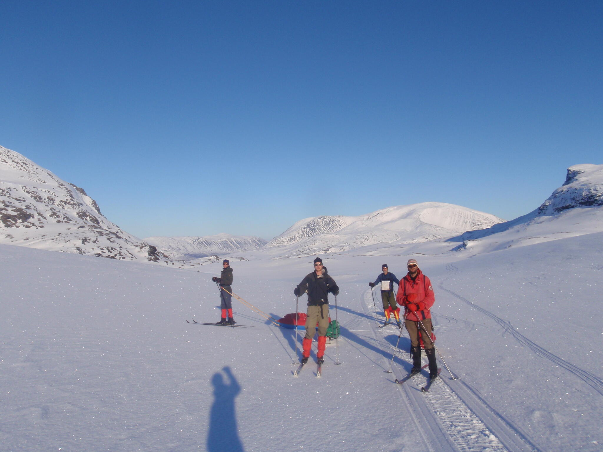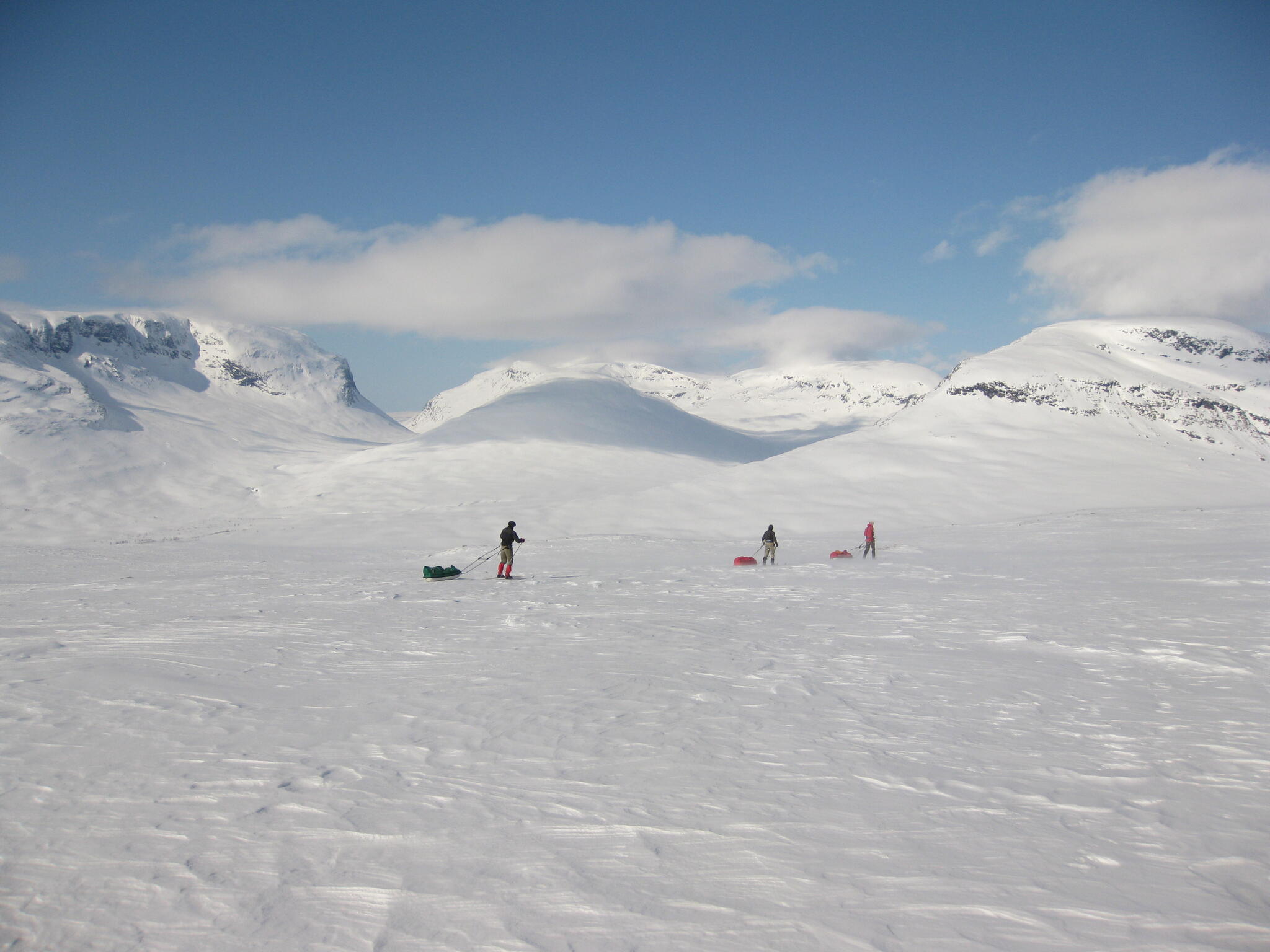 Vi mötte inga andra som var på turåkning annat än till och från pimpelfiskeplatser. Med tanke på hur pass vackert och lättillgängligt området är från Sverige så var det förvånansvärt få svenskar där. Trots att vi var i området runt påsk så såg vi inga norrmän som var på tur. Vi tältade ca ett dygn vid Nordkalottleden och under den tiden passerade ingen.