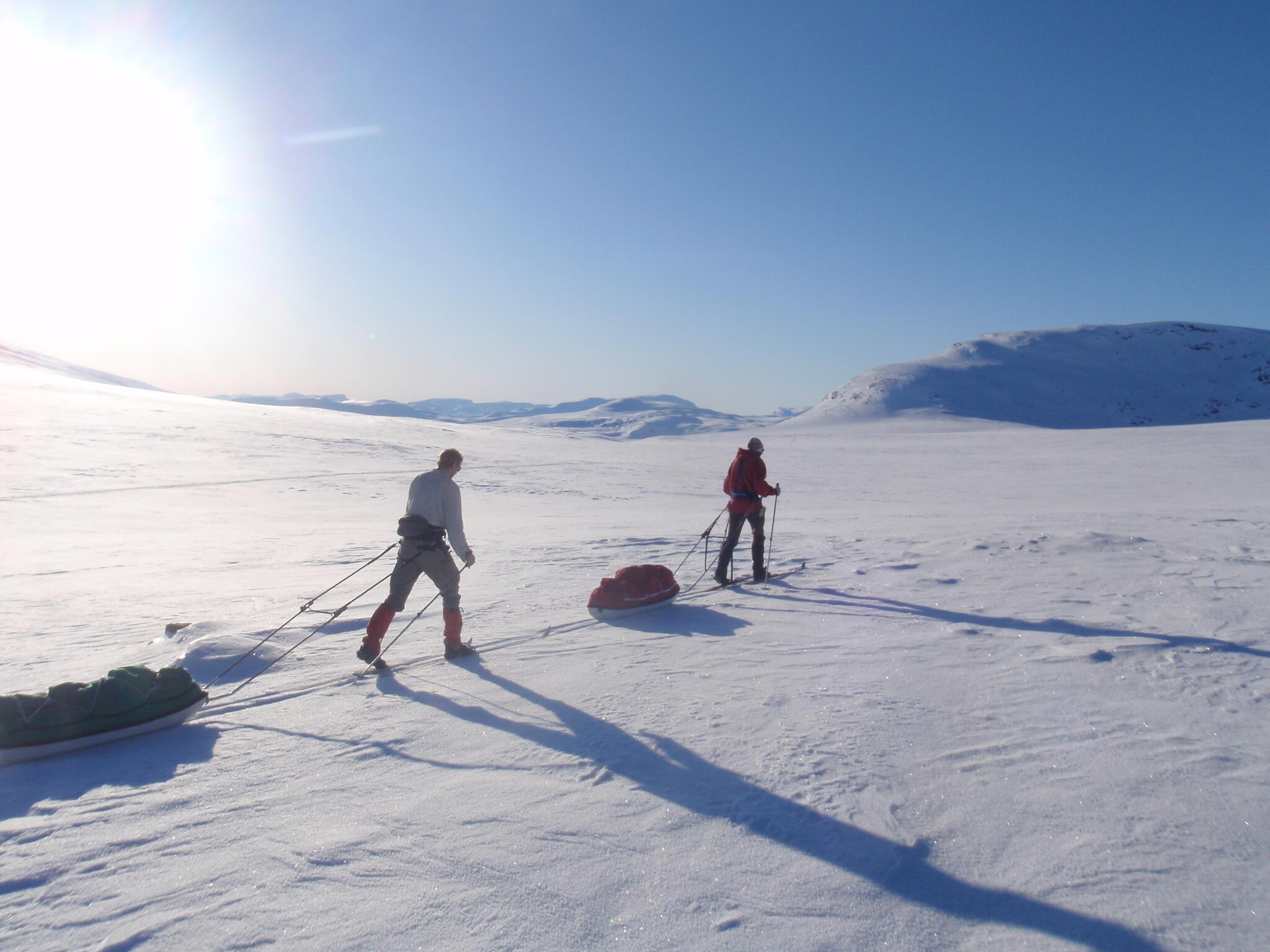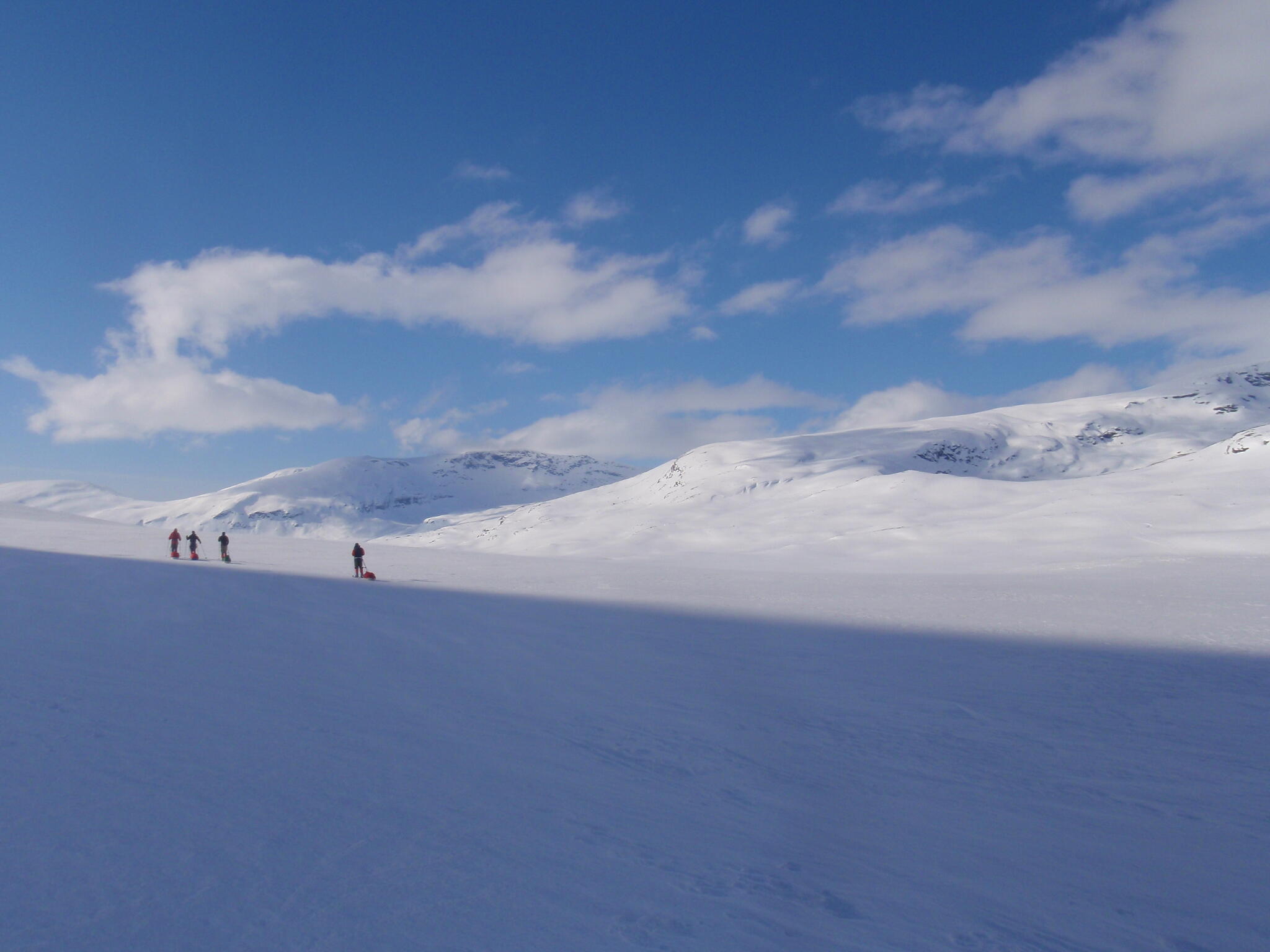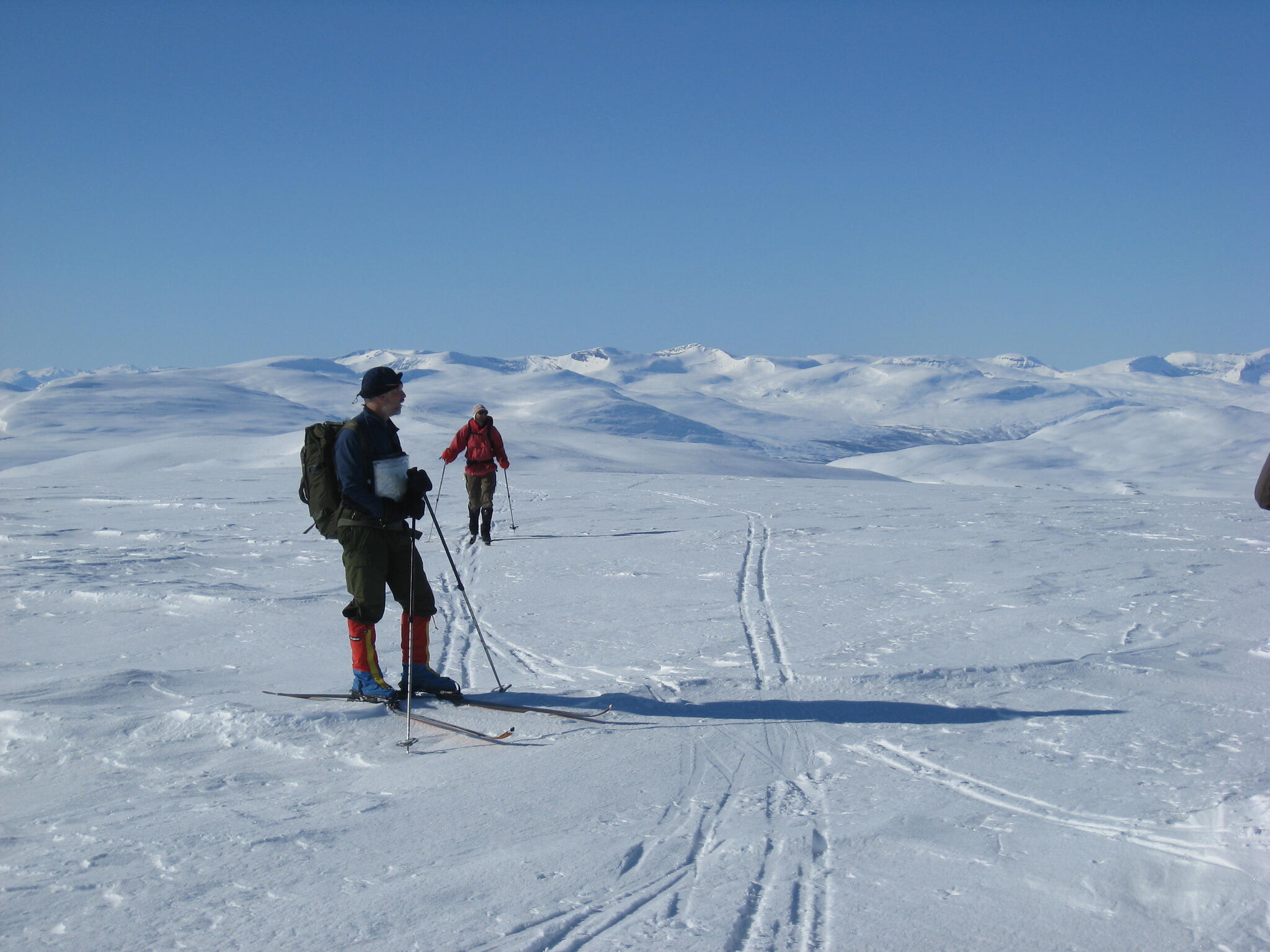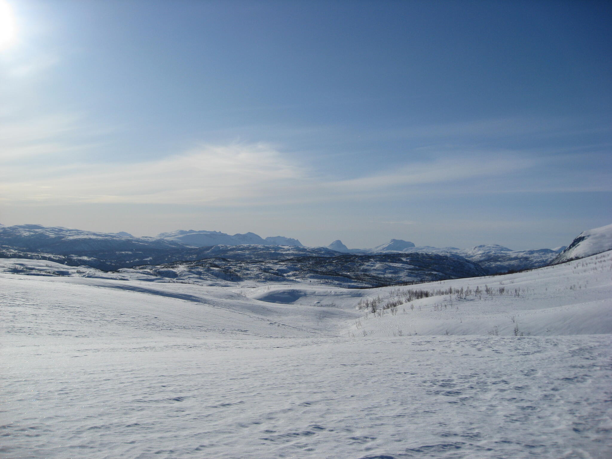 Vi mötte inga andra som var på turåkning annat än till och från pimpelfiskeplatser. Med tanke på hur pass vackert och lättillgängligt området är från Sverige så var det förvånansvärt få svenskar där. Trots att vi var i området runt påsk så såg vi inga norrmän som var på tur. Vi tältade ca ett dygn vid Nordkalottleden och under den tiden passerade ingen.