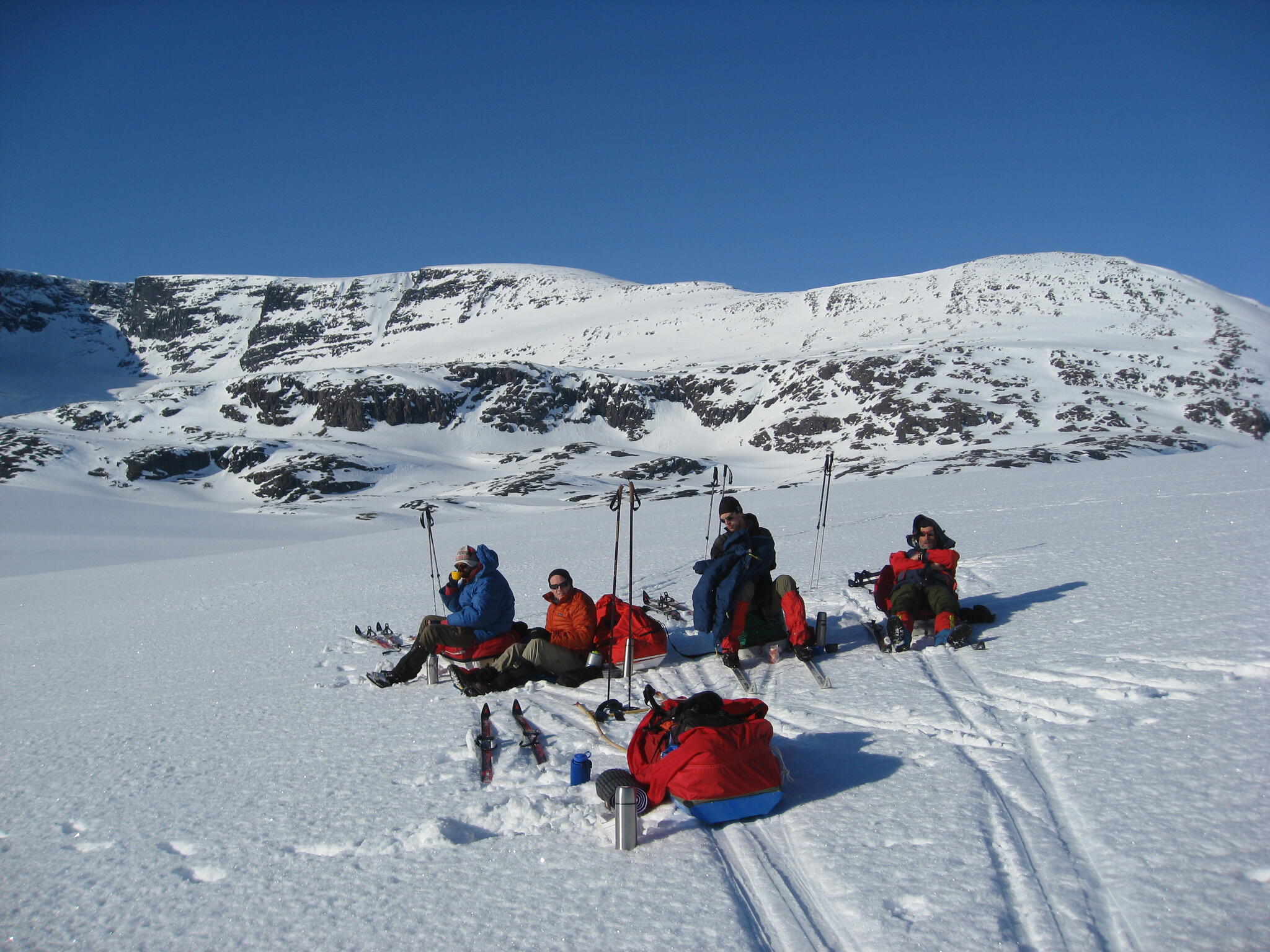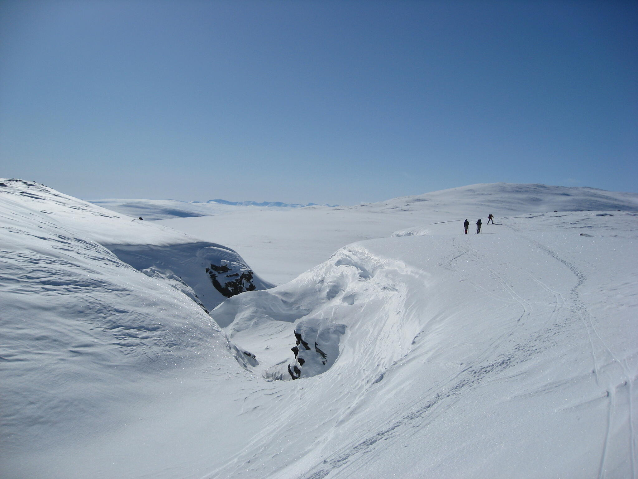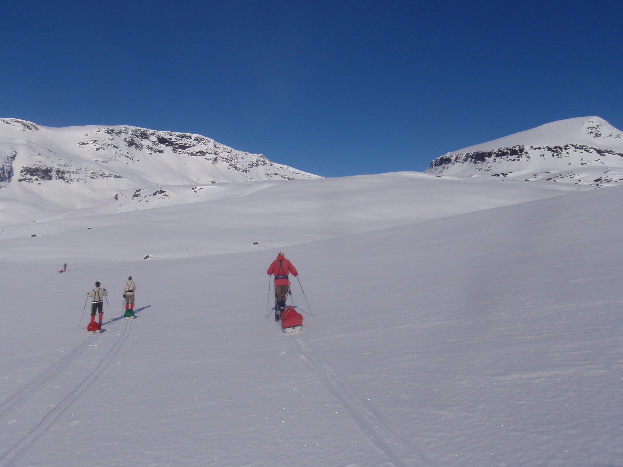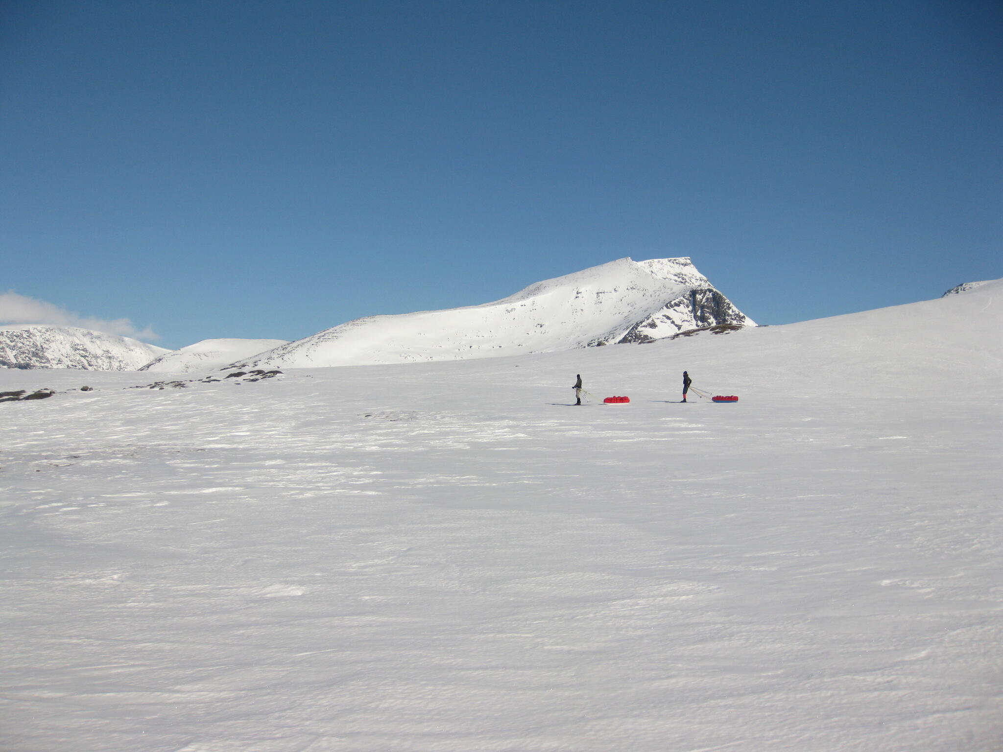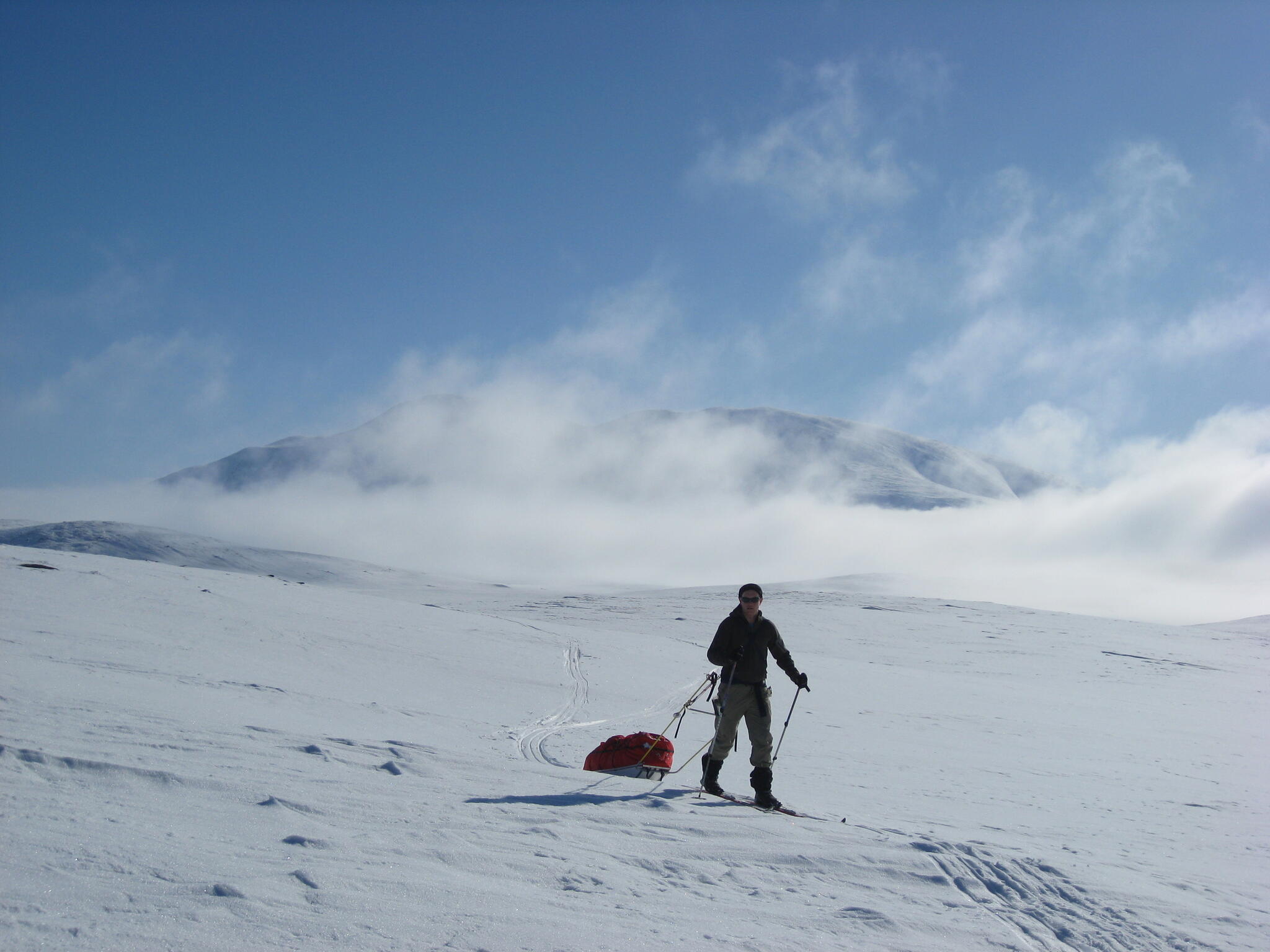 Vi mötte inga andra som var på turåkning annat än till och från pimpelfiskeplatser. Med tanke på hur pass vackert och lättillgängligt området är från Sverige så var det förvånansvärt få svenskar där. Trots att vi var i området runt påsk så såg vi inga norrmän som var på tur. Vi tältade ca ett dygn vid Nordkalottleden och under den tiden passerade ingen.