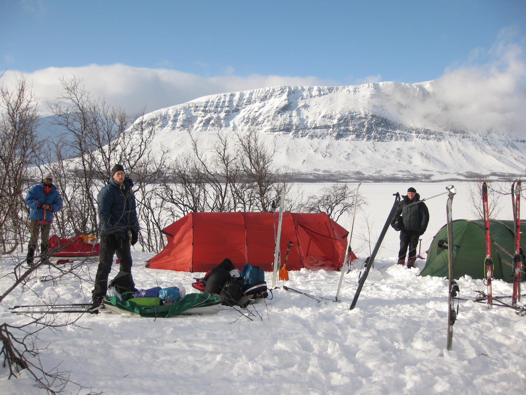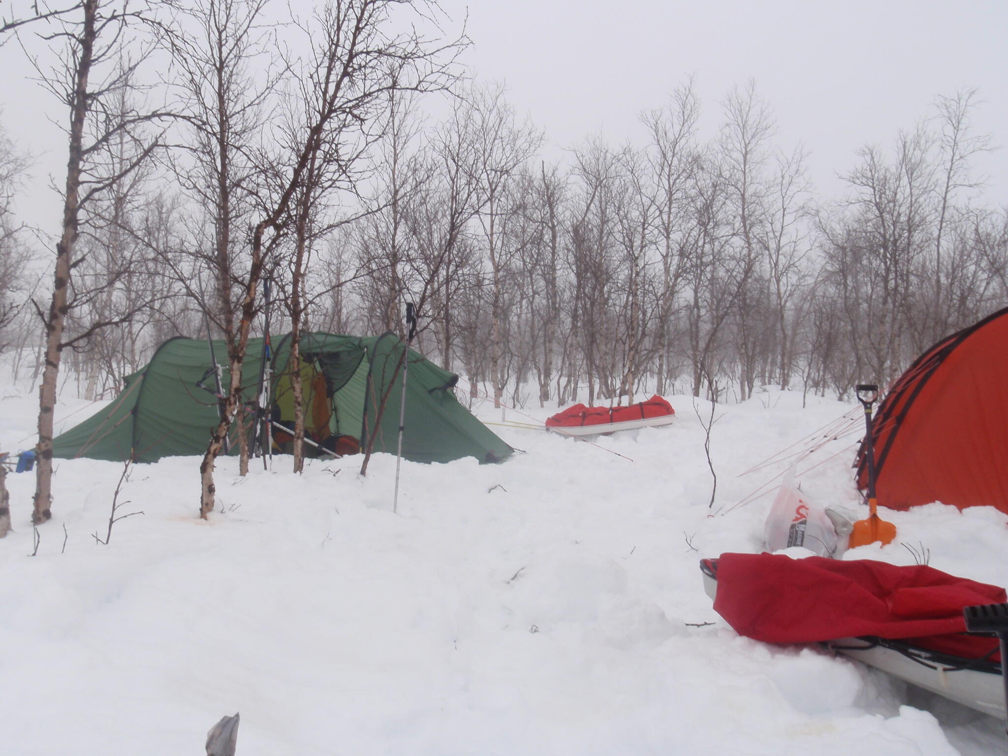 Vi slog läger inne i björkskogen, strax ovanför den lilla sjön Sápalaks storblockiga nordstrand.