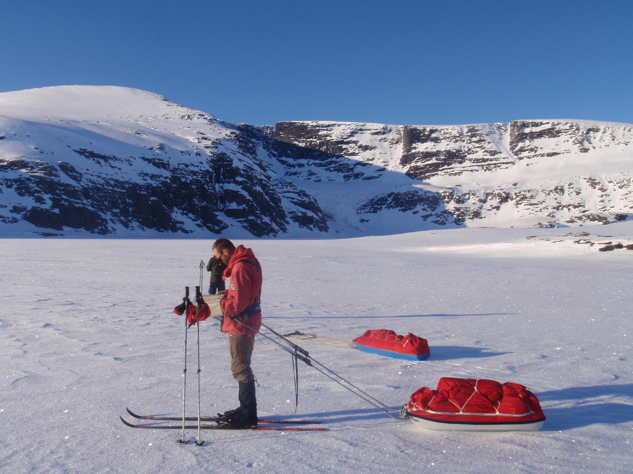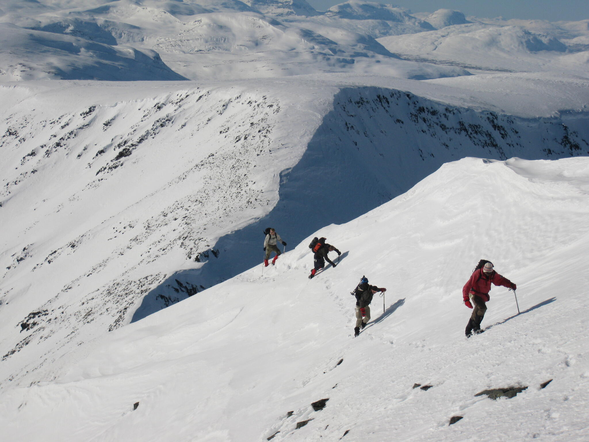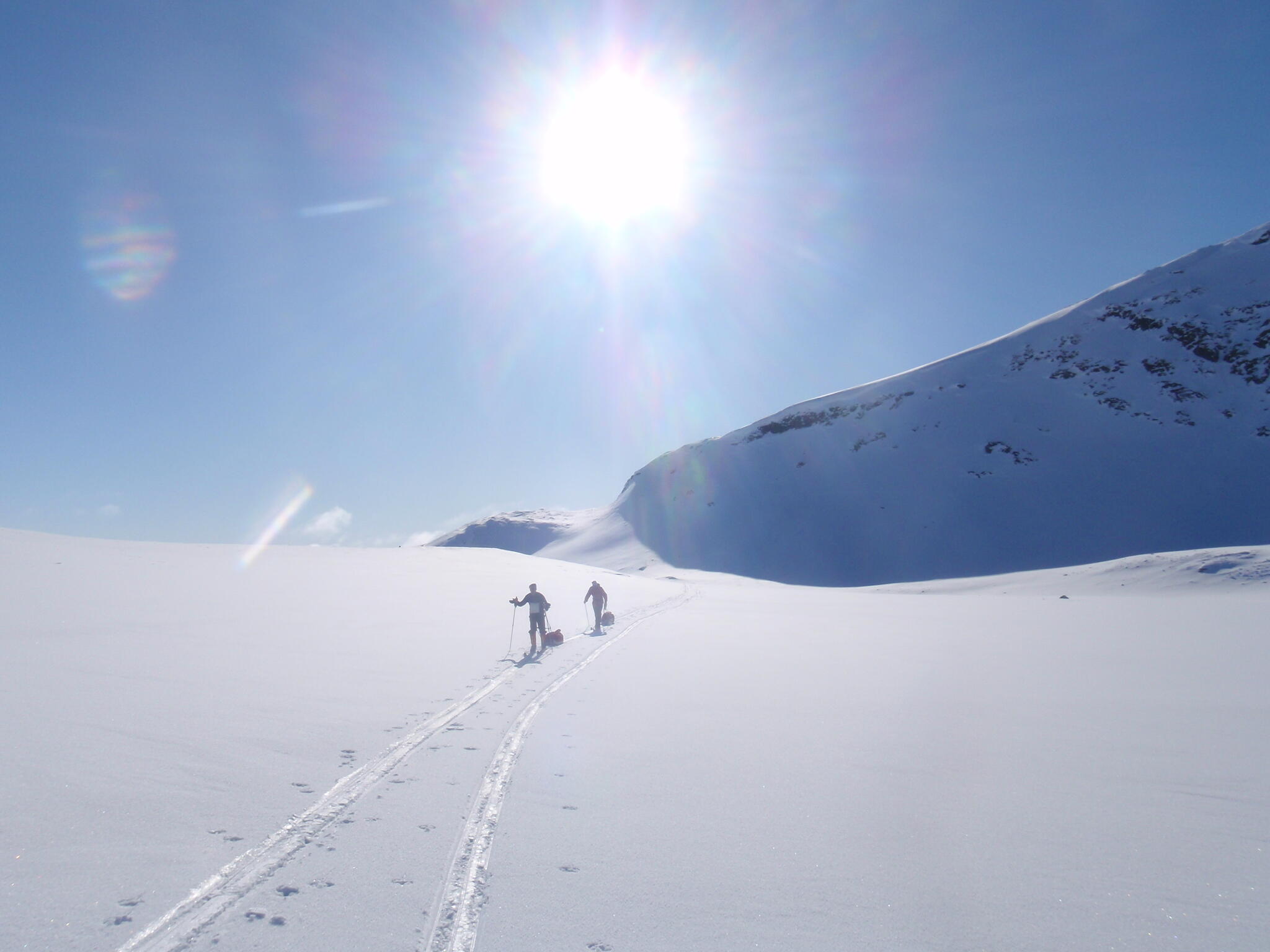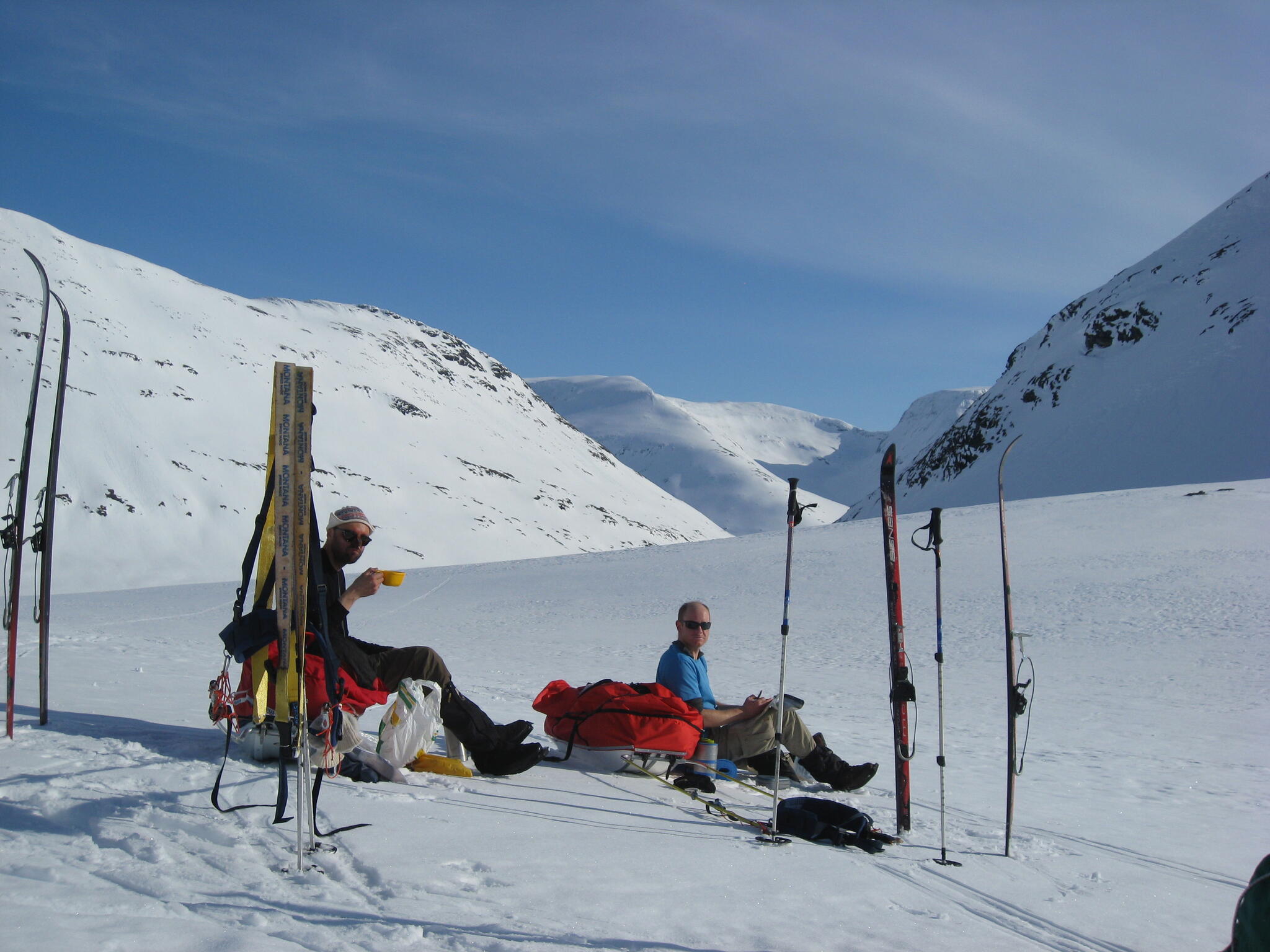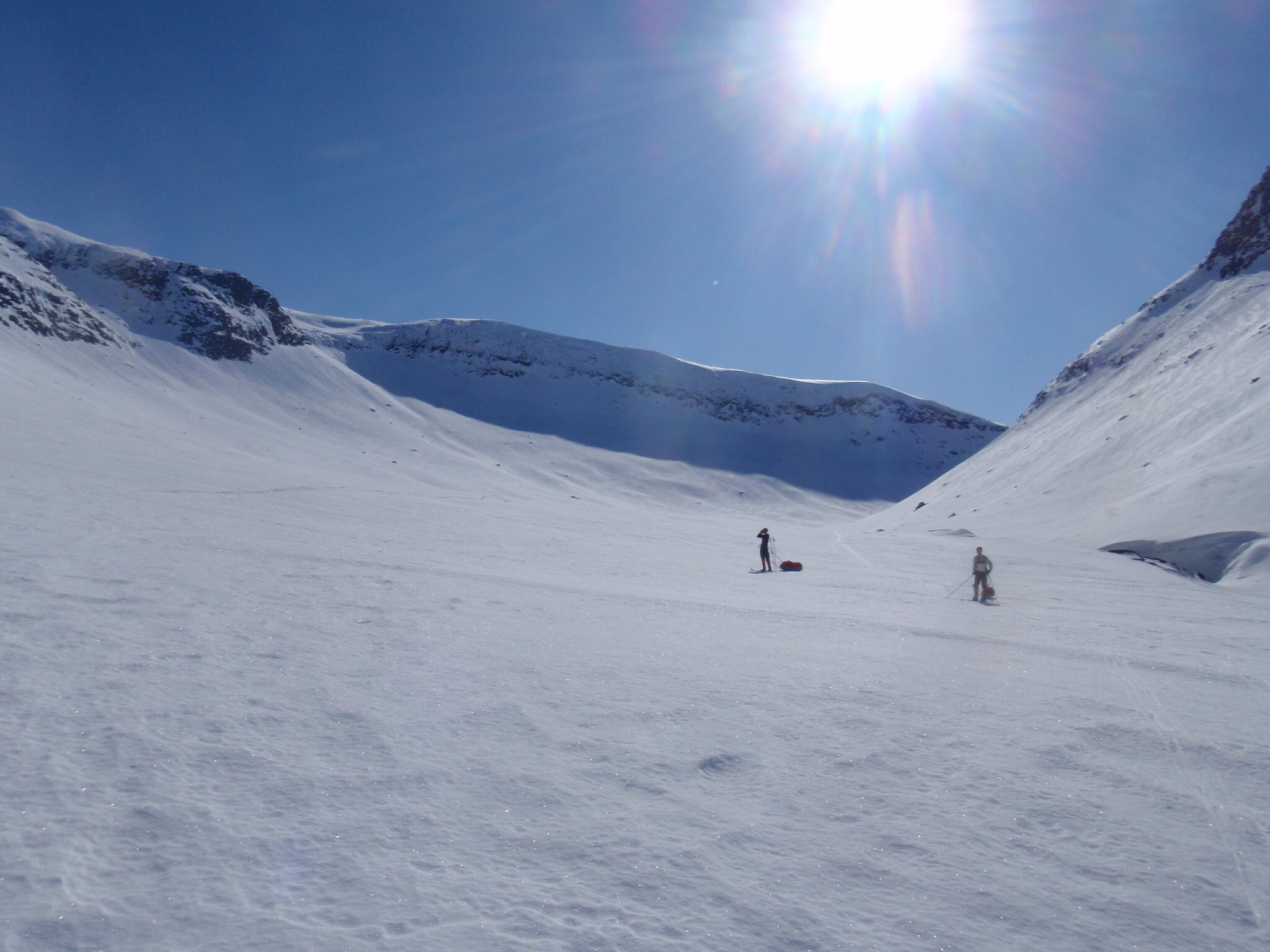 Efter en andra frukost nere med de andra packade vi ihop och skidade ner i dalen Påveskardet.
