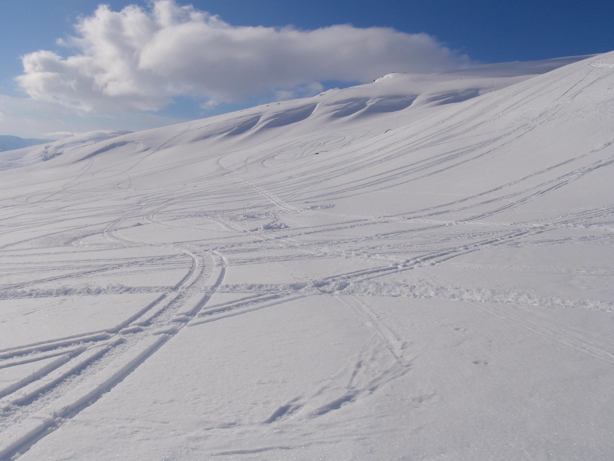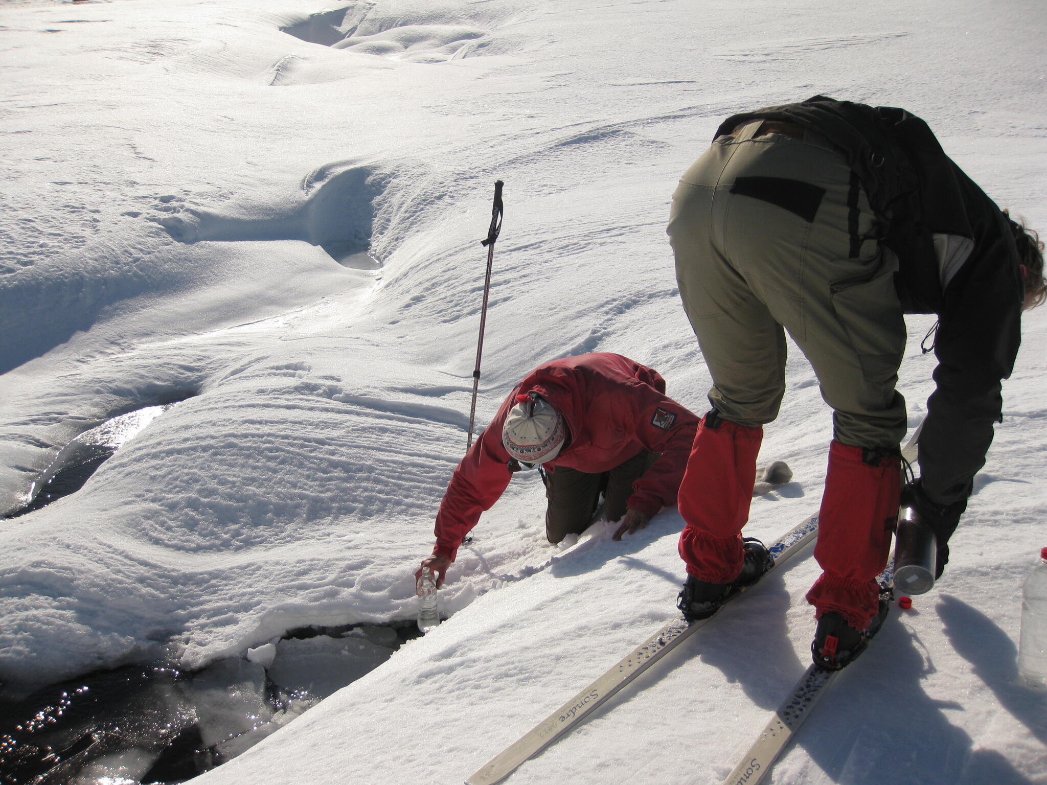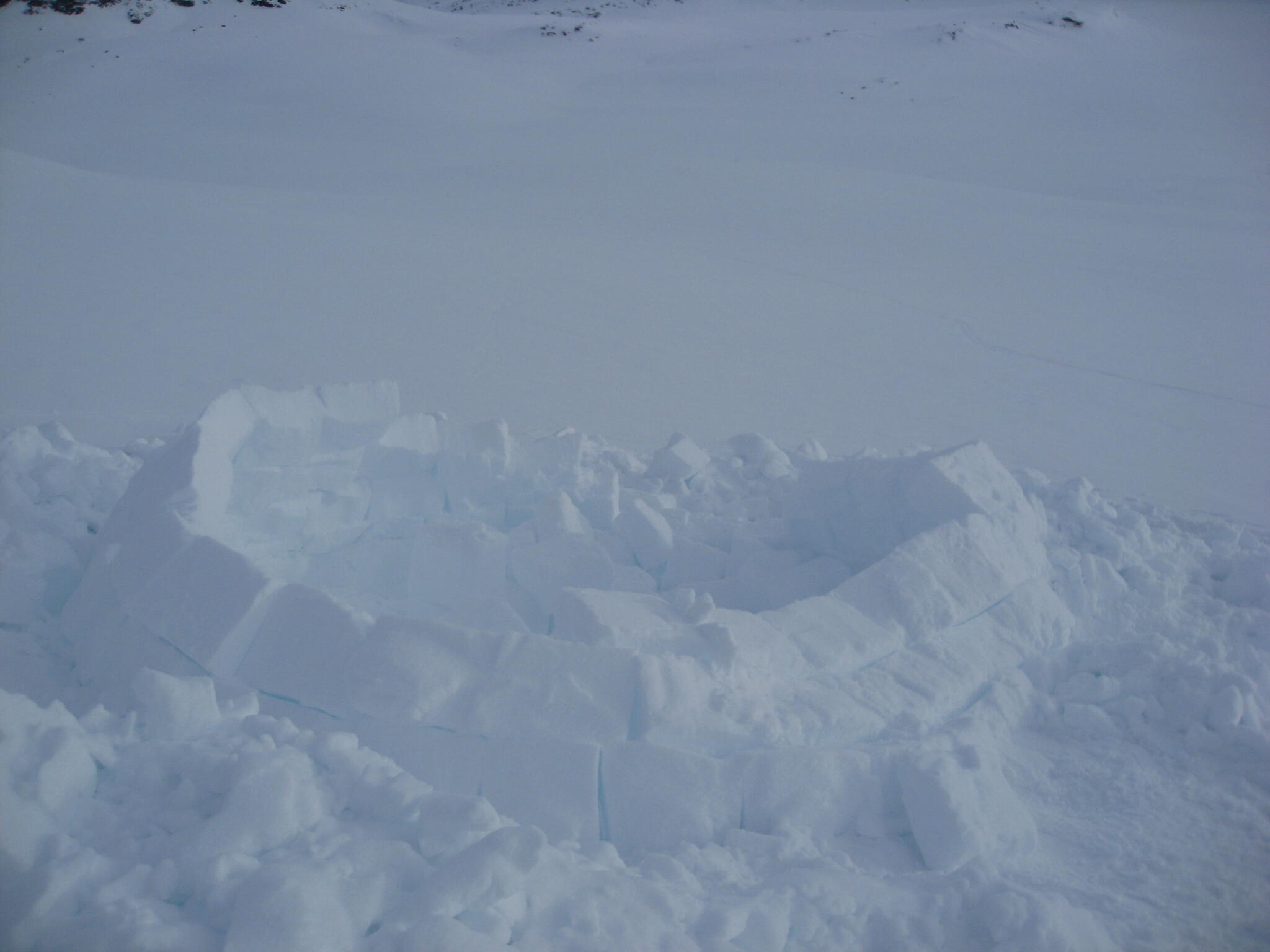 I dalen fann vi en del lämningar av små snöskrev på norra sidan. Vi fann också stora snöbollar (en var över en meter i diameter) som förmodligen hade vuxit när de rullat nerför sluttningen. "Snöbollseffekten"