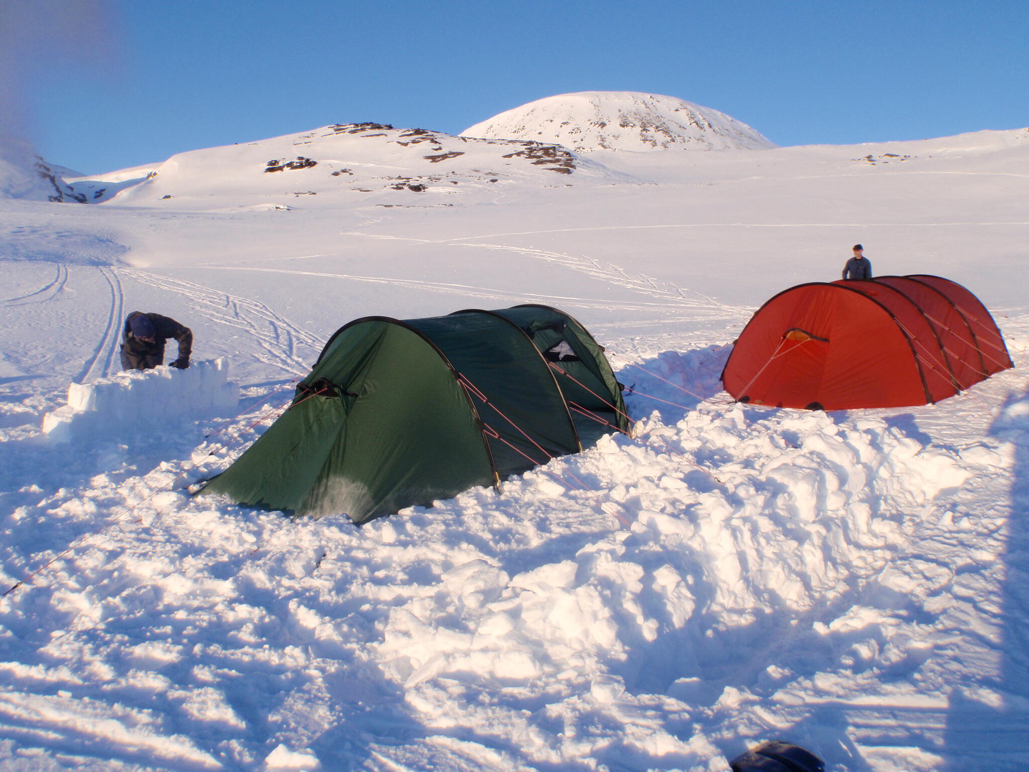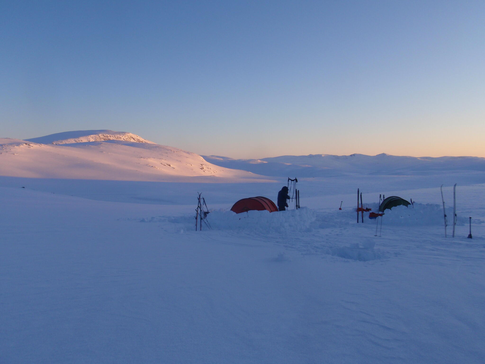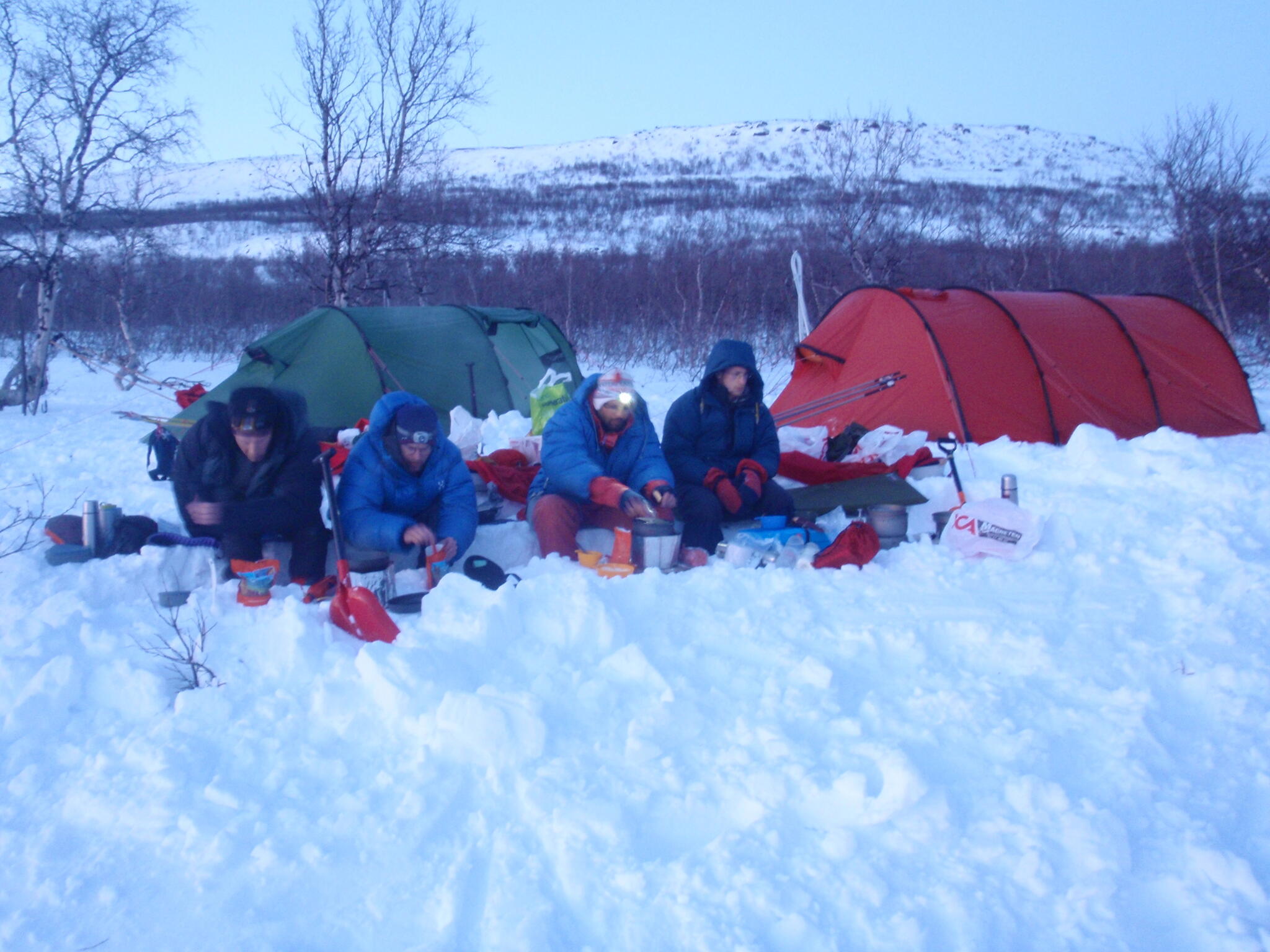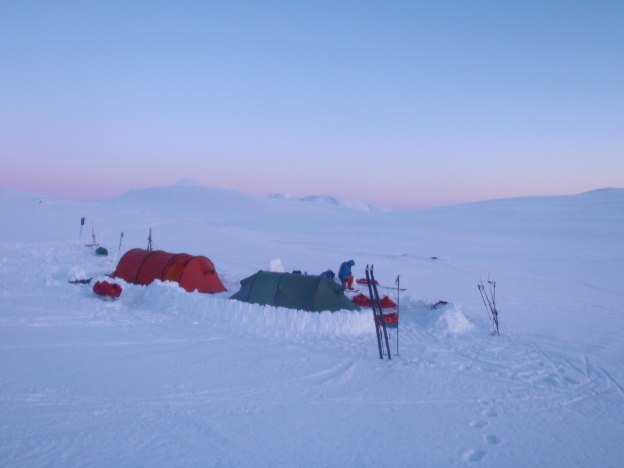 Magnus A och Michael lades sig för att sova i igloon. Vi andra i tälten.