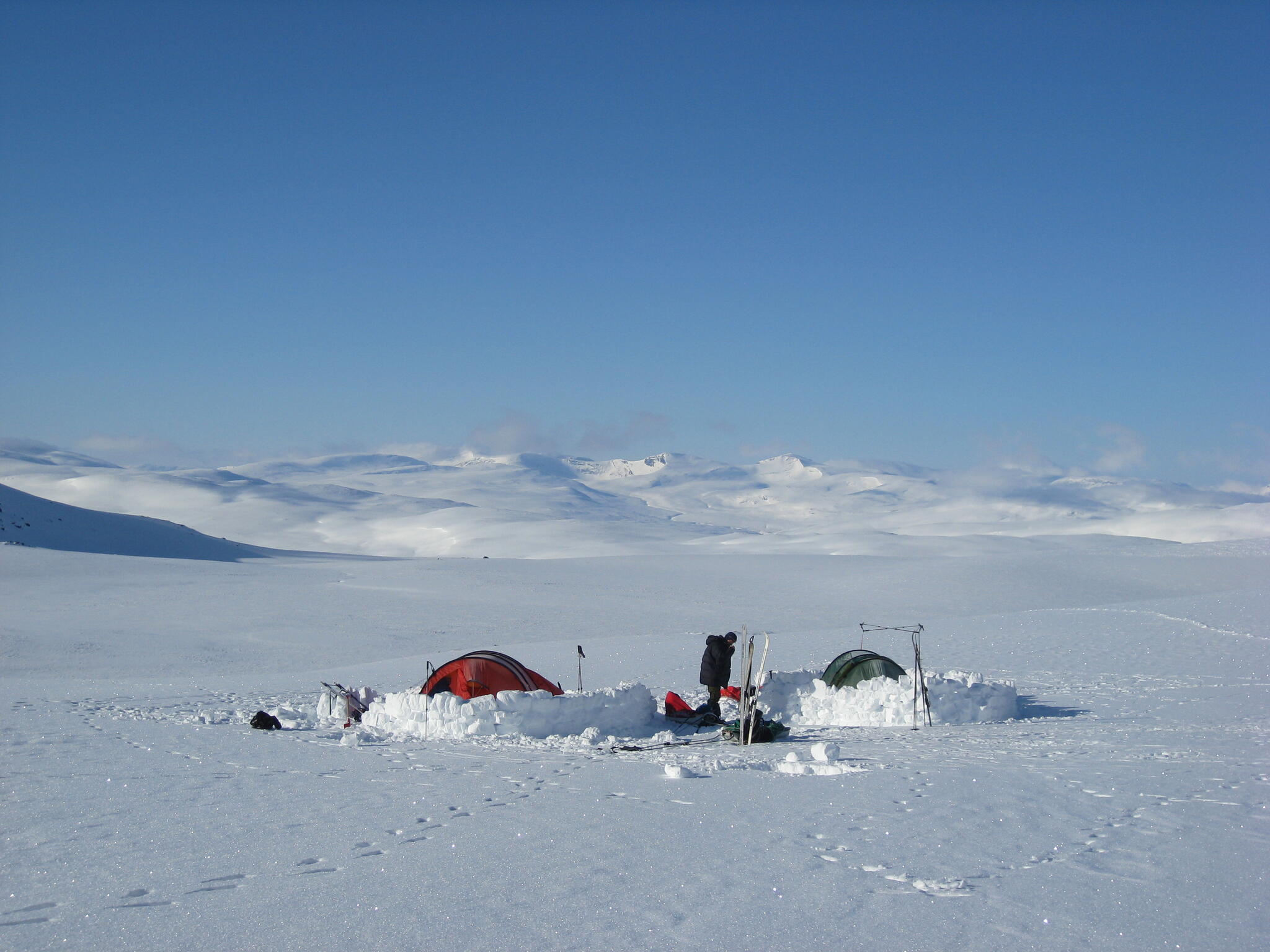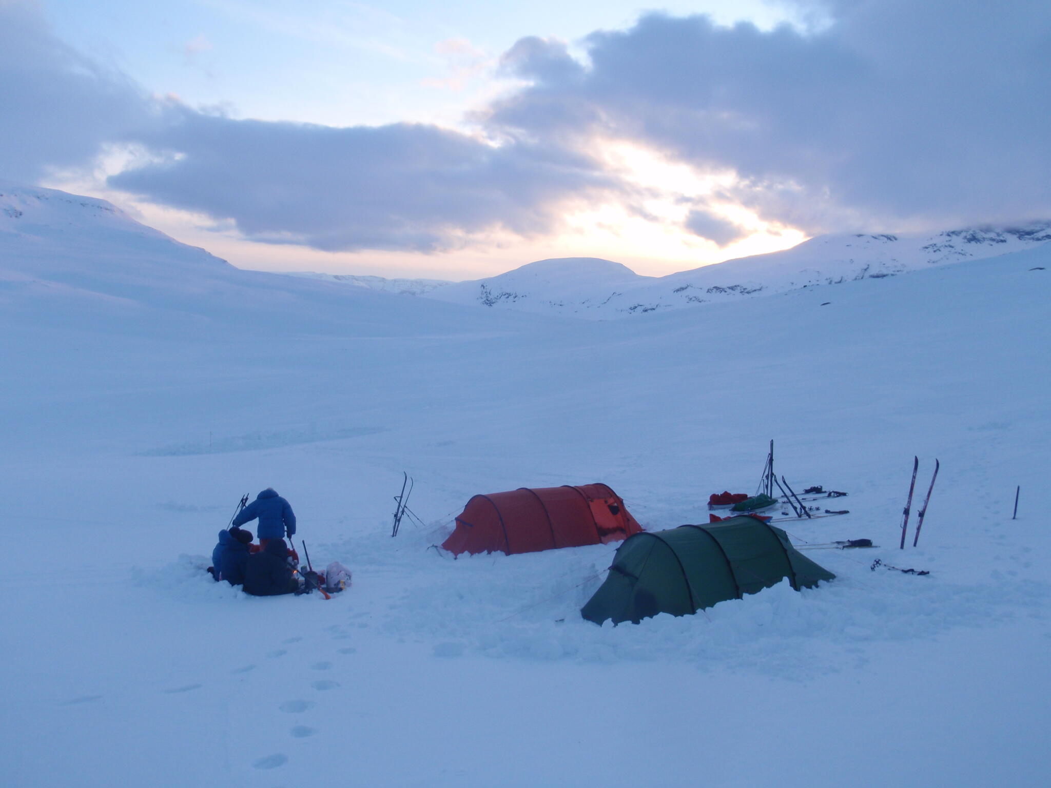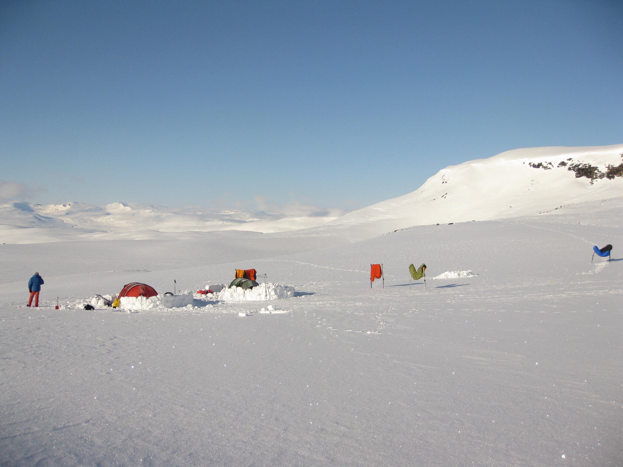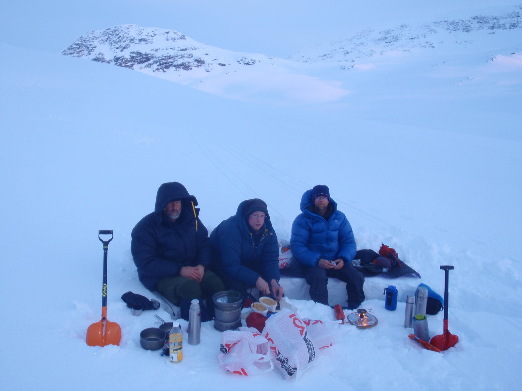 Magnus A och Michael lades sig för att sova i igloon. Vi andra i tälten.