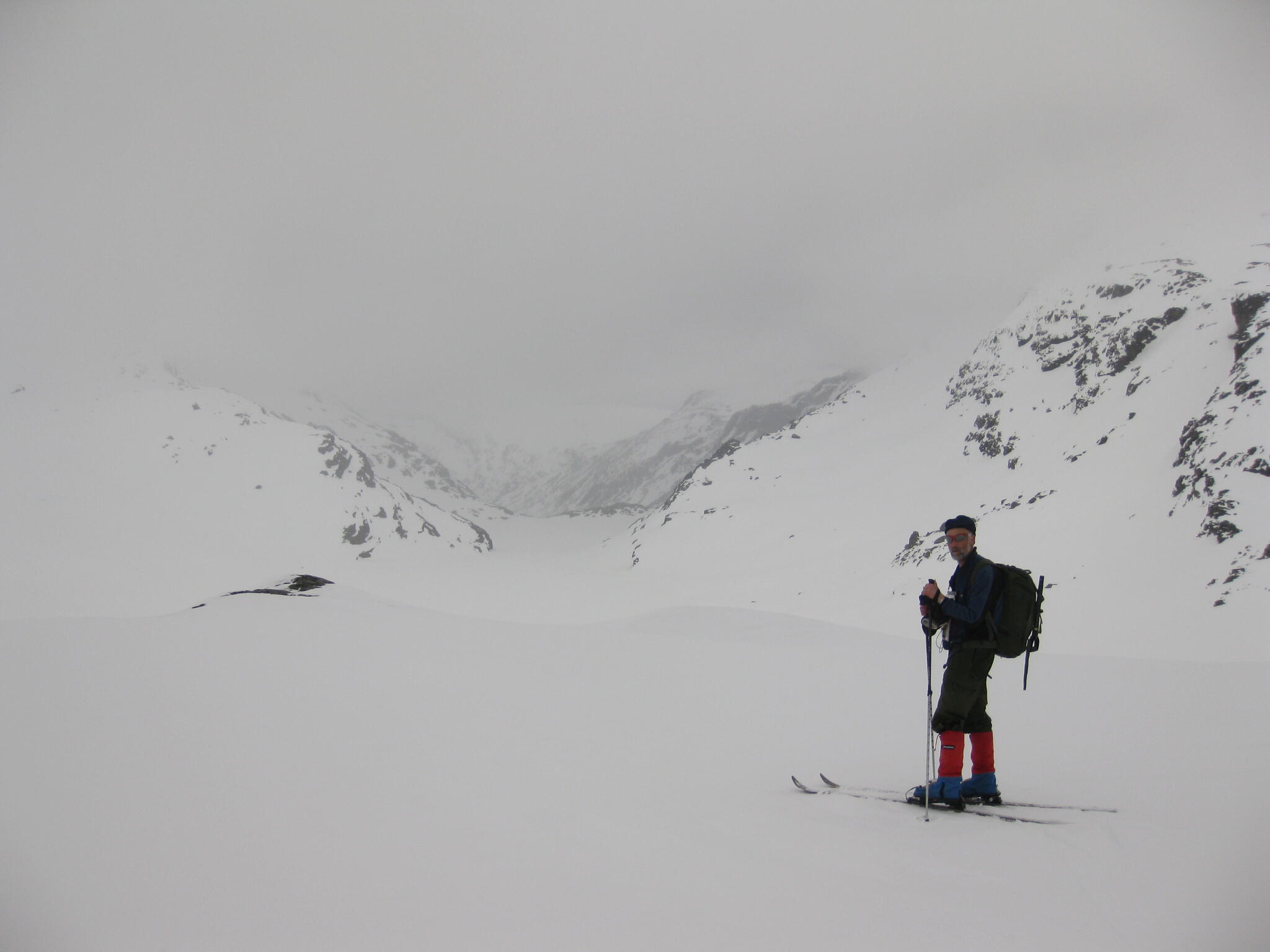 Vi var lite oroliga över om vi skulle kunna komma ur dalen genom att skida åt väster. Vi behövde ta oss upp till ett pass för att kunna se det.