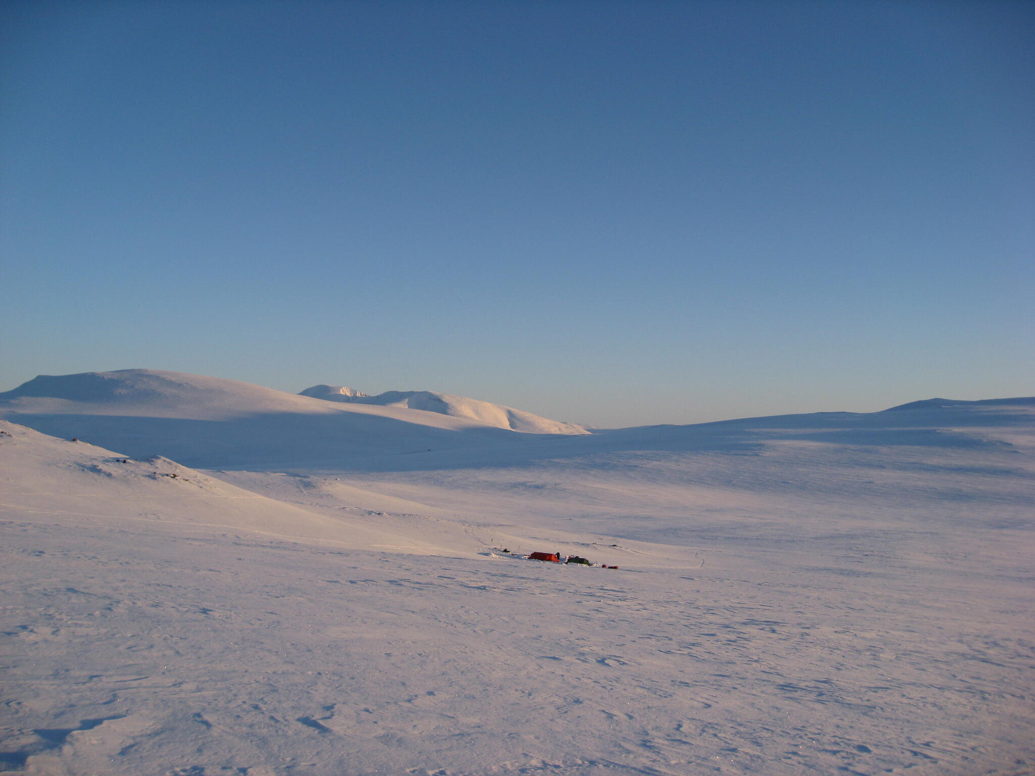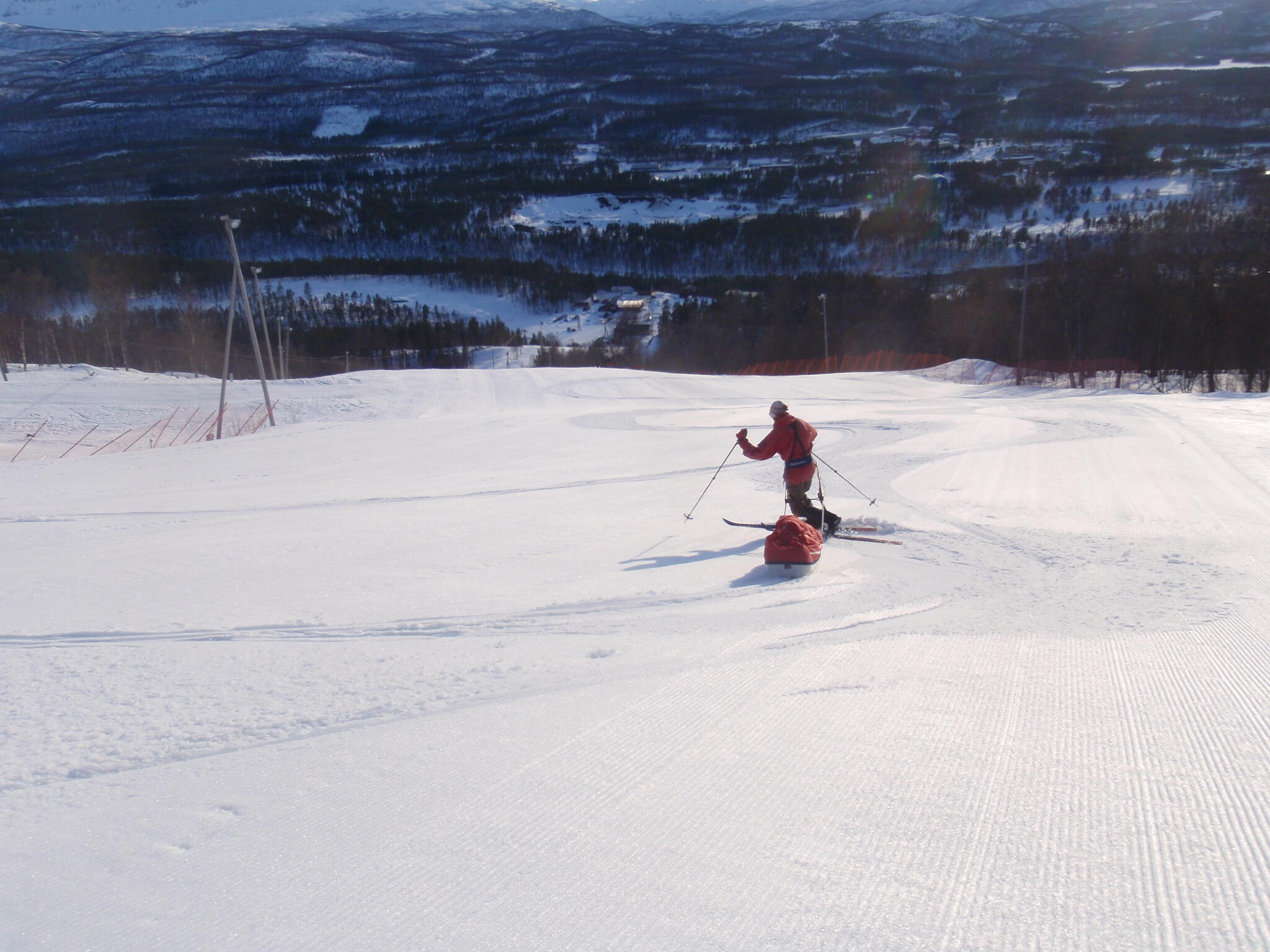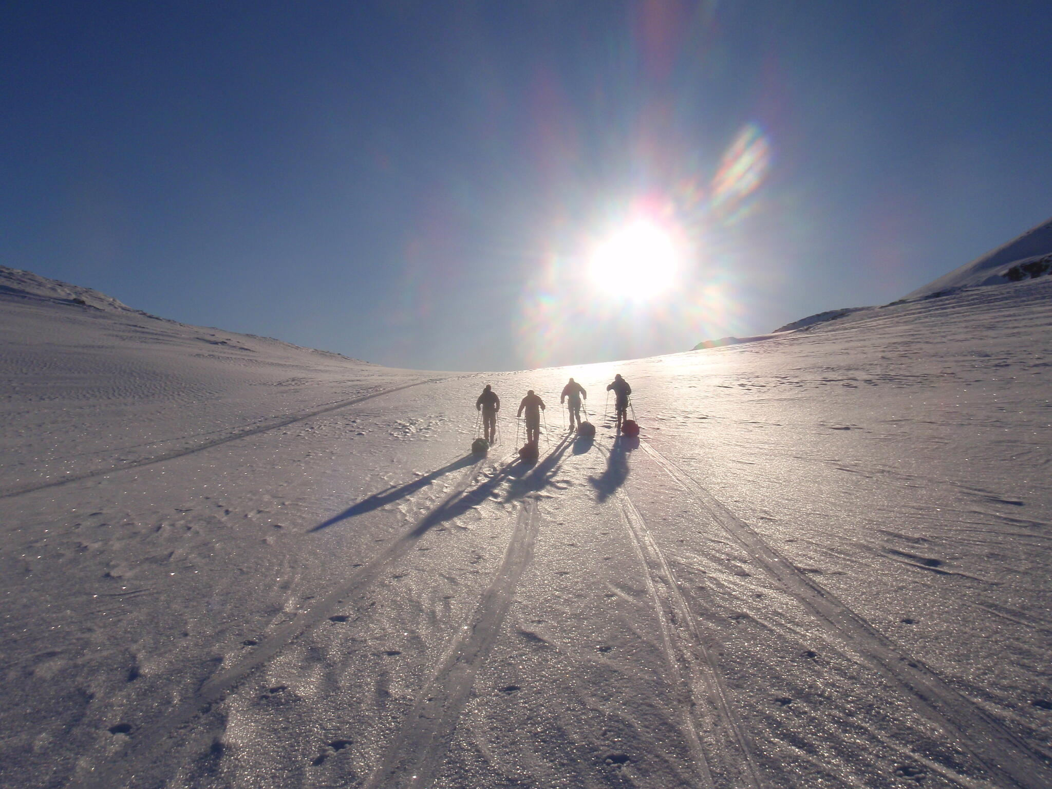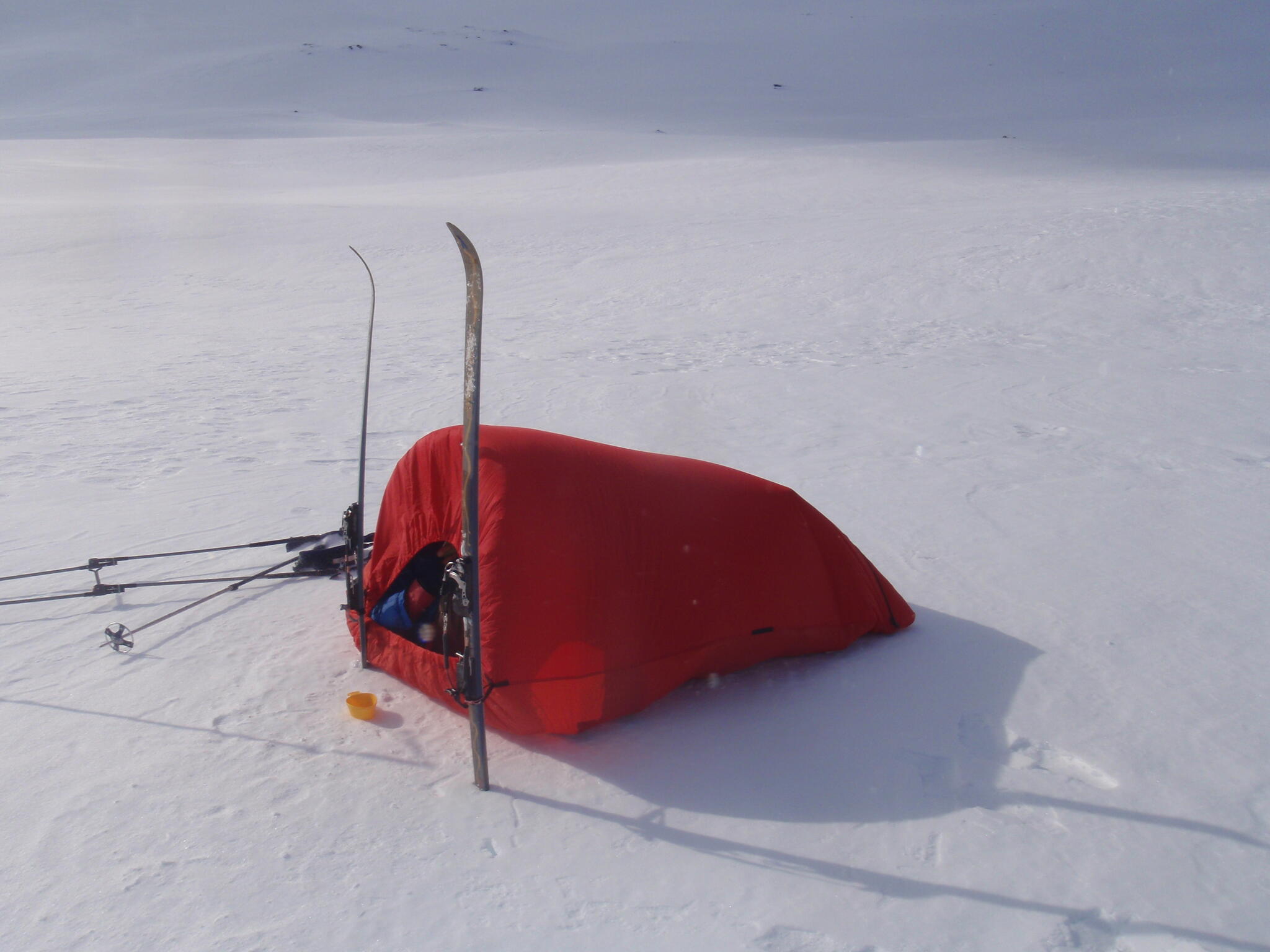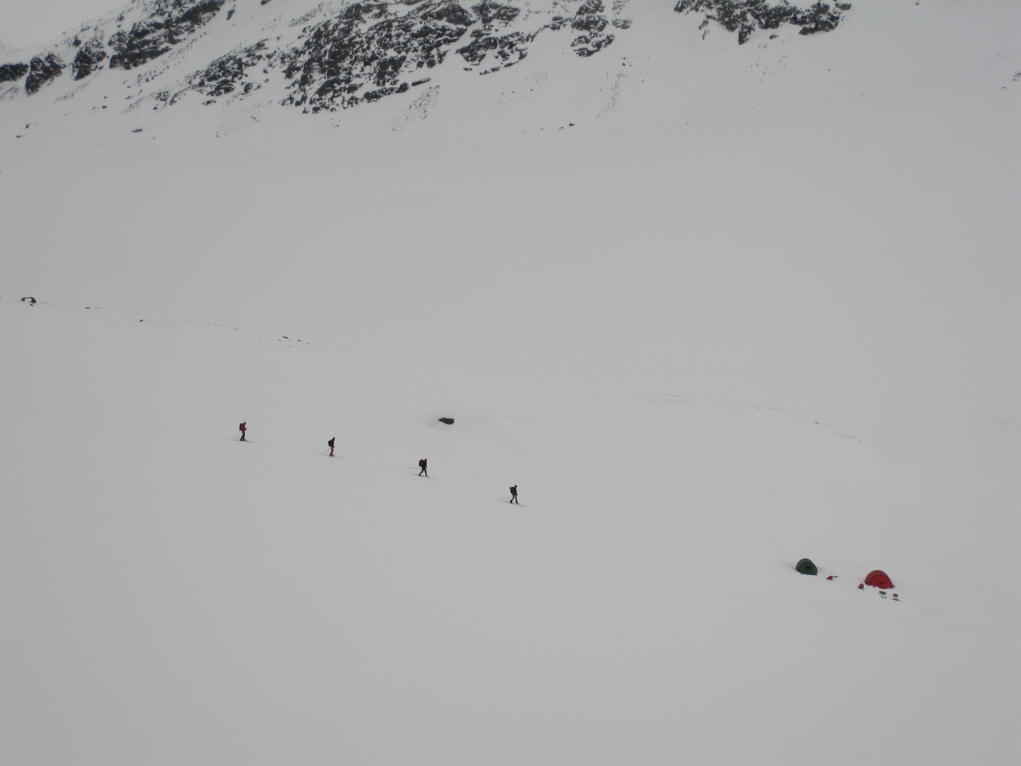Vi skidade ner mot tälten igen.