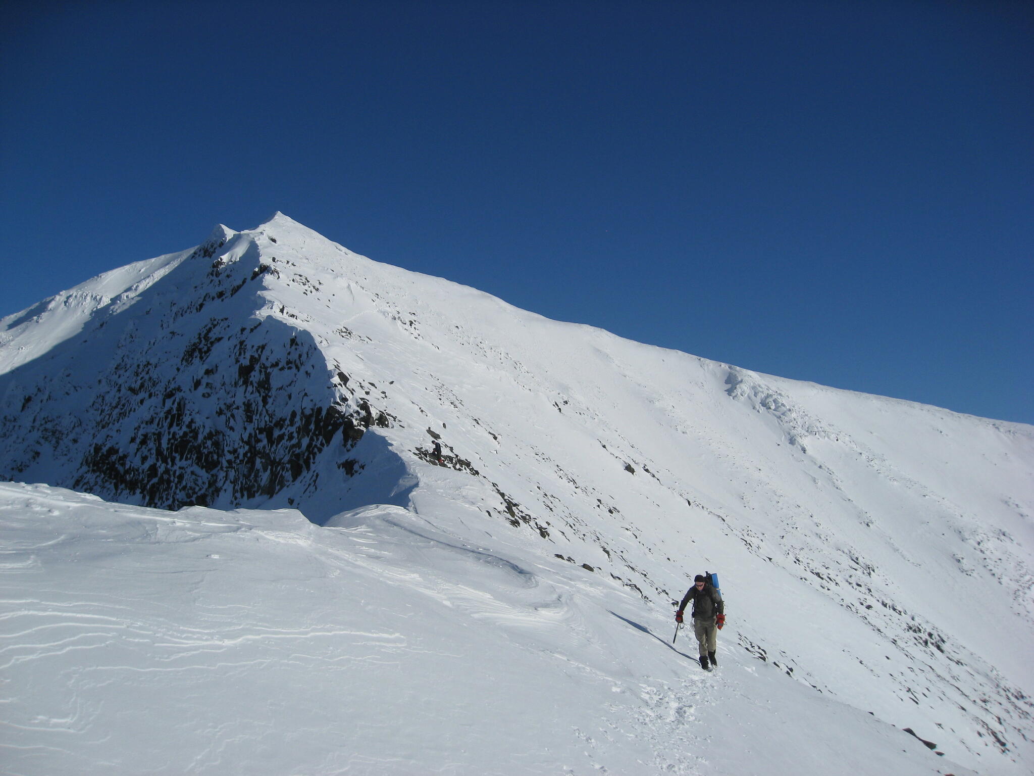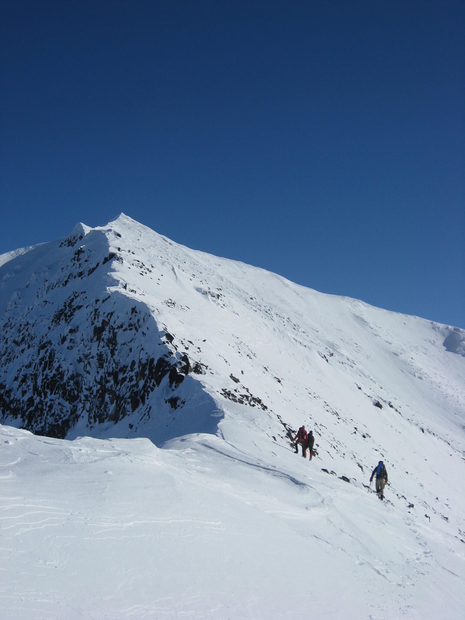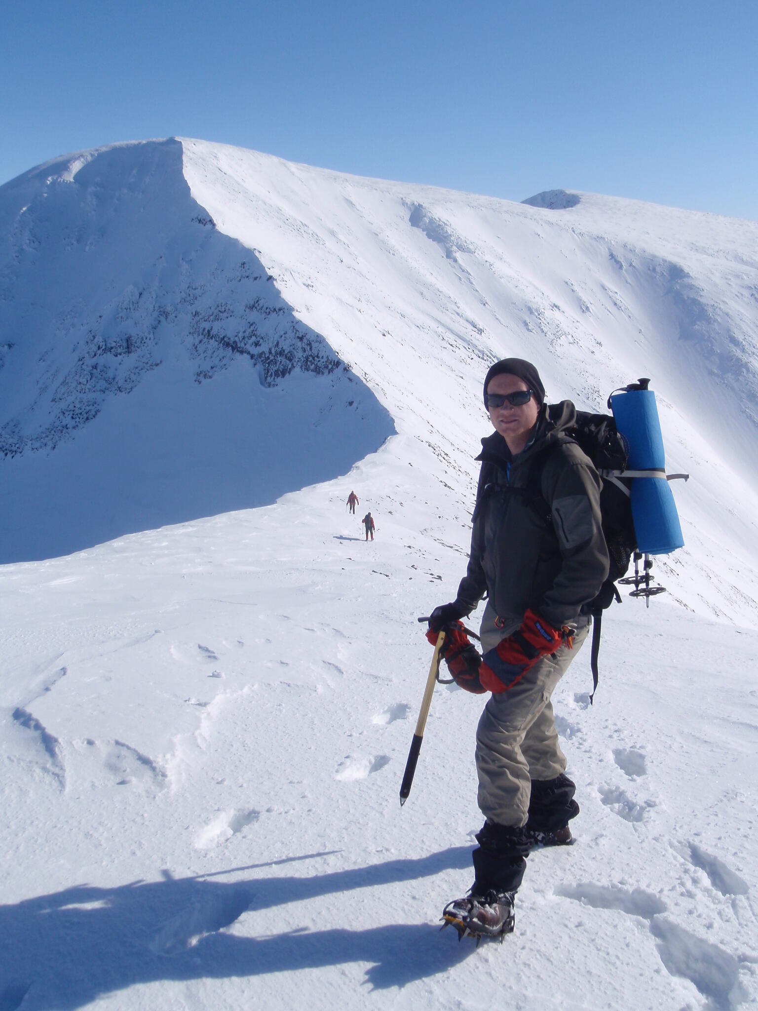 Vi bytte skidor mot stegjärn och tog oss an kammen som leder över till huvudtoppen 1659 m ö h.