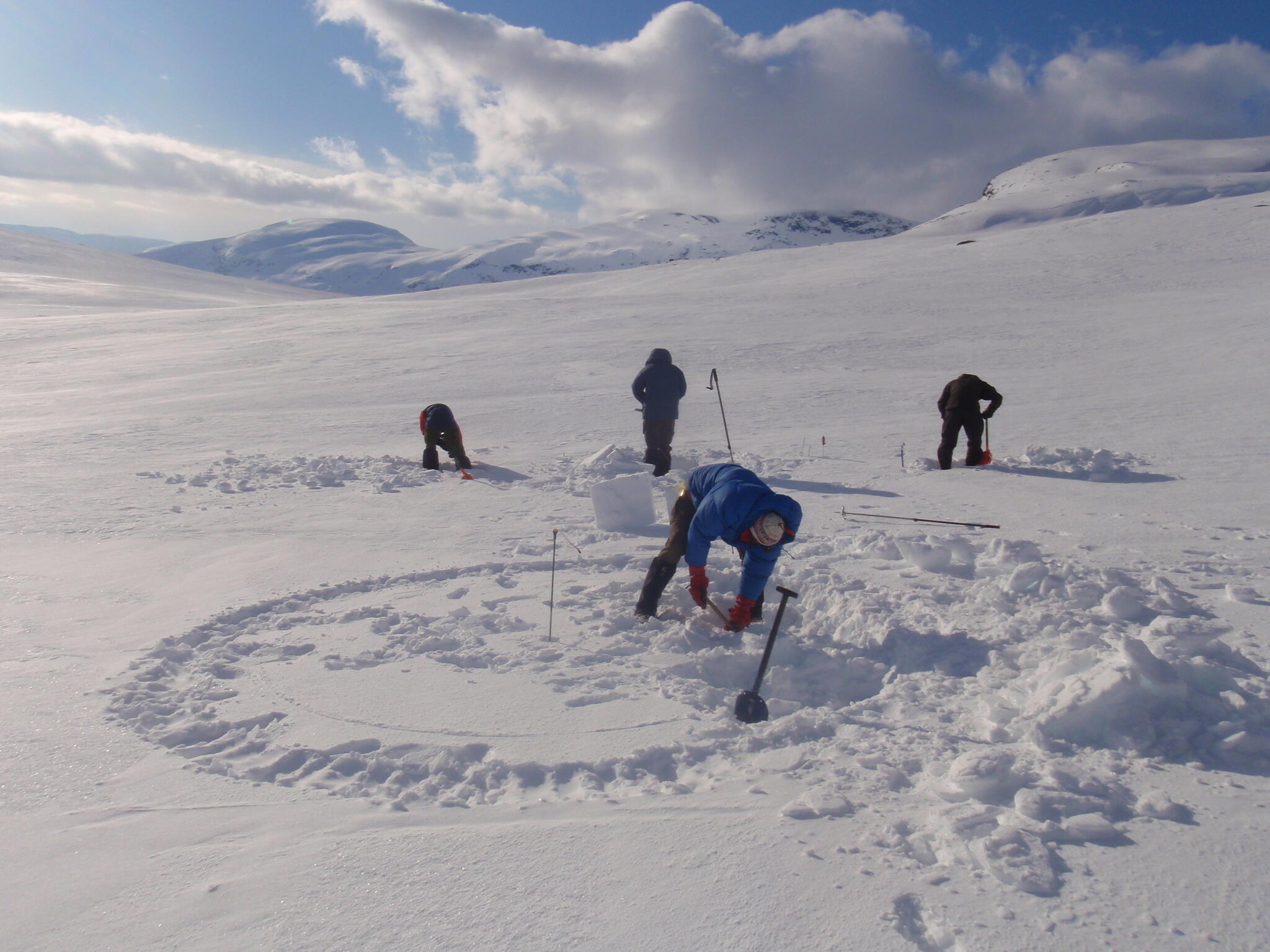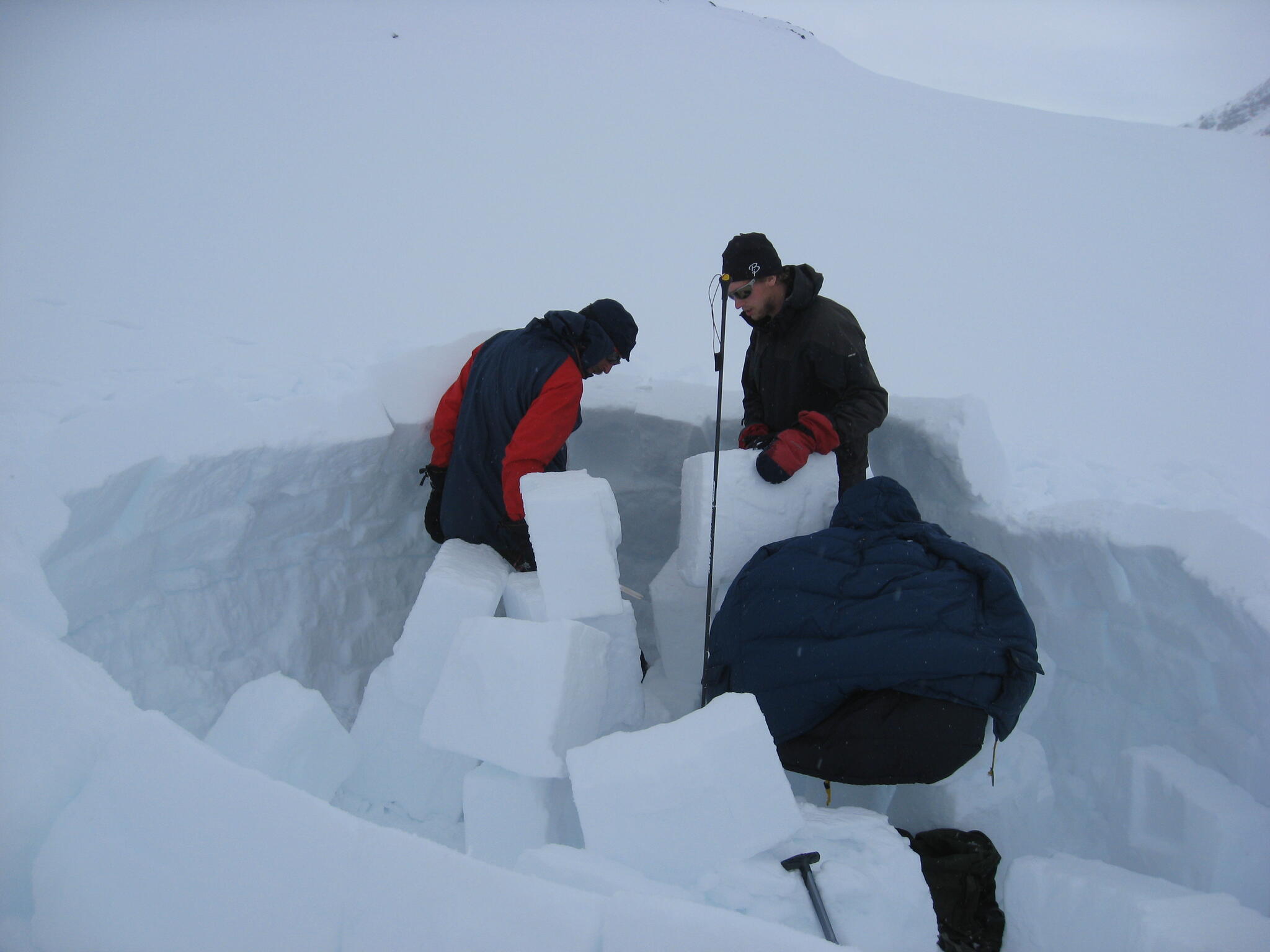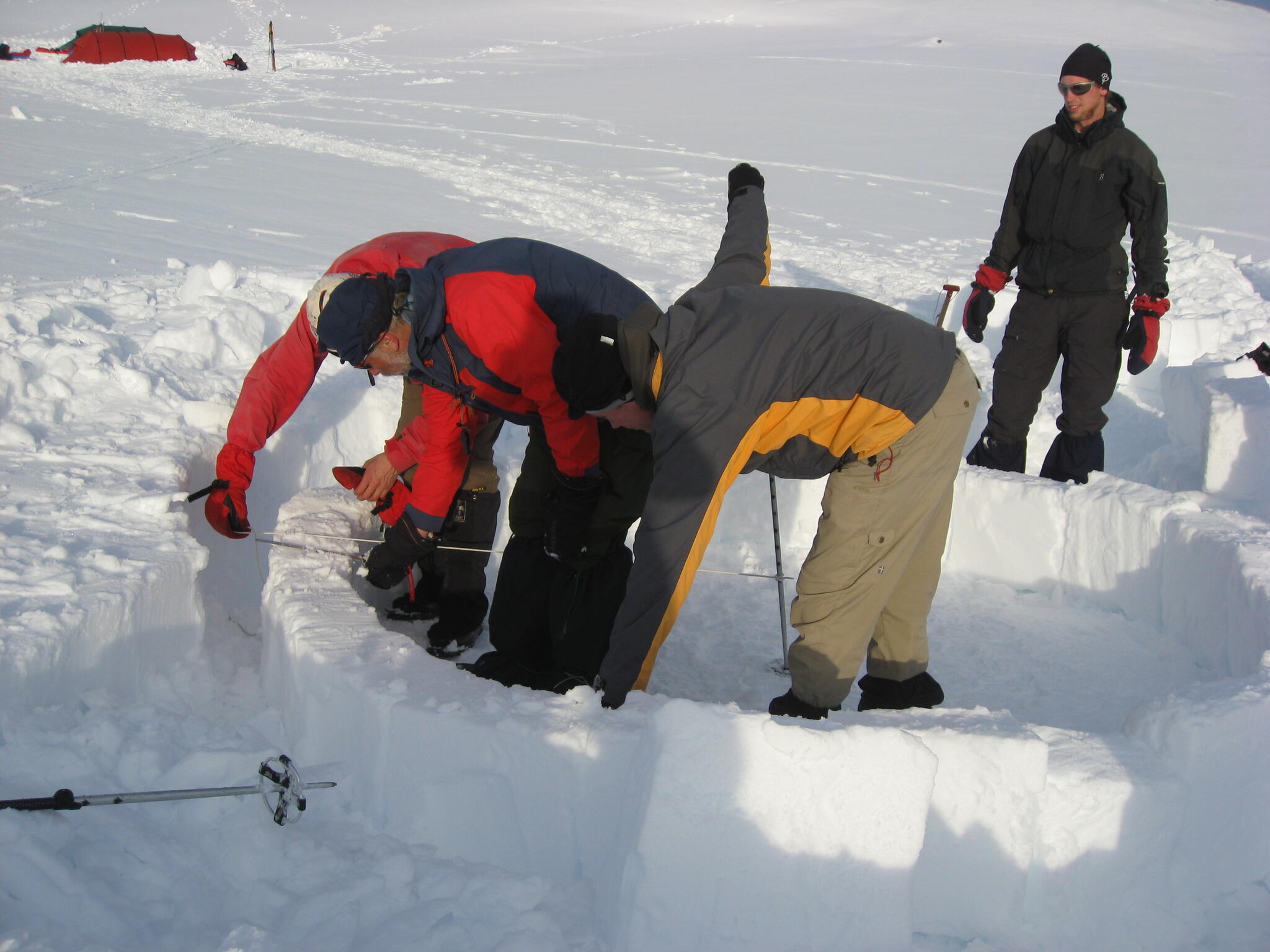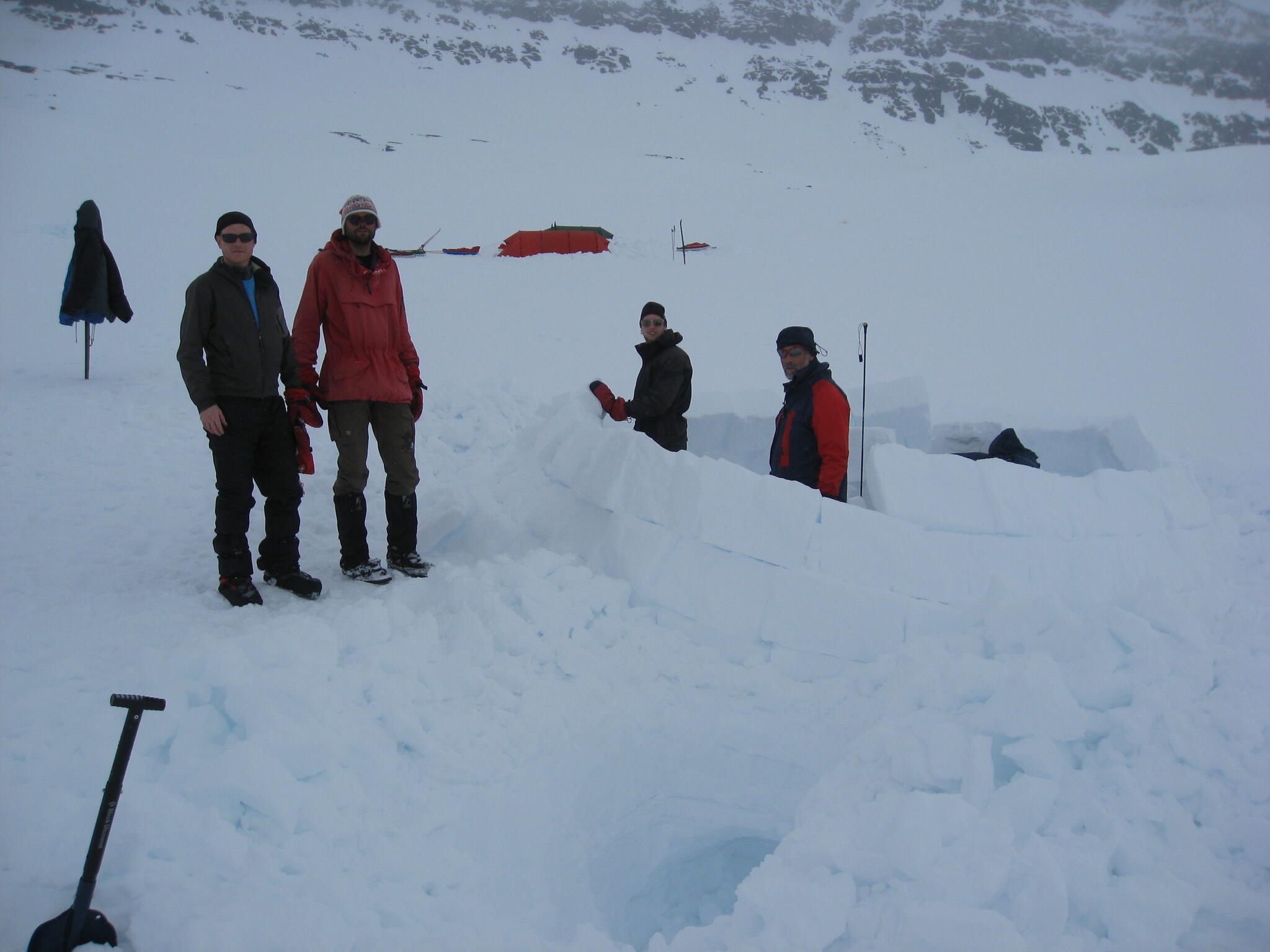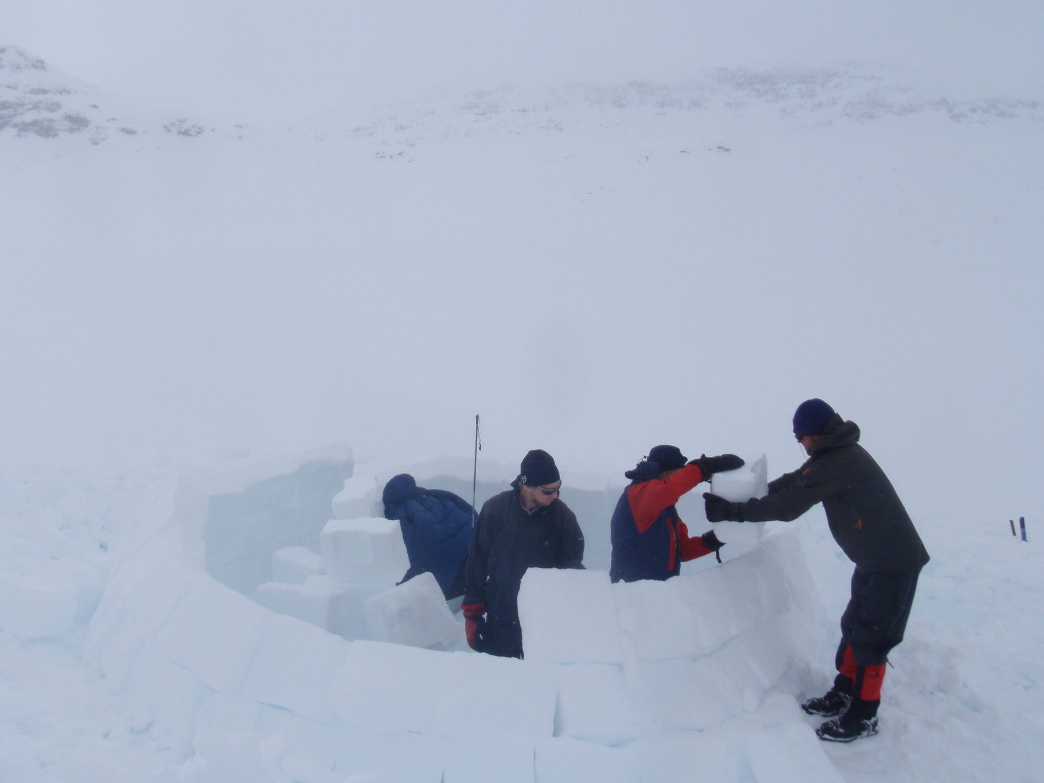 När vi kommit ner till tälten klarnade vädret upp. Vi fortsatte med igloobyggandet.