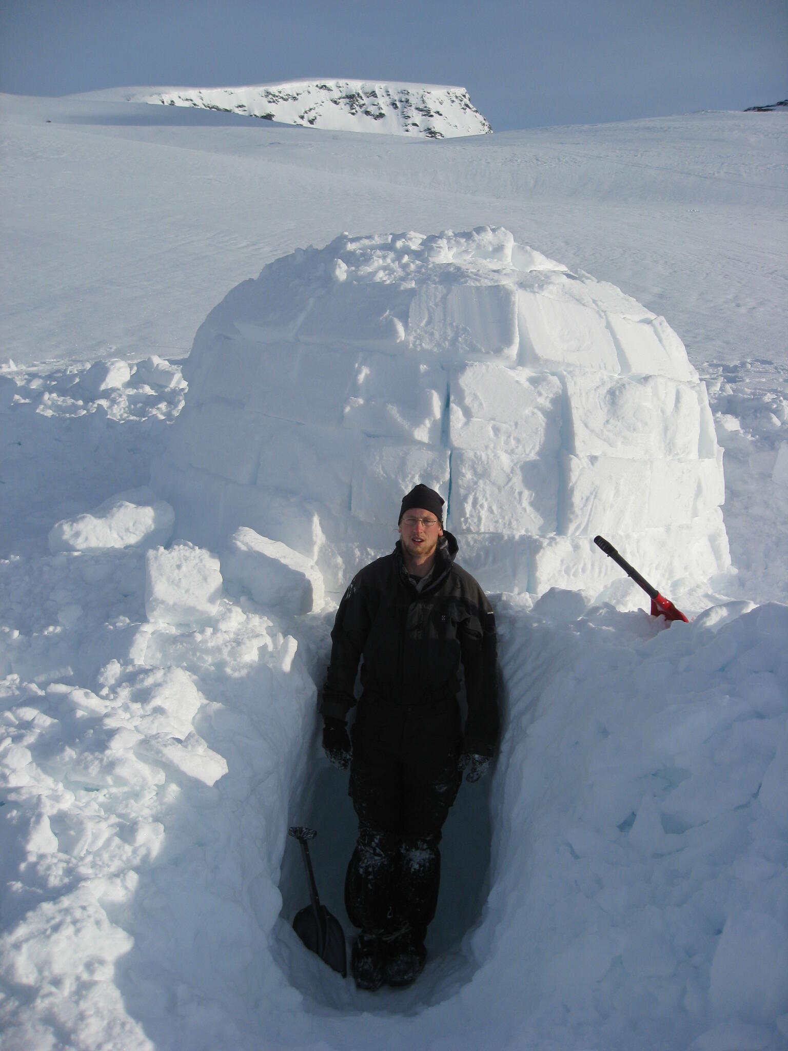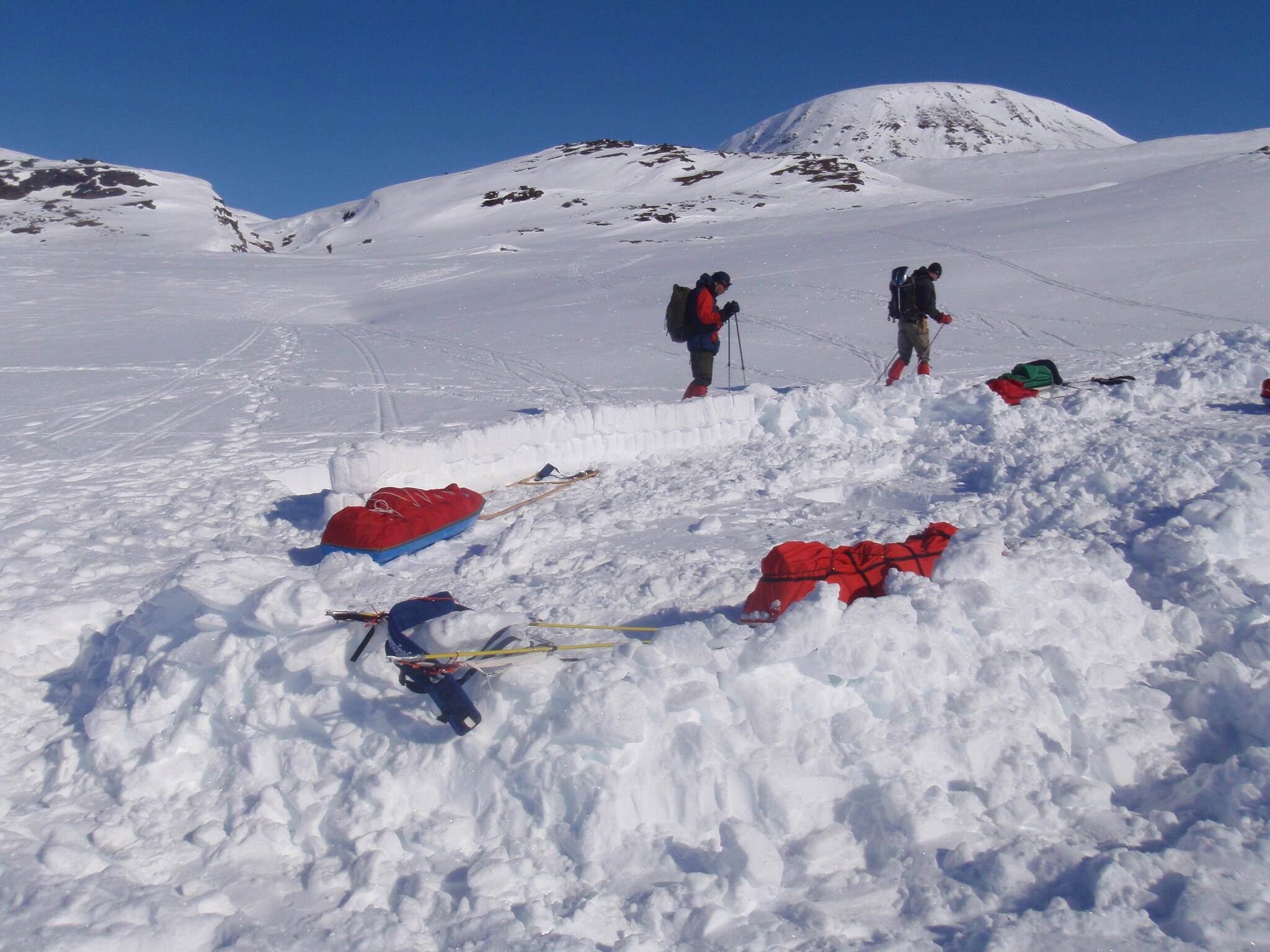 Att bygga igloo var ett av delmålen med turen. På sista lägerplatsen gjorde vi två försök till att bygga igloo. Det första försöket misslyckades då vi försökte oss på en för stor igloo, men vi lyckades andra gången.