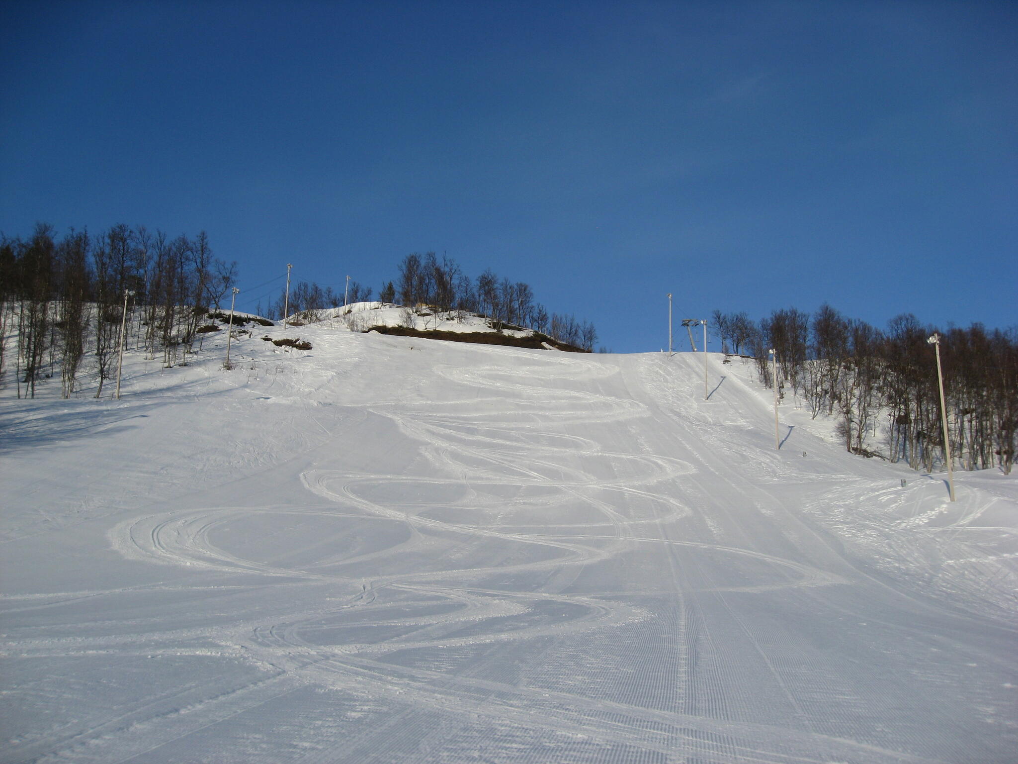 Liften hade stängt oh pisten var nypreparerad inför morgondagen.