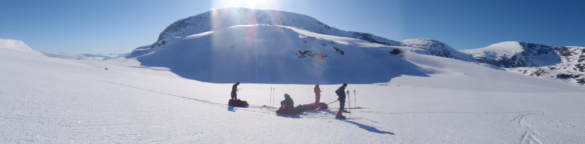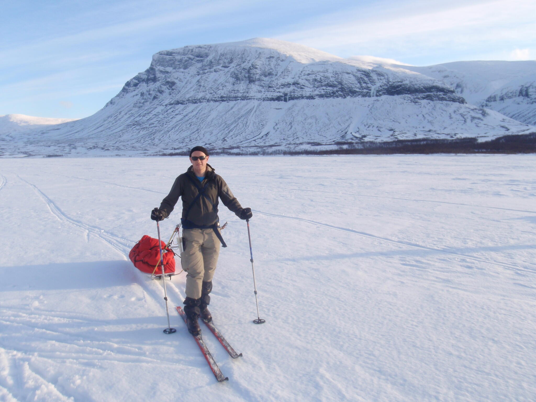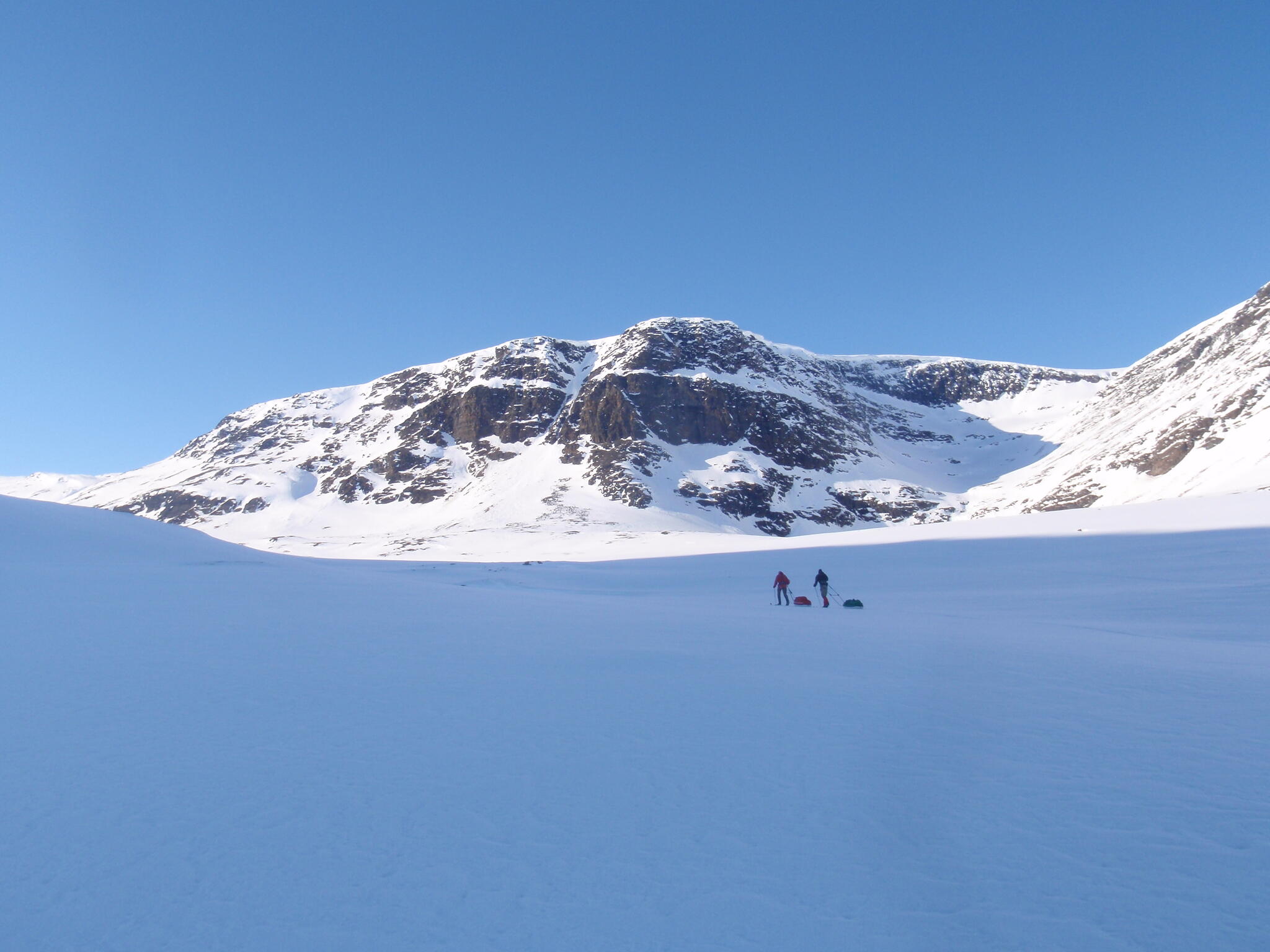 Vi skidade upp mot fjället Mattagáisi, som har en glaciärförsedd sydvägg.