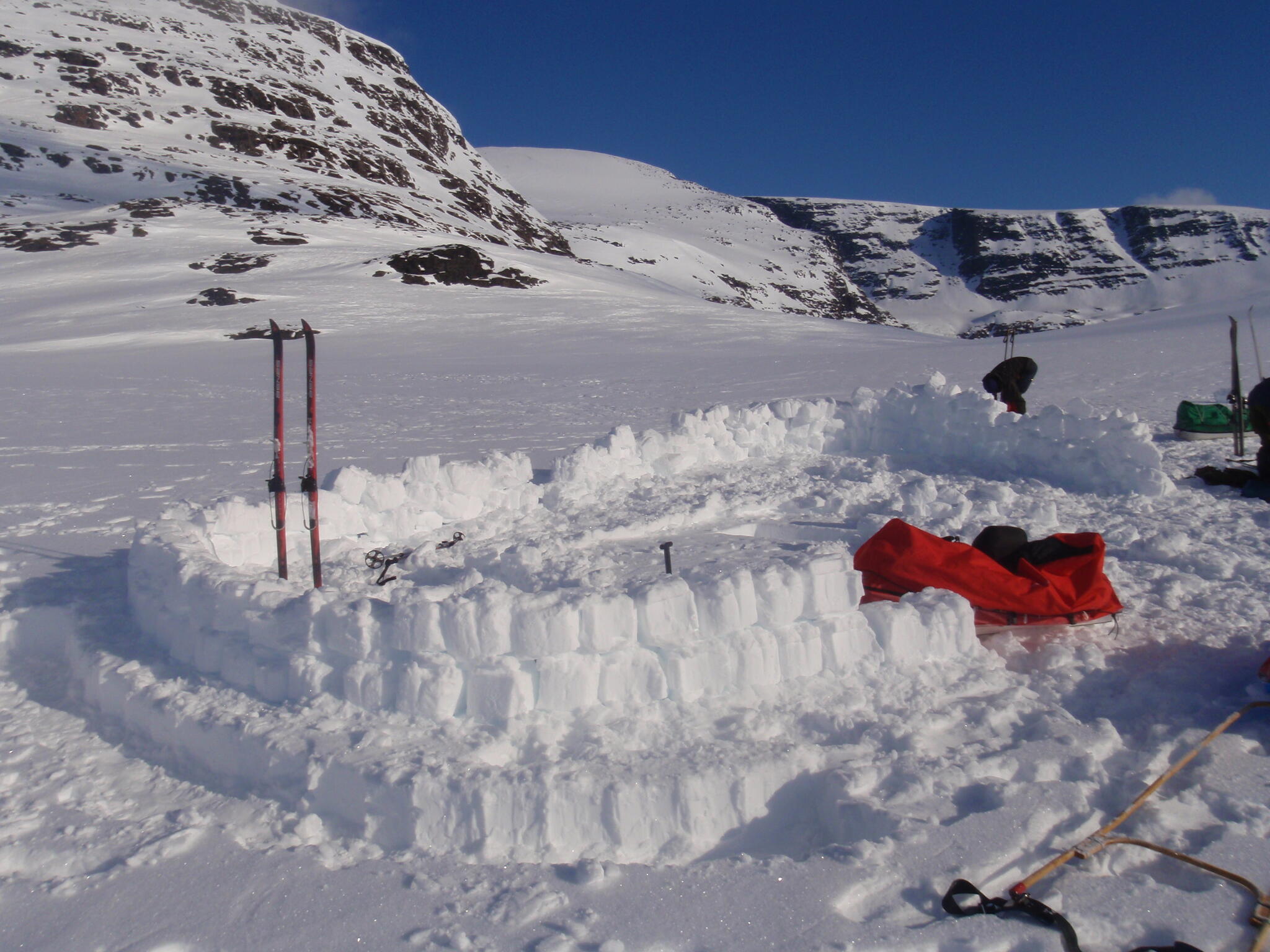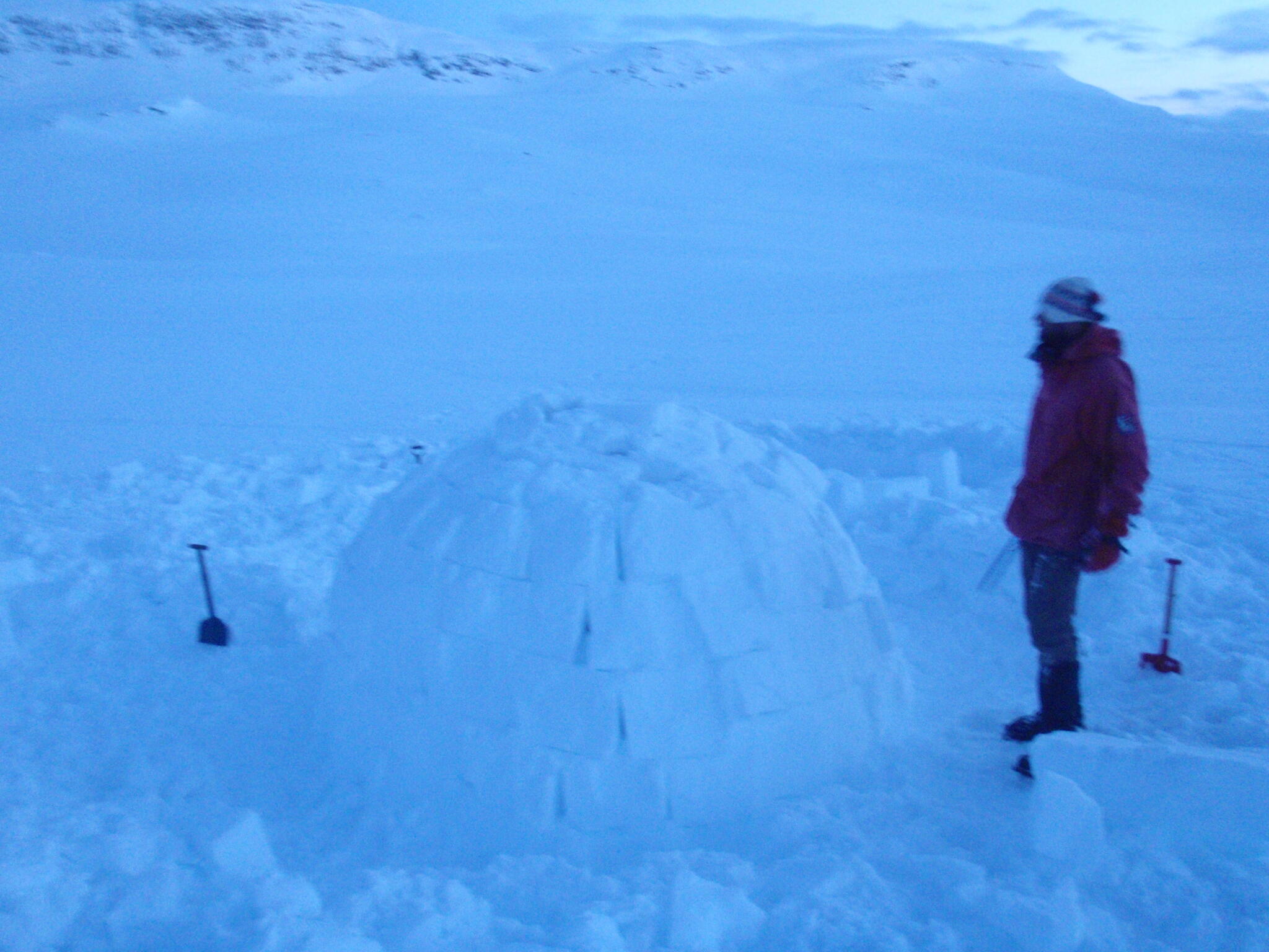 Vi skidade tillbaka till dalen Skinskardet / Duolljevággi och försökte vi få till en jättestor igloo.