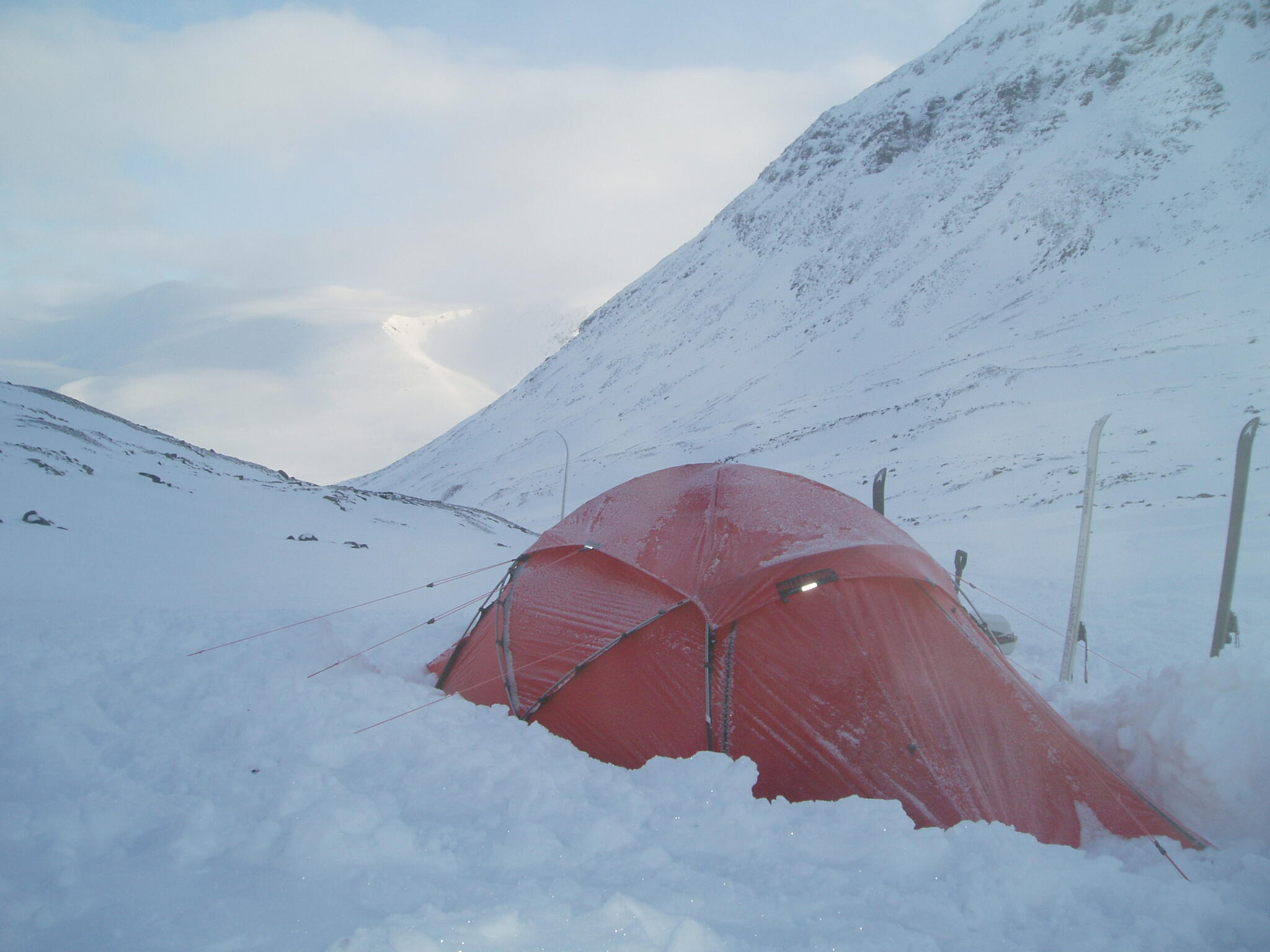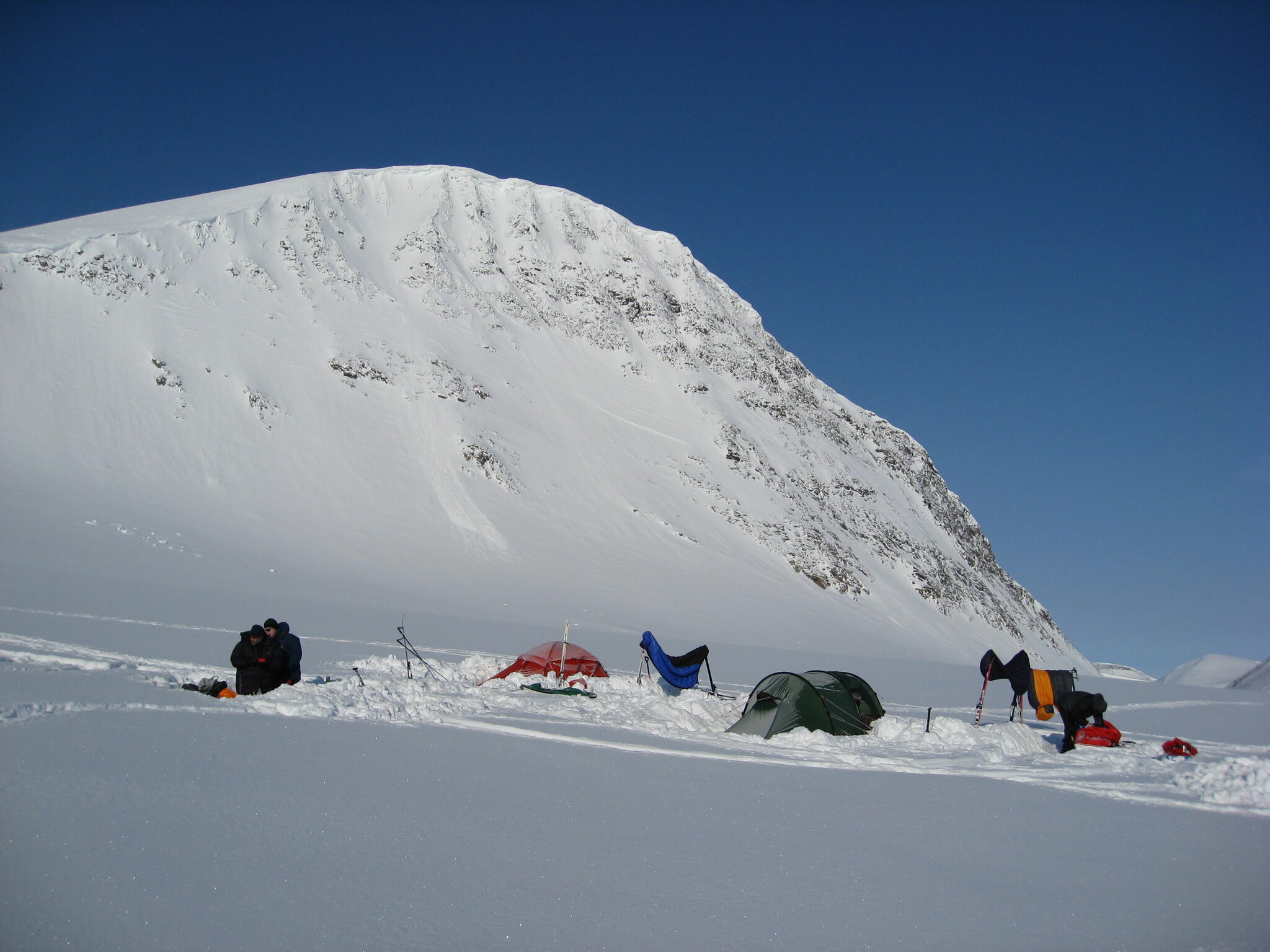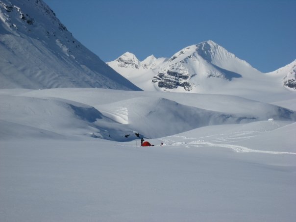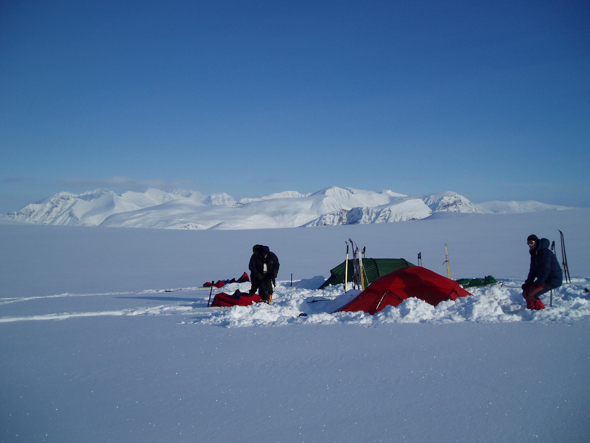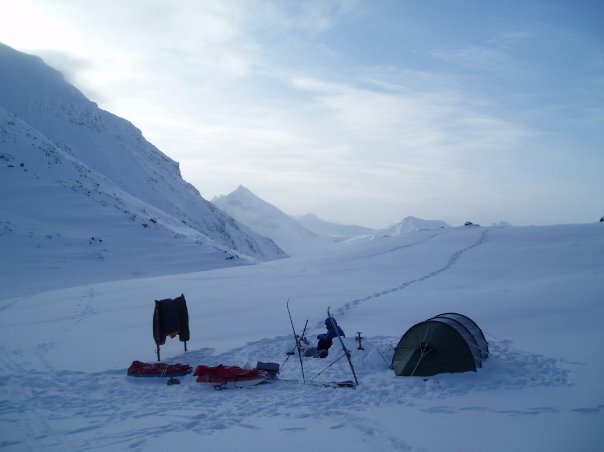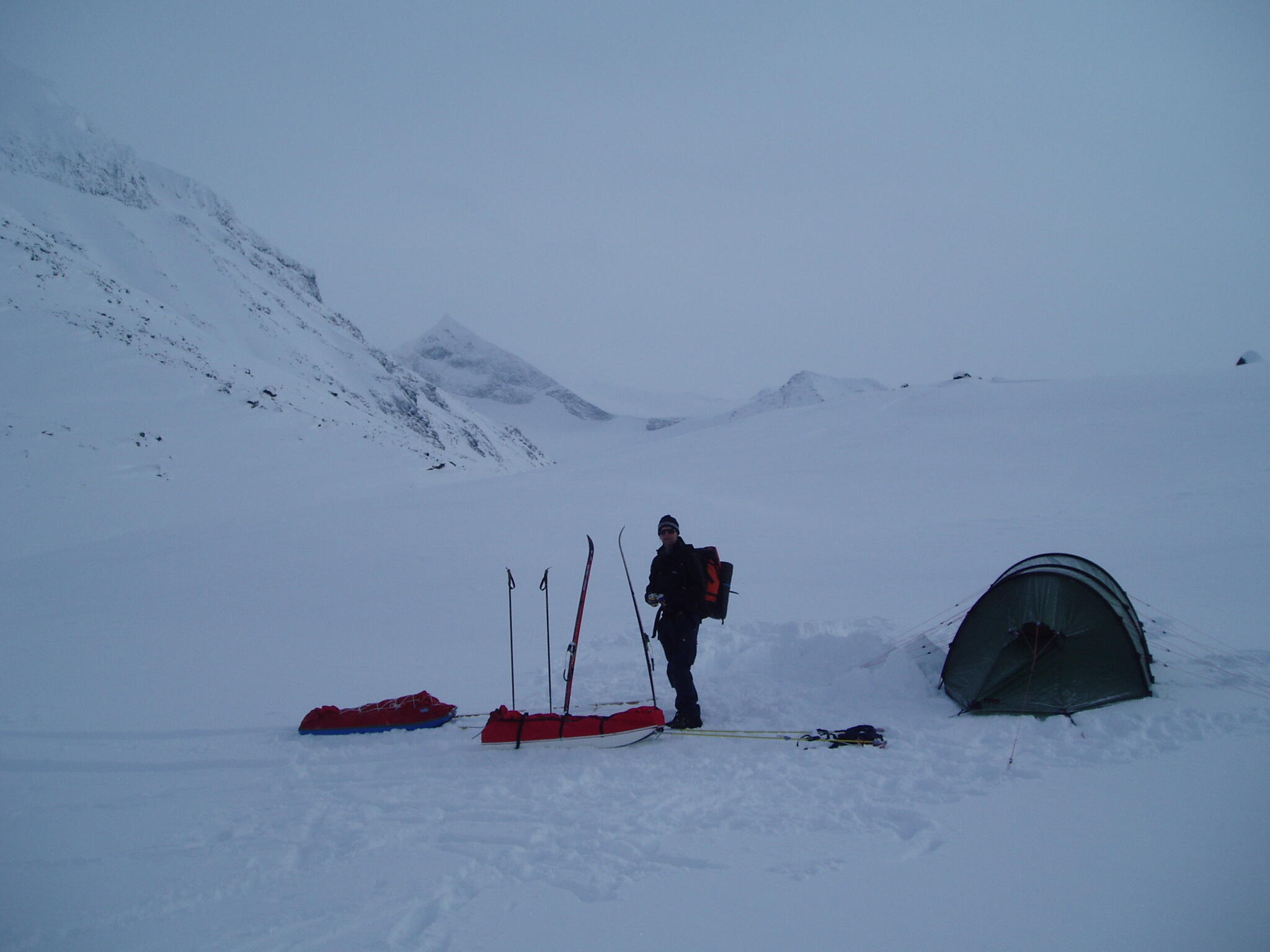 Påskturen 2008. Min första längre påsktur med tält. Vi hade inledningsvis dålig sikt. Sedan blev det kallt och finfint väder. Micke och jag passade på att gå upp på Sarektjåkka. Vi var även uppe på Kanalberget. 38,5 minusgrader hade vi en morgon när vi tittade på termometern utanför tältet.