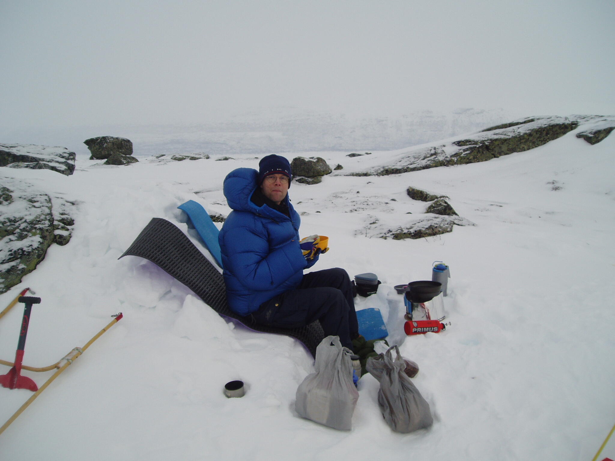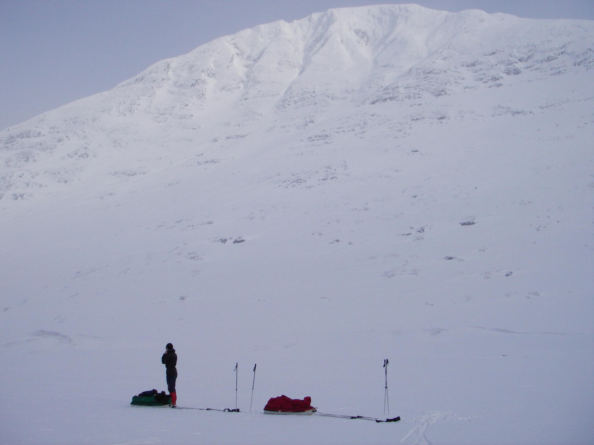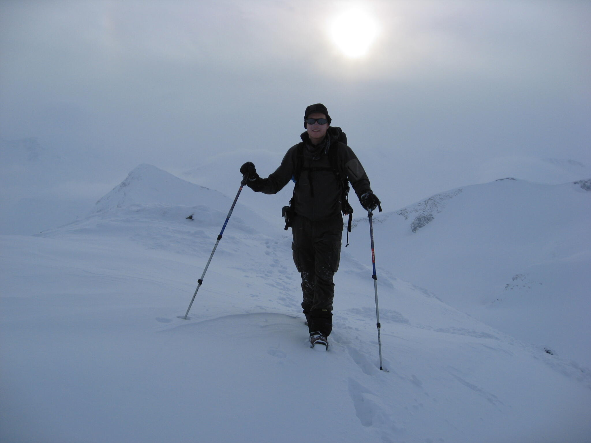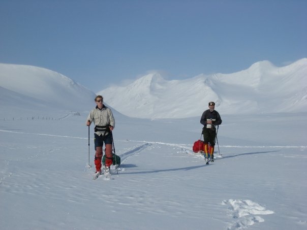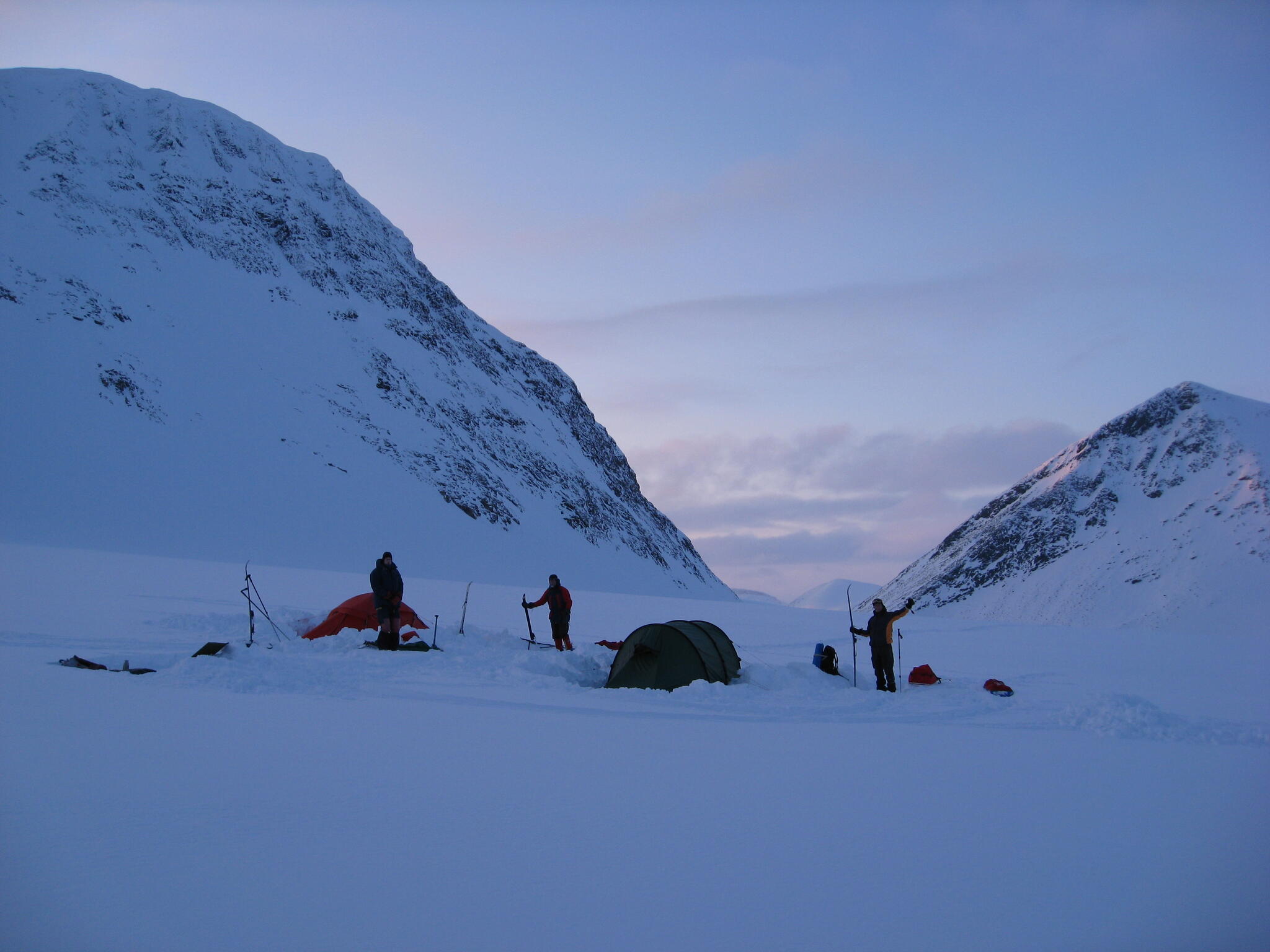 Påskturen 2008. Min första längre påsktur med tält. Vi hade inledningsvis dålig sikt. Sedan blev det kallt och finfint väder. Micke och jag passade på att gå upp på Sarektjåkka. Vi var även uppe på Kanalberget. 38,5 minusgrader hade vi en morgon när vi tittade på termometern utanför tältet.