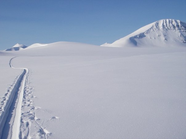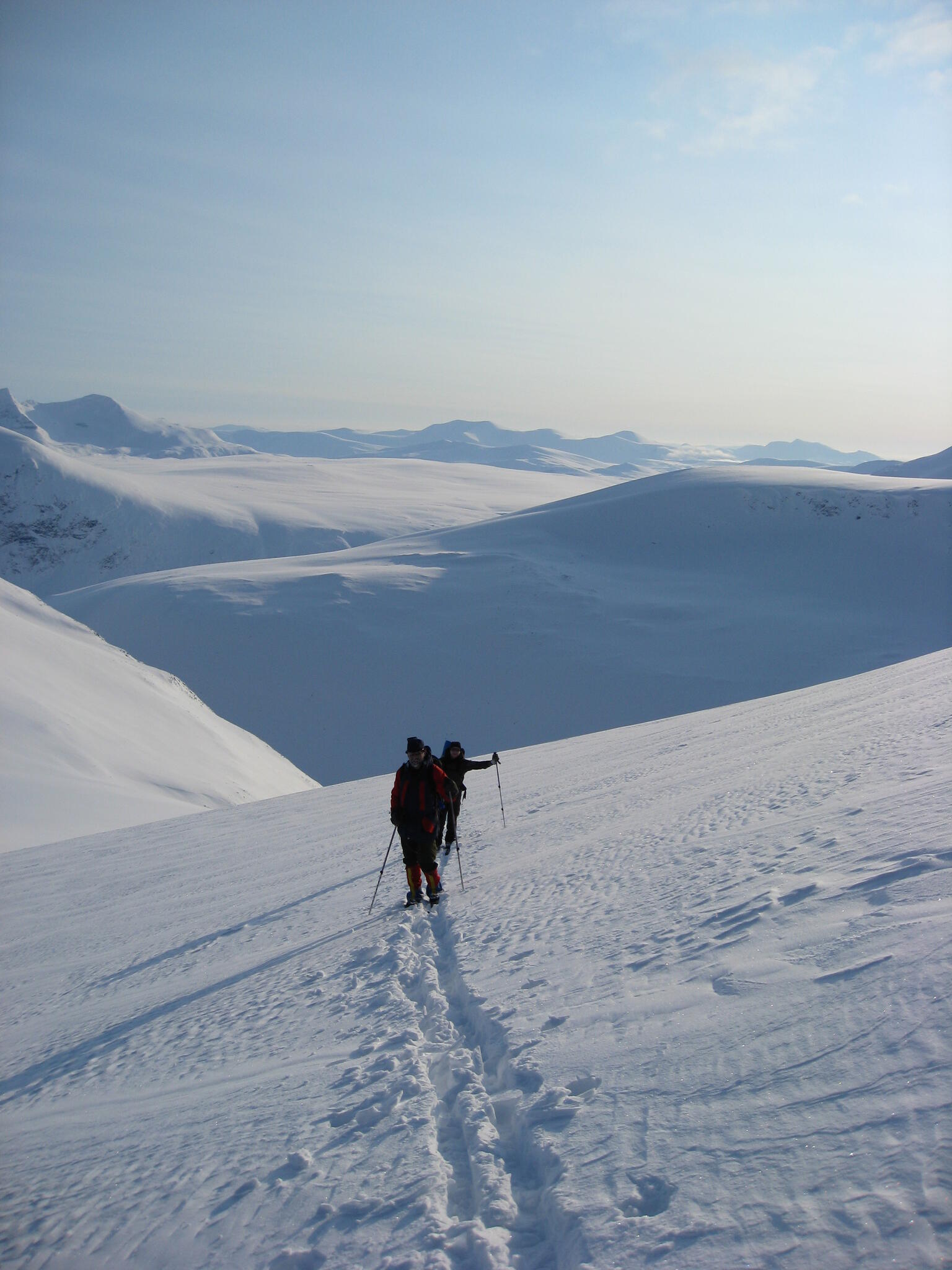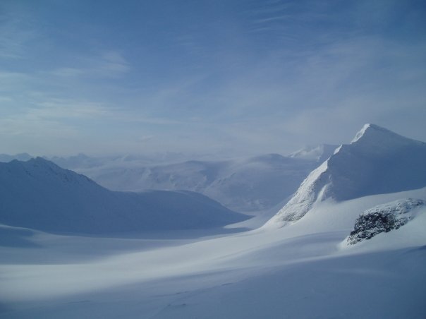 En kul men bitvis kall fjälltur. Ny fjälltopp för mig och överraskande fin skidsträcka på en å. Och kul med ny konstellation av skidturvänner.