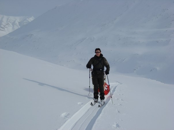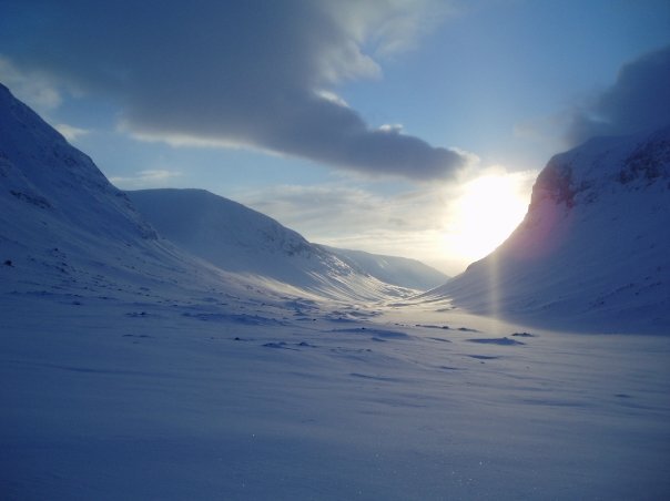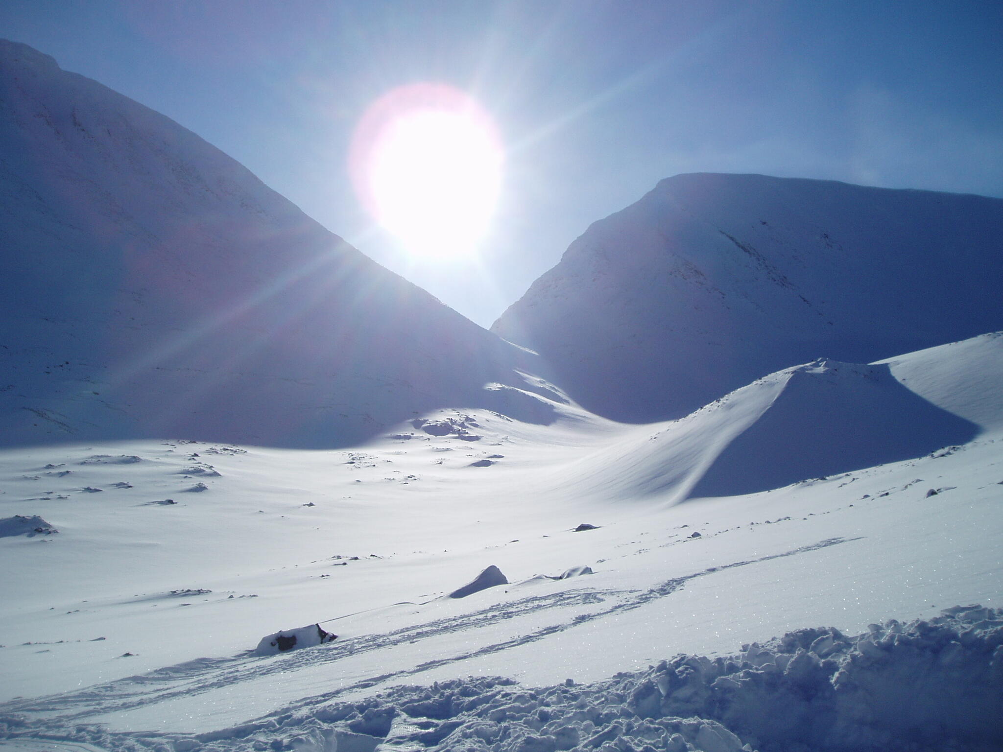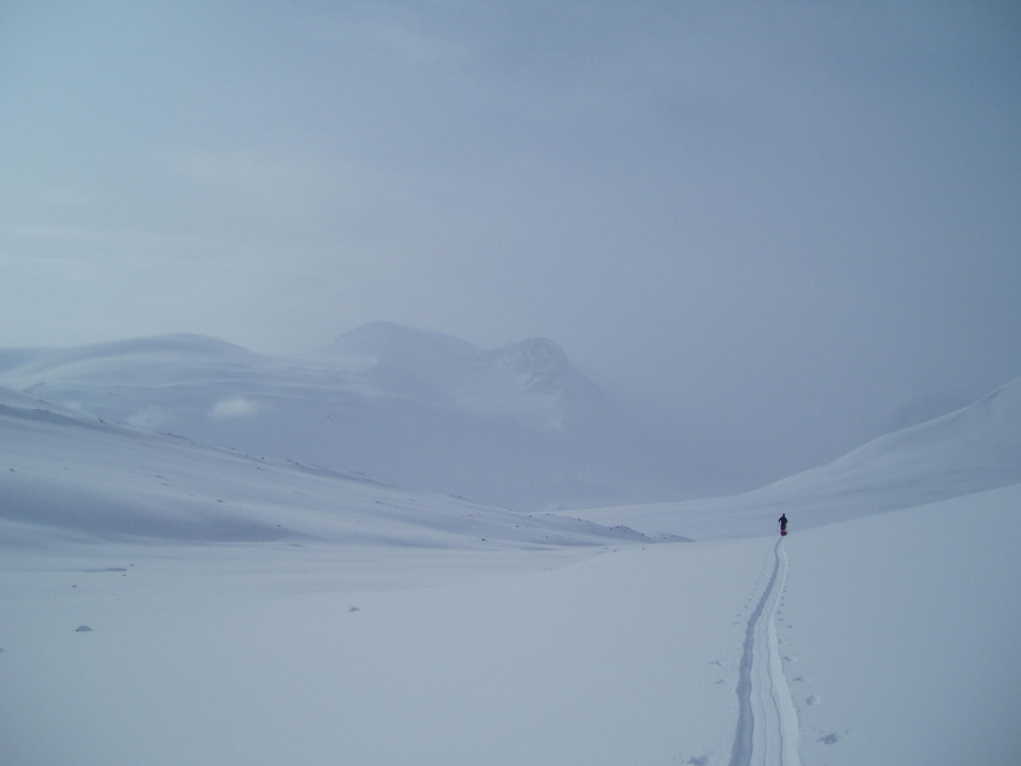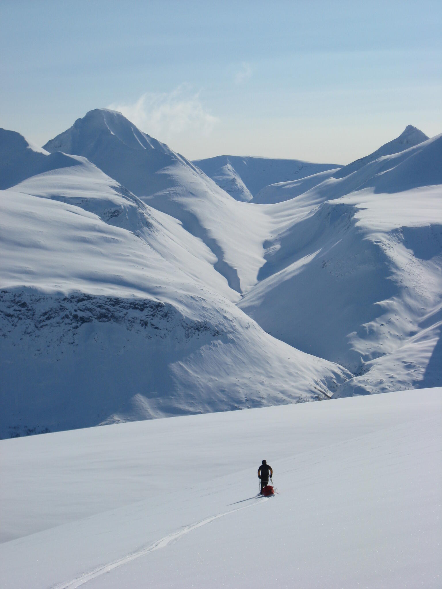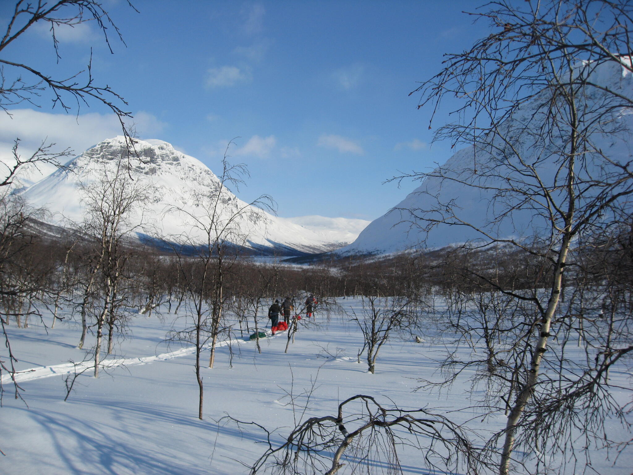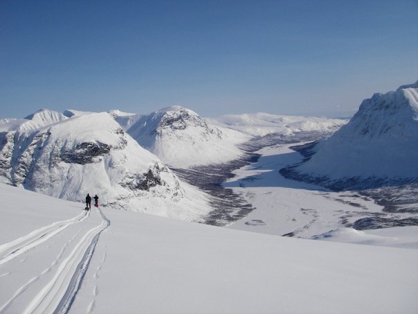På väg ner i Rapadalen. Vill egentligen inte lämna denna utsikt. Observera min fina hemgjorda pulka : ) Foto: Michael Heuman