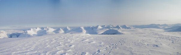 Utiskt från vår tältplats strax väster om Stortoppen mellan glaciärerna.