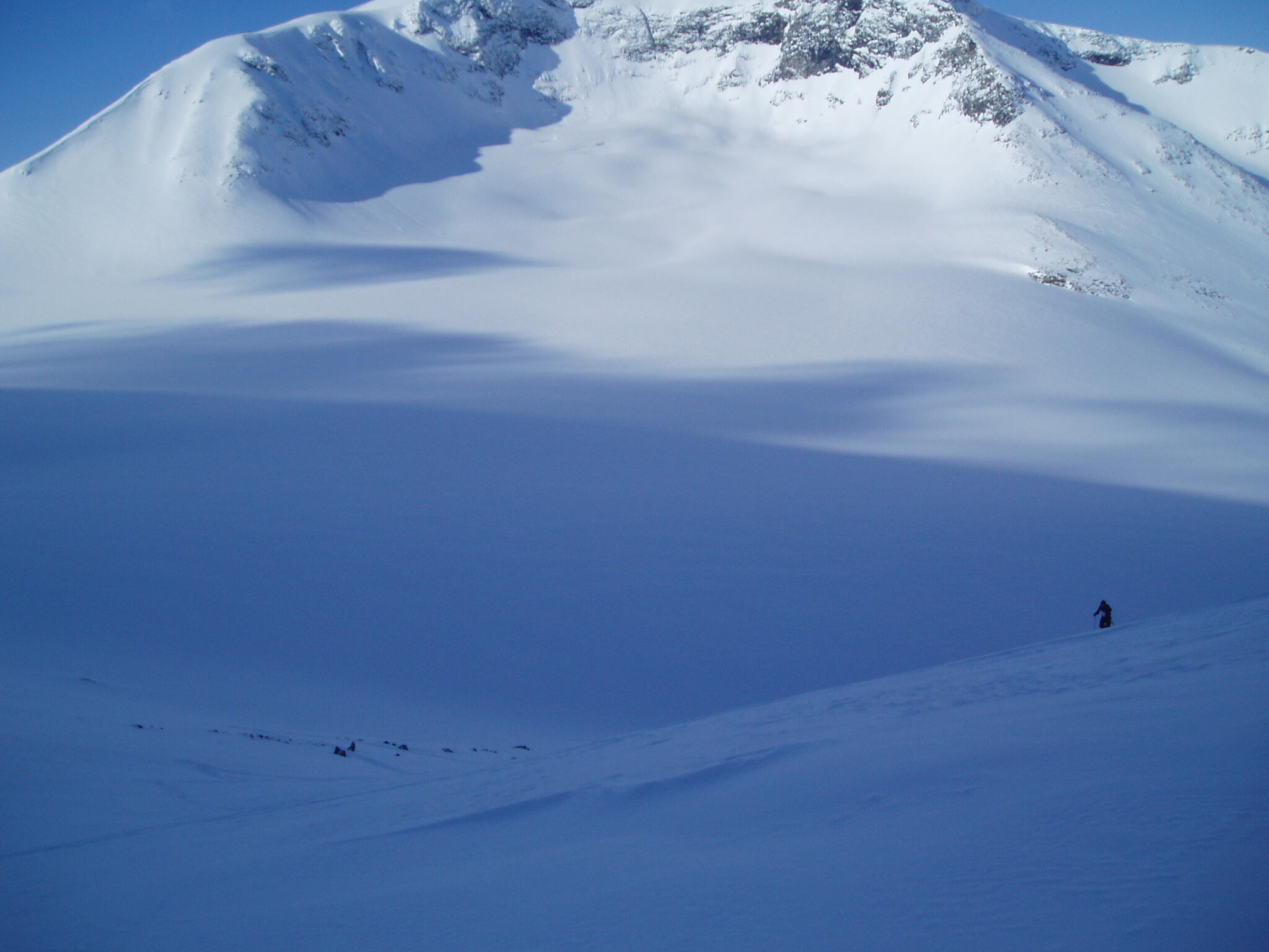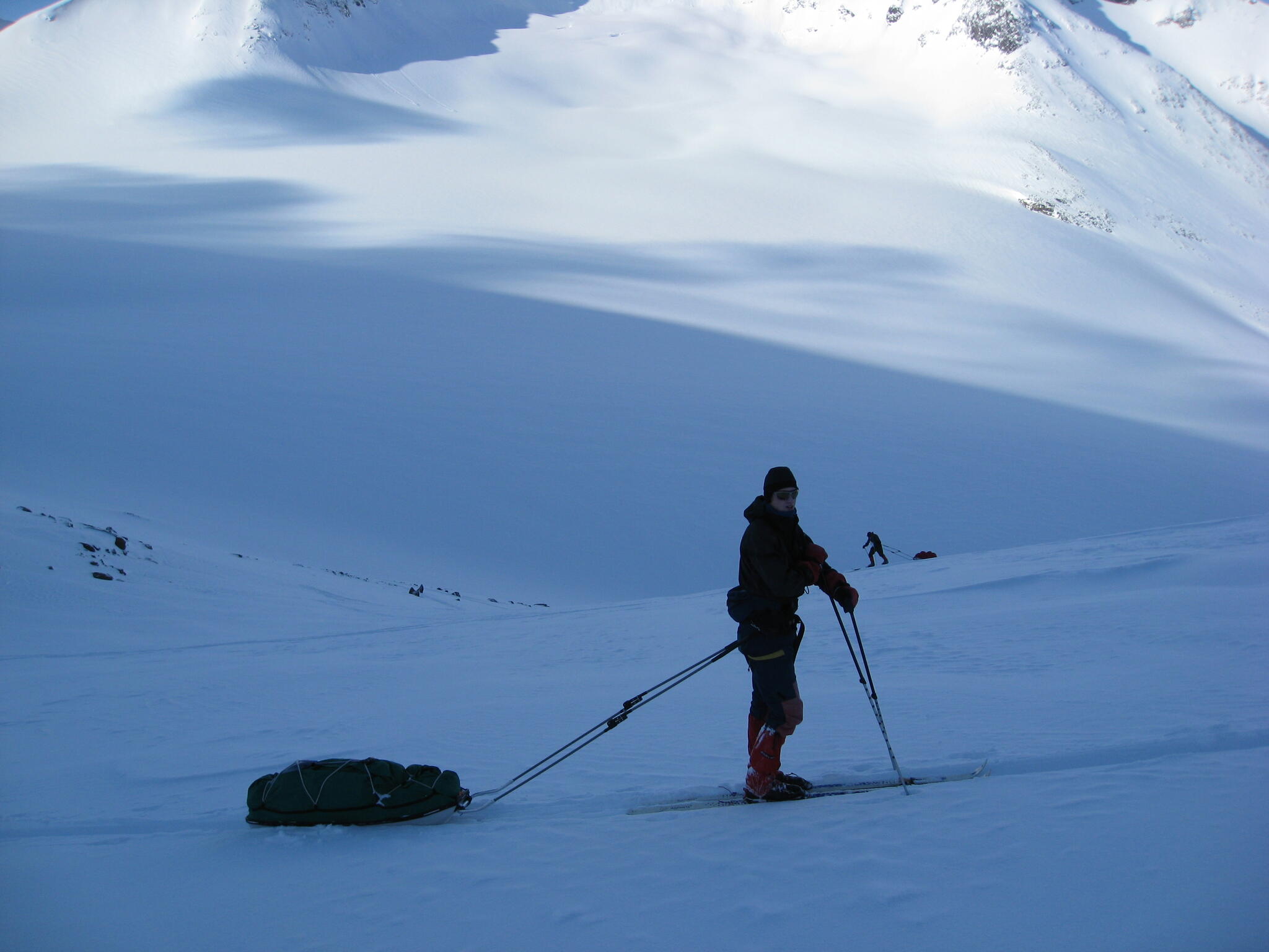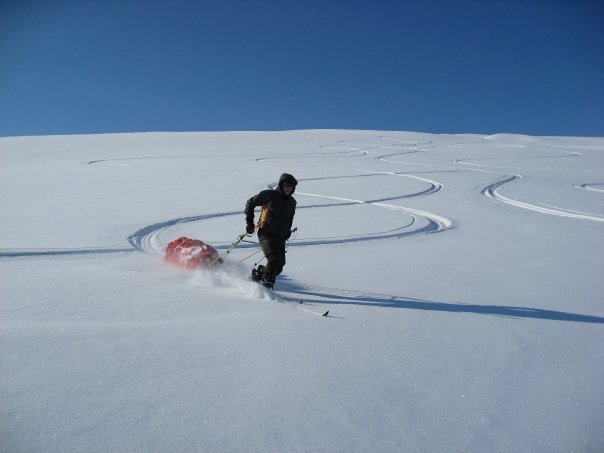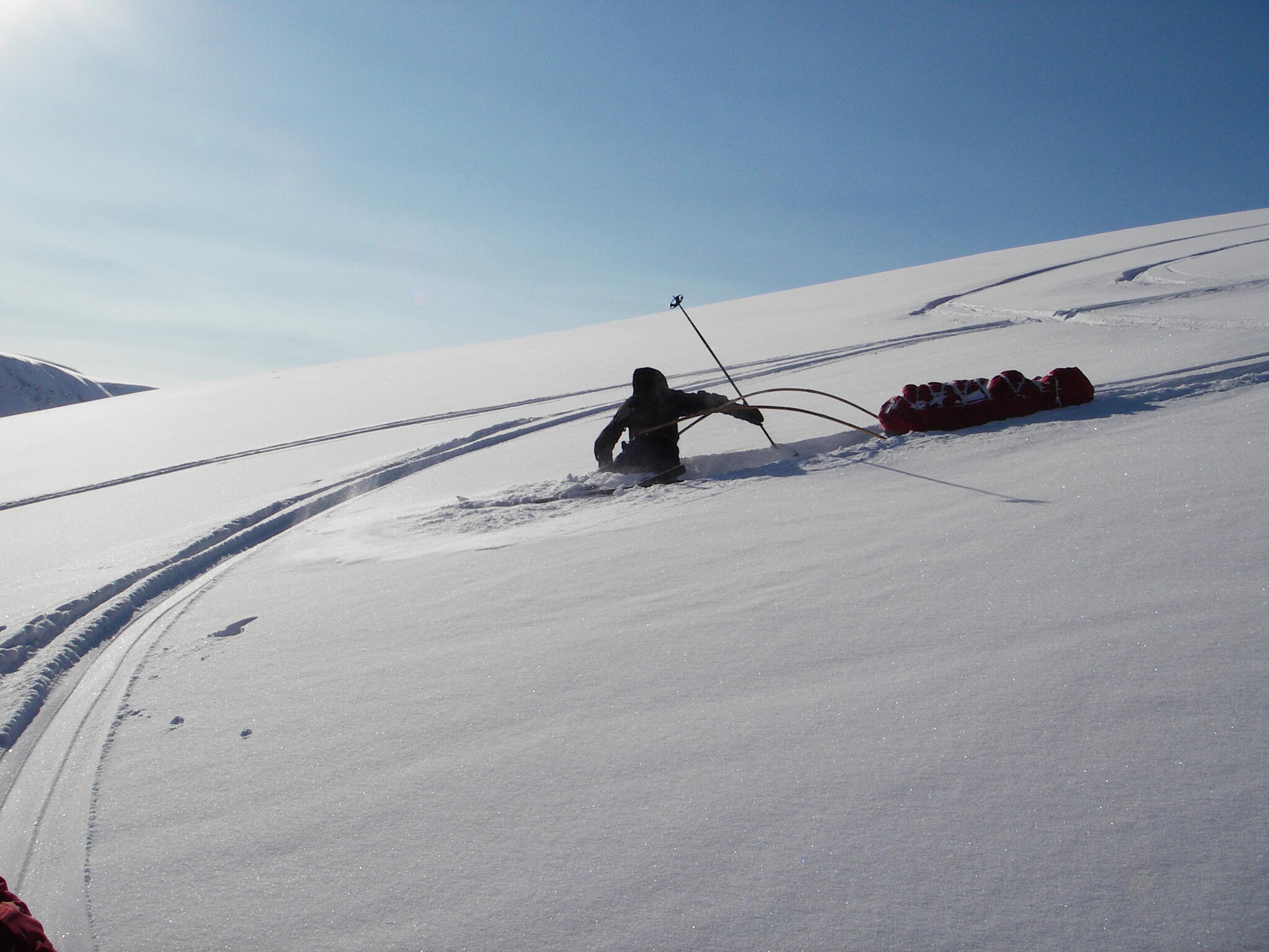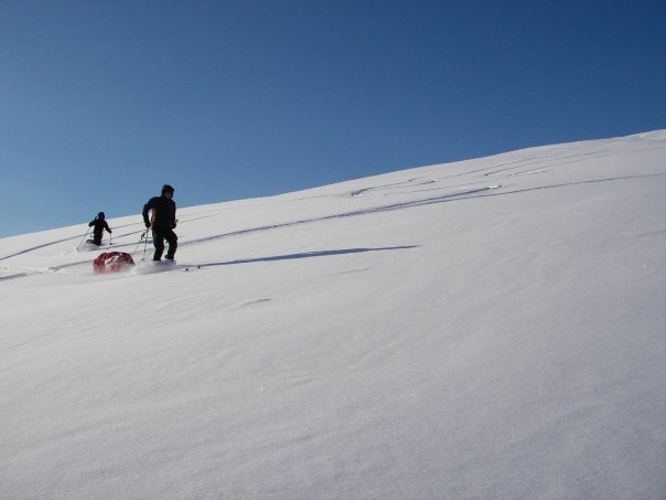 Fantastisk snö, lagom lutning. Helt perfekt för telemark... med turskidor och pulkor! Gick bra!