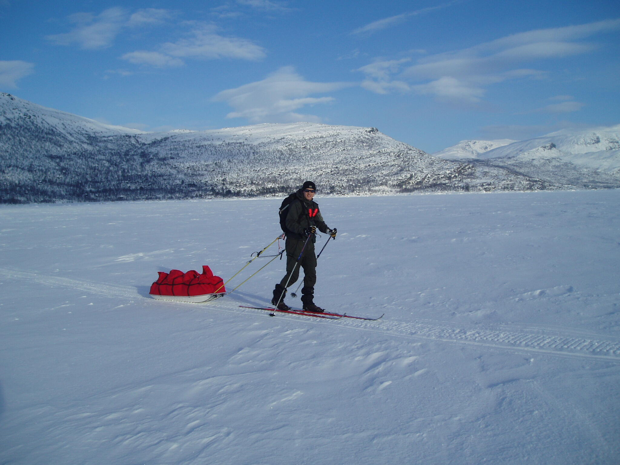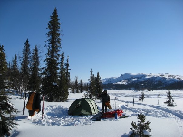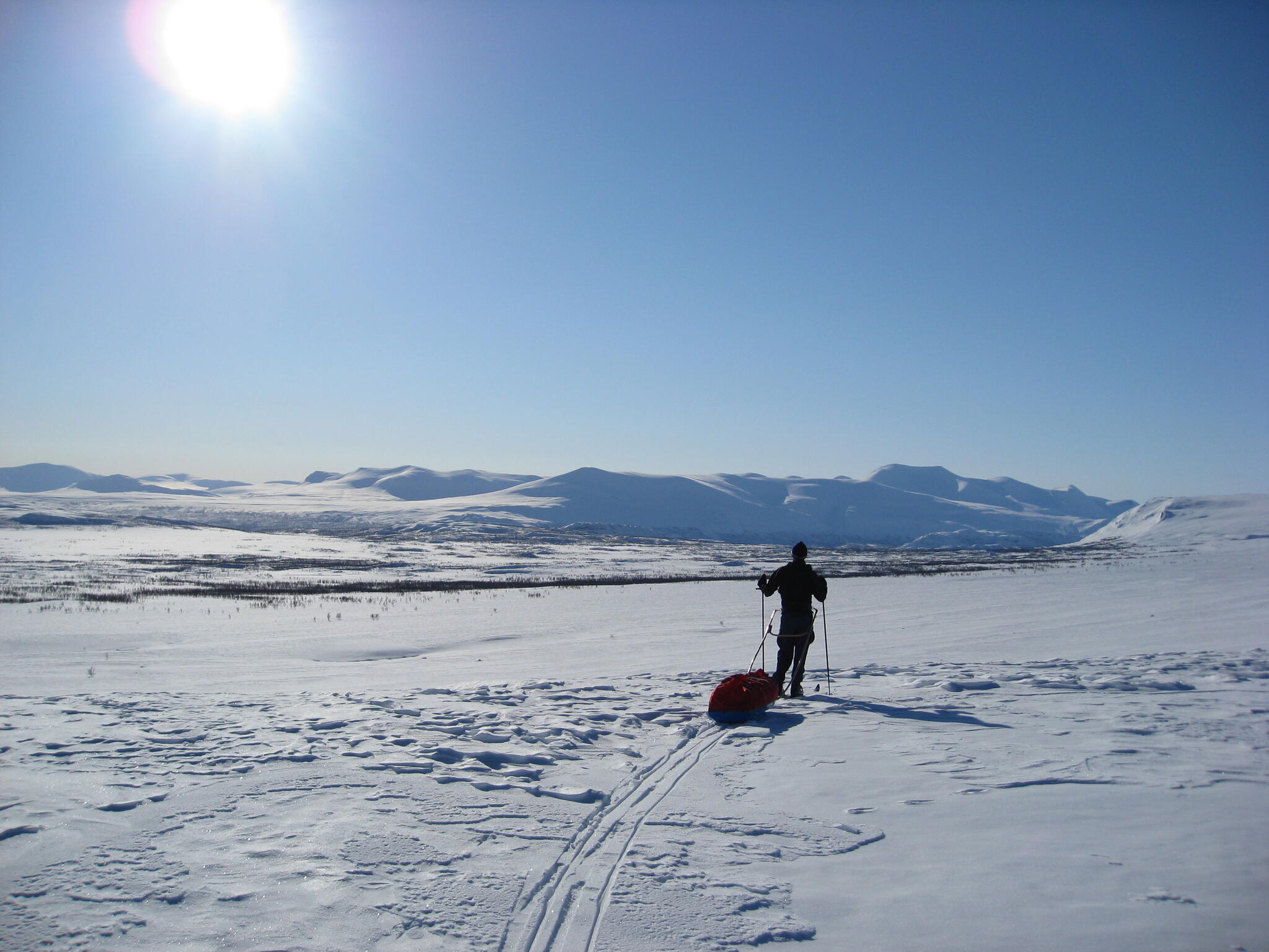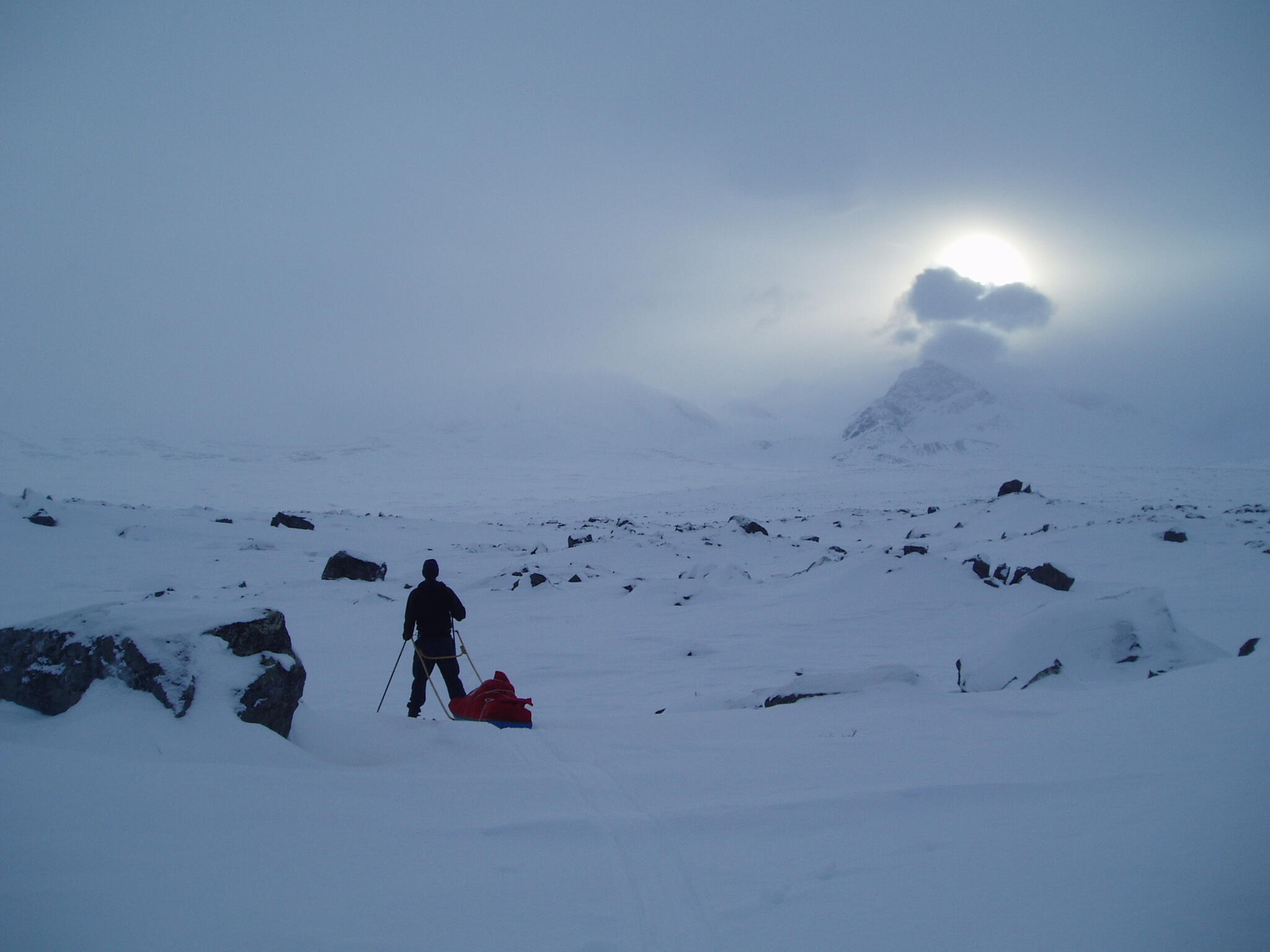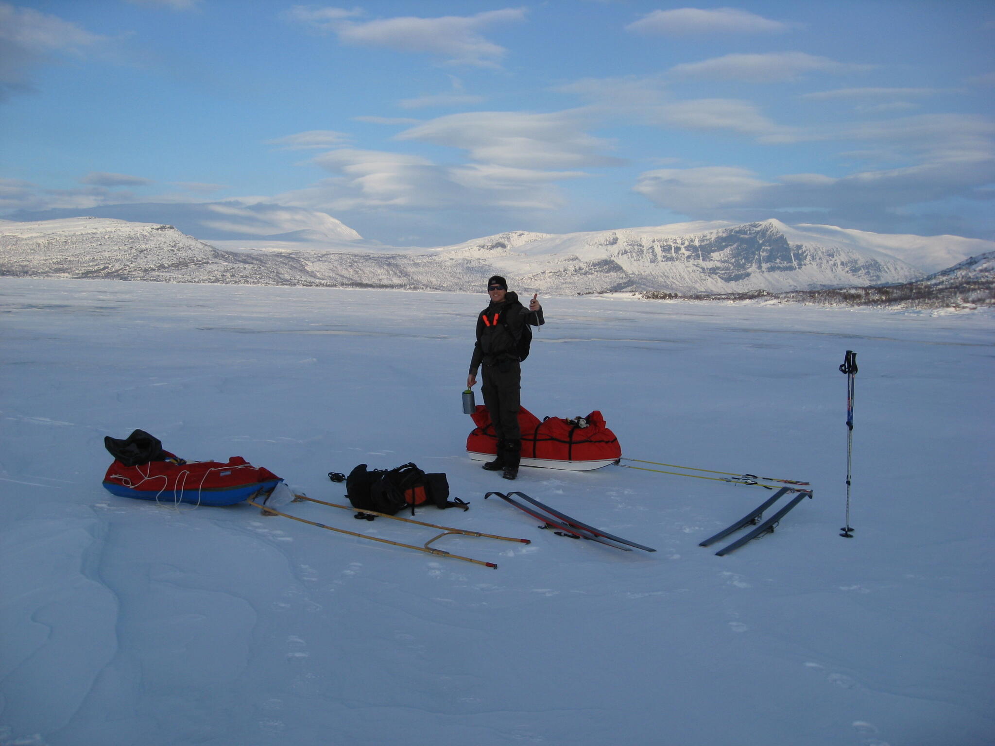 Jag drog på en pulka med massa packning. Många andra vi såg drog på skidpulkor med barn i, men i vår pulka var det tältpackning.