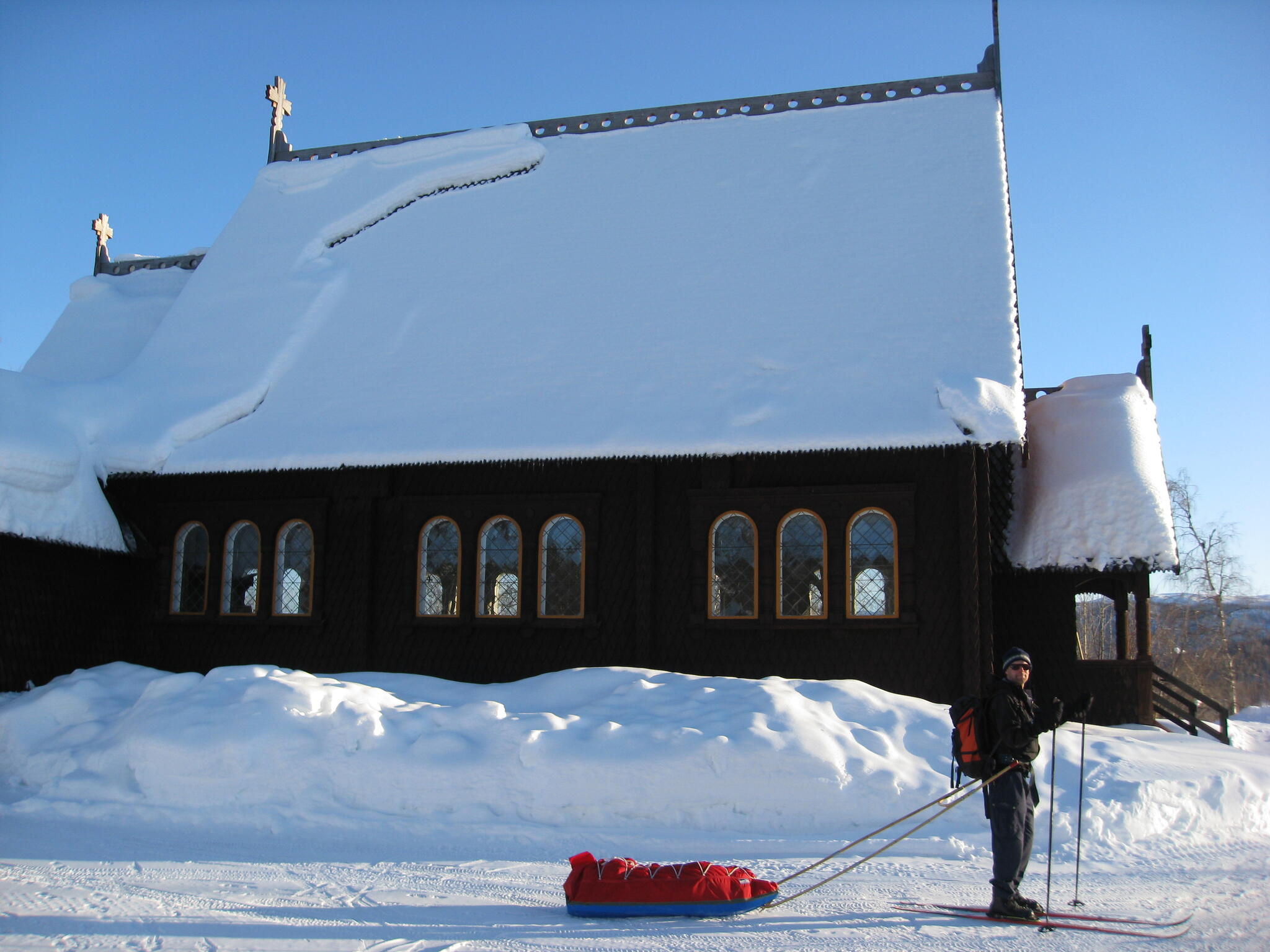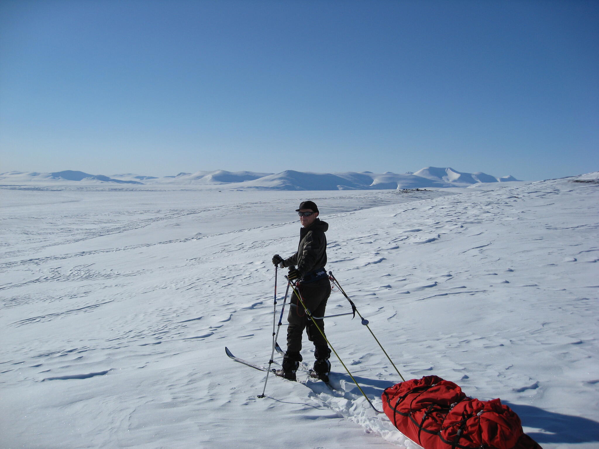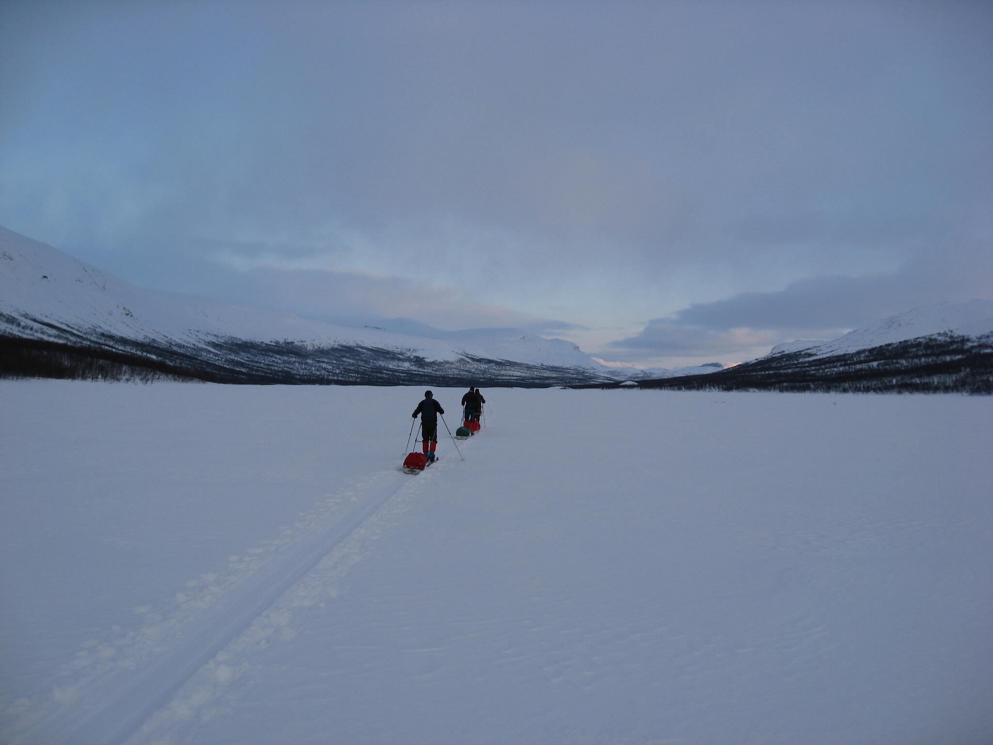Jag drog på en pulka med massa packning. Många andra vi såg drog på skidpulkor med barn i, men i vår pulka var det tältpackning.