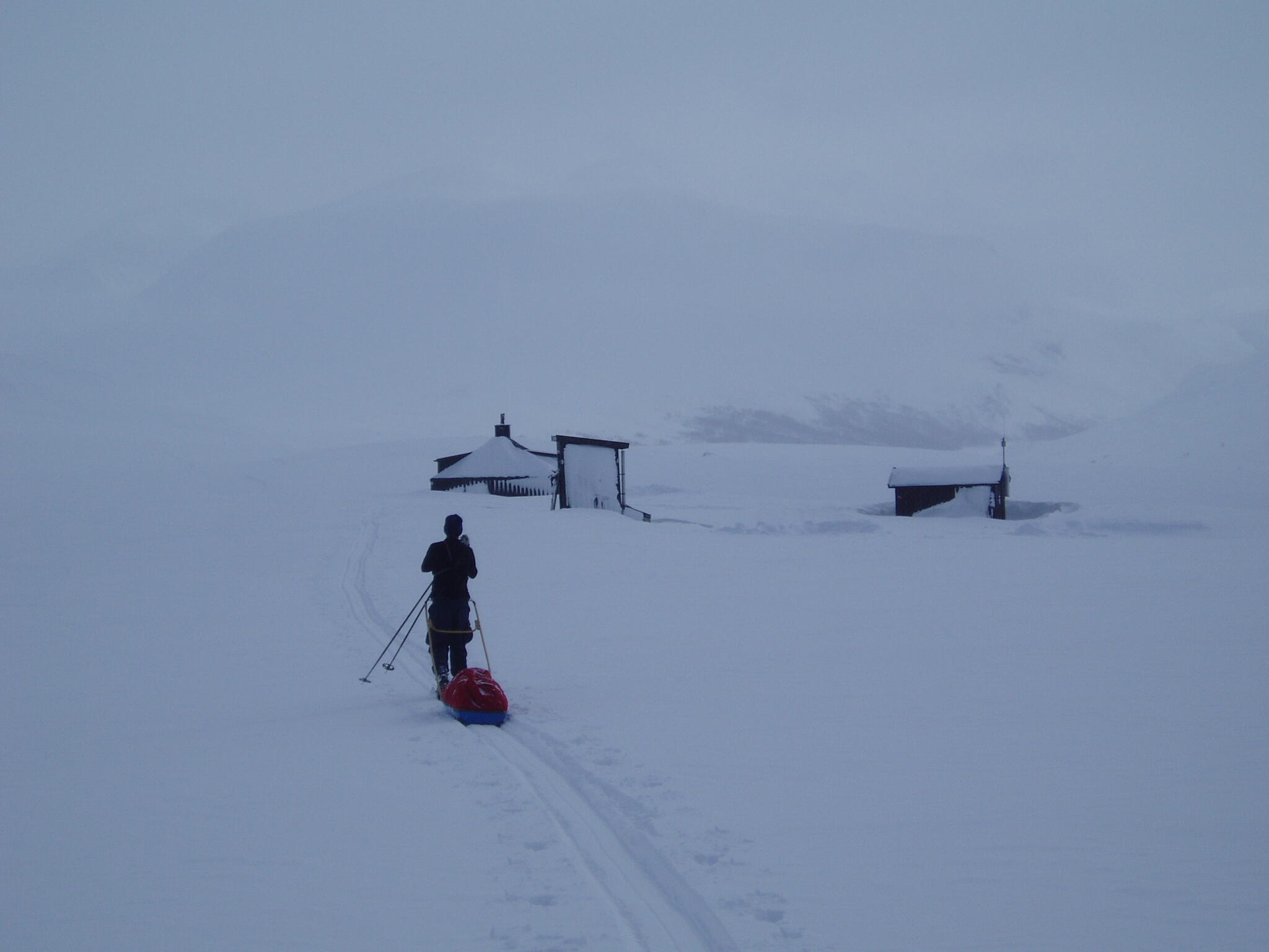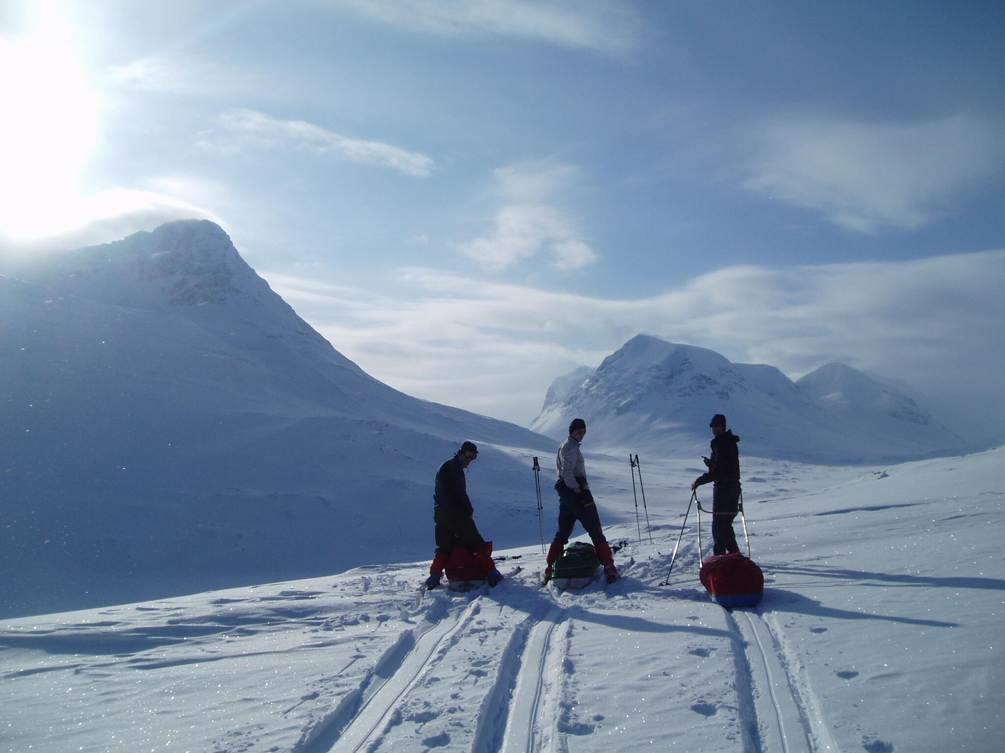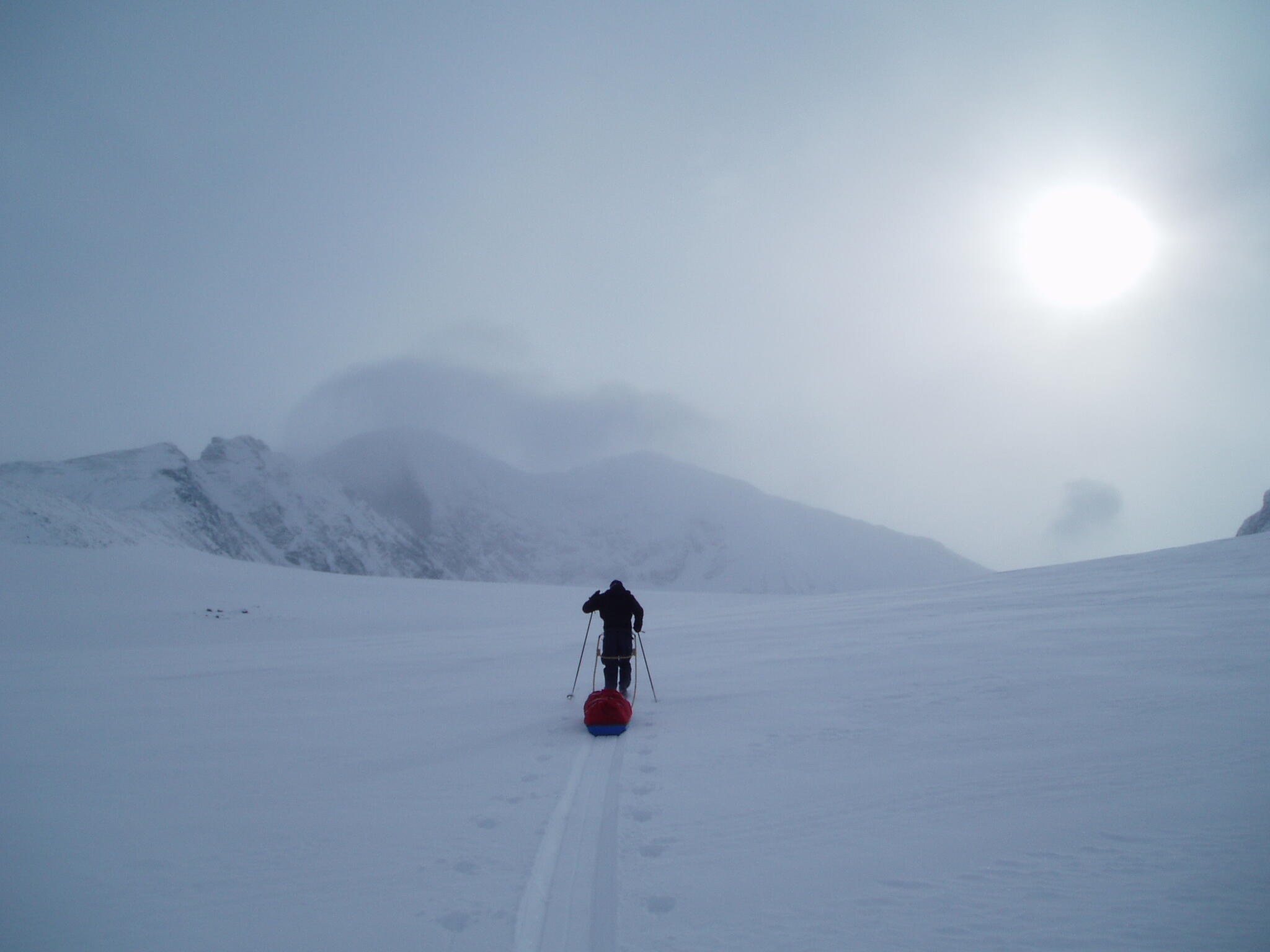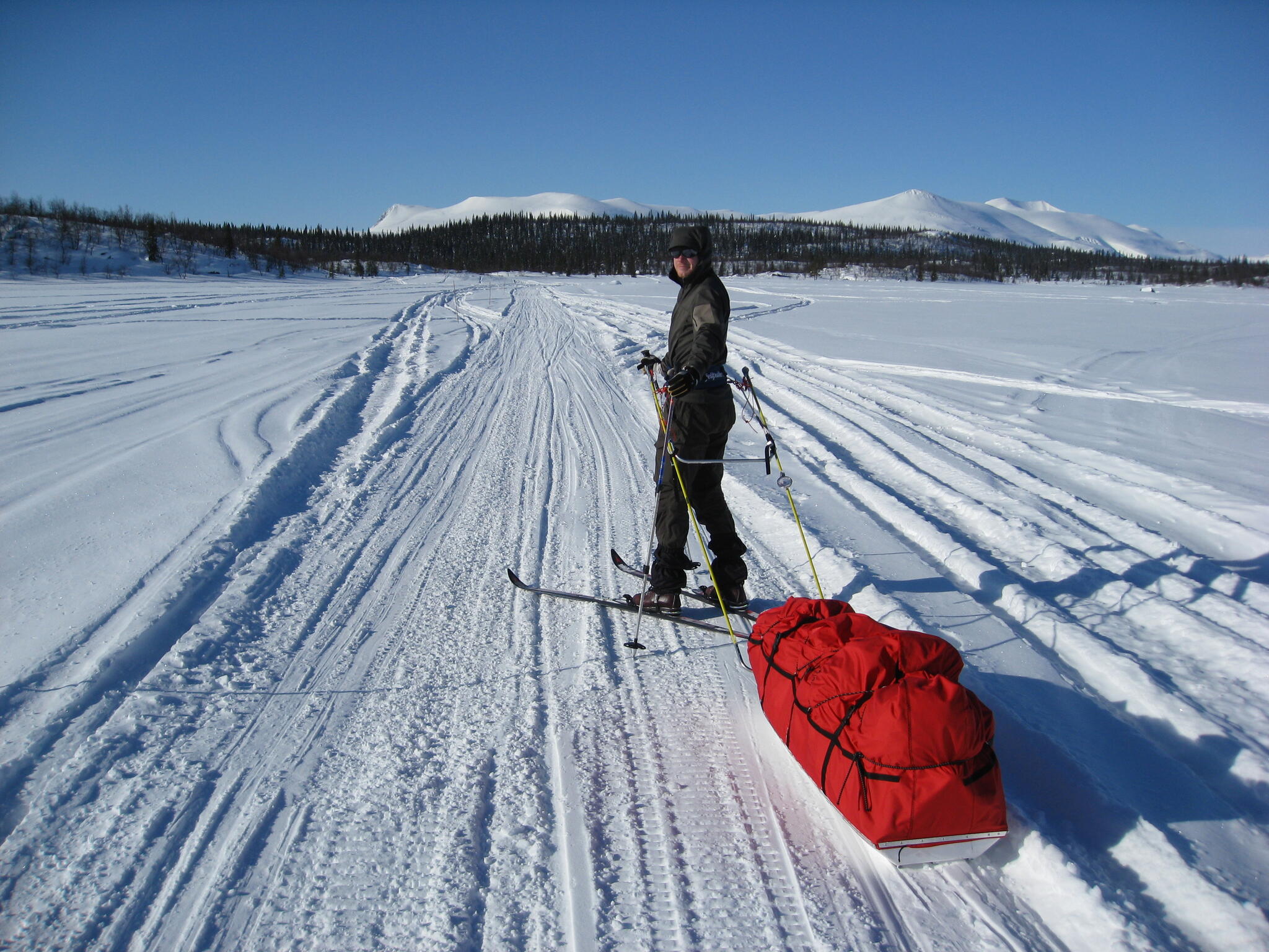 Jag drog på en pulka med massa packning. Många andra vi såg drog på skidpulkor med barn i, men i vår pulka var det tältpackning.