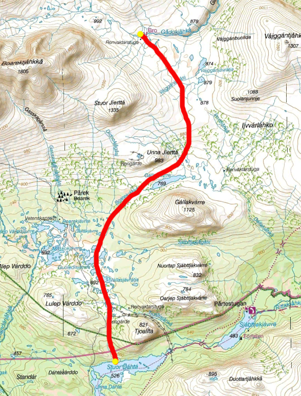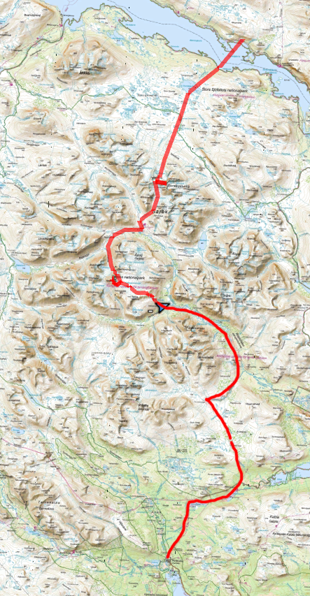 Jag och Michael började vår Sarektur strax väster om Vakkotavare och avlutade i Kvikkjokk. Buss mellan Gällivare och startpunkten.