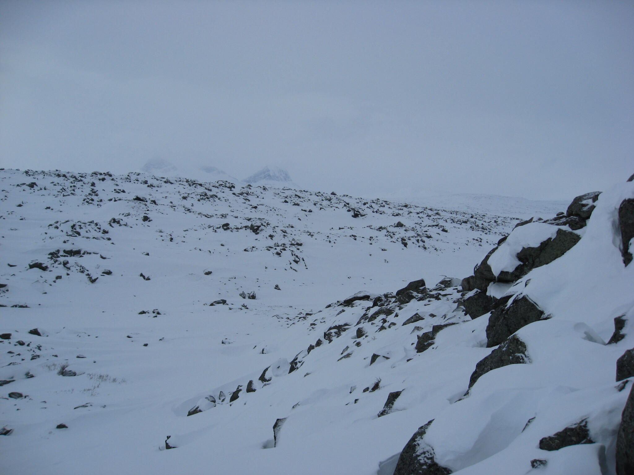 Det var en del blockmark vi behövde passera denna dag. Upp och ner. Rätt jobbigt och dålig sikt.