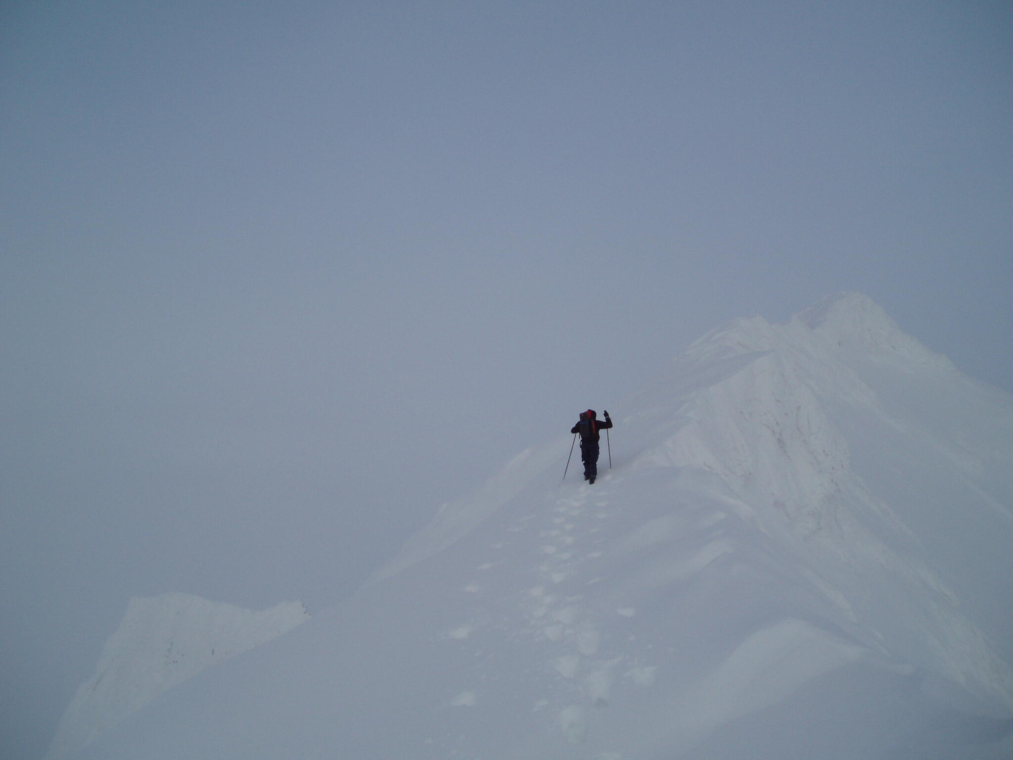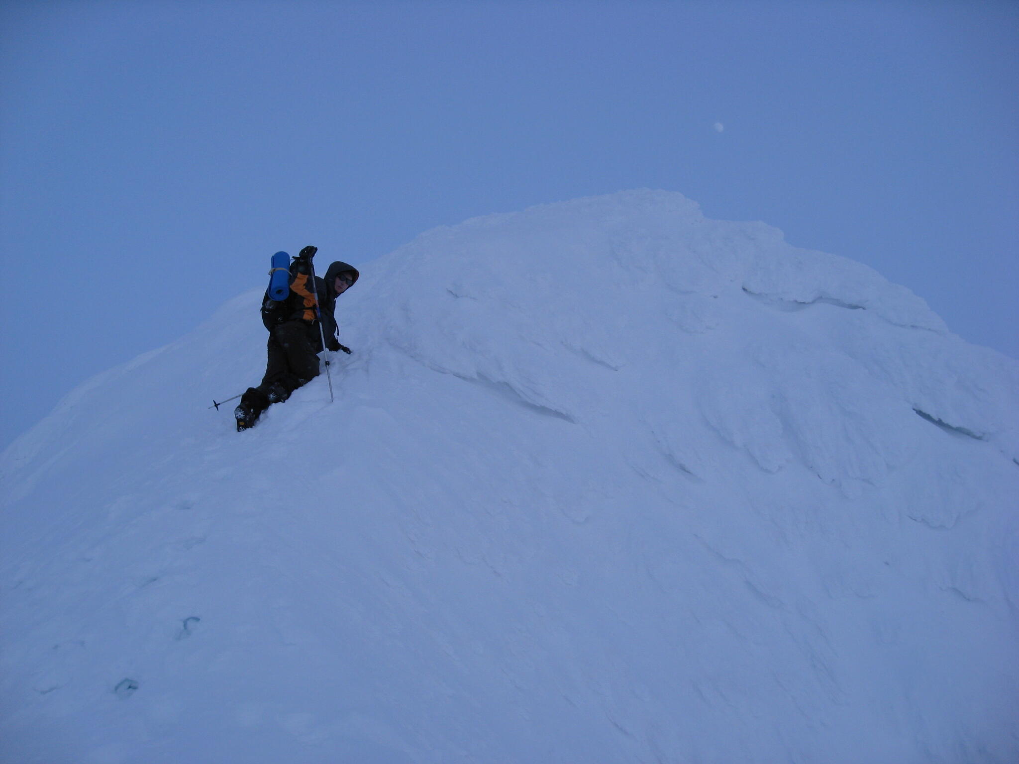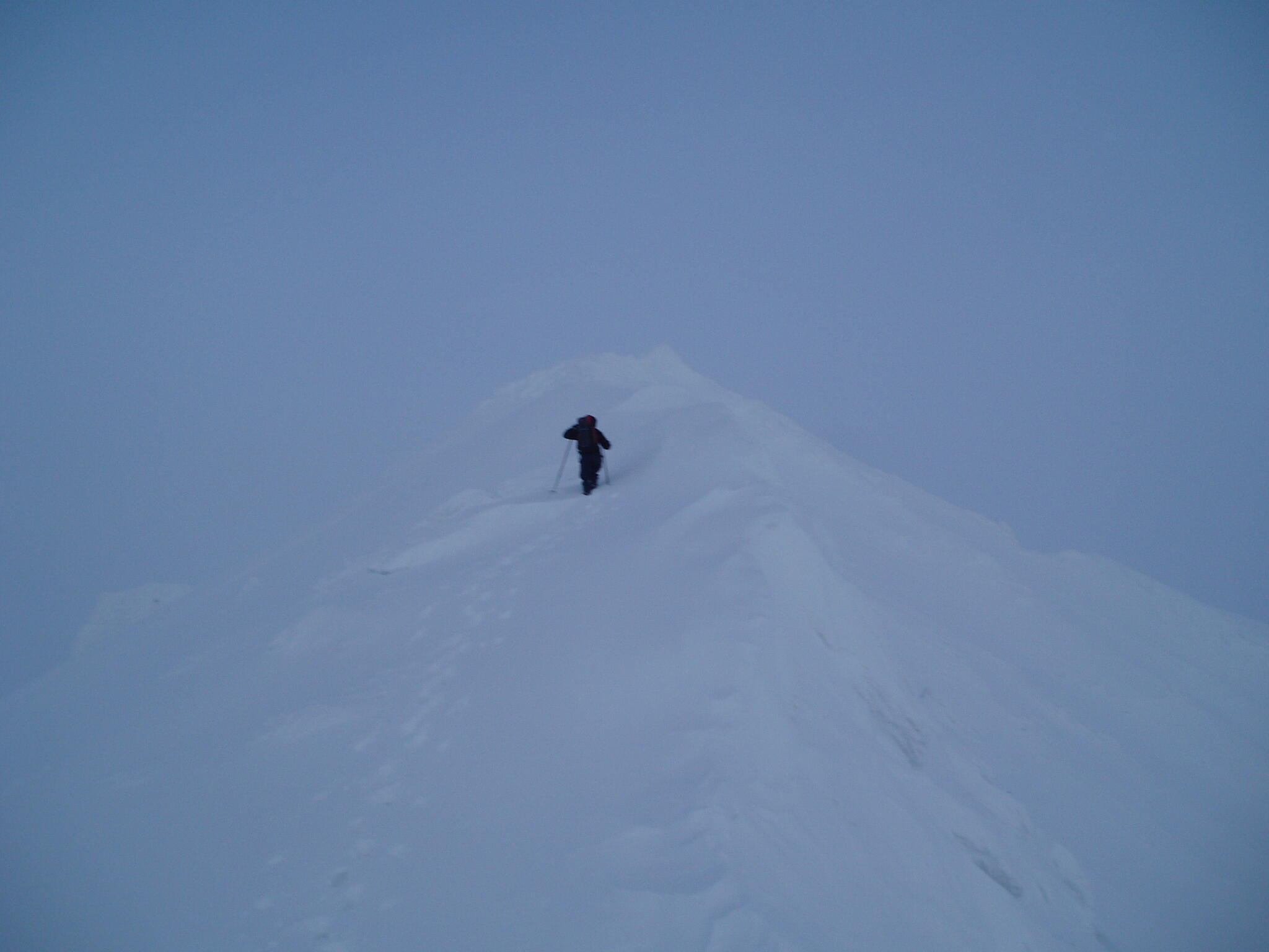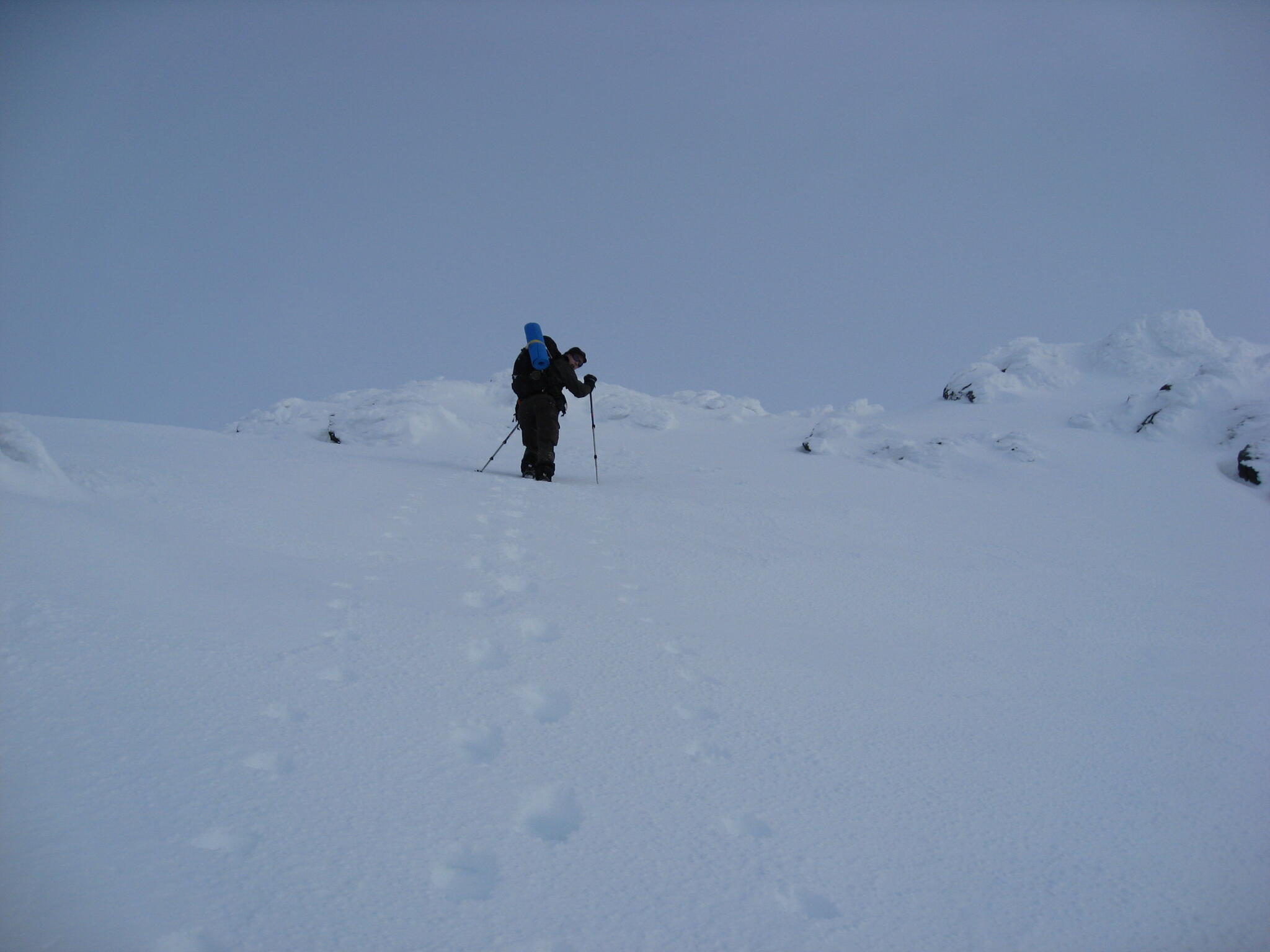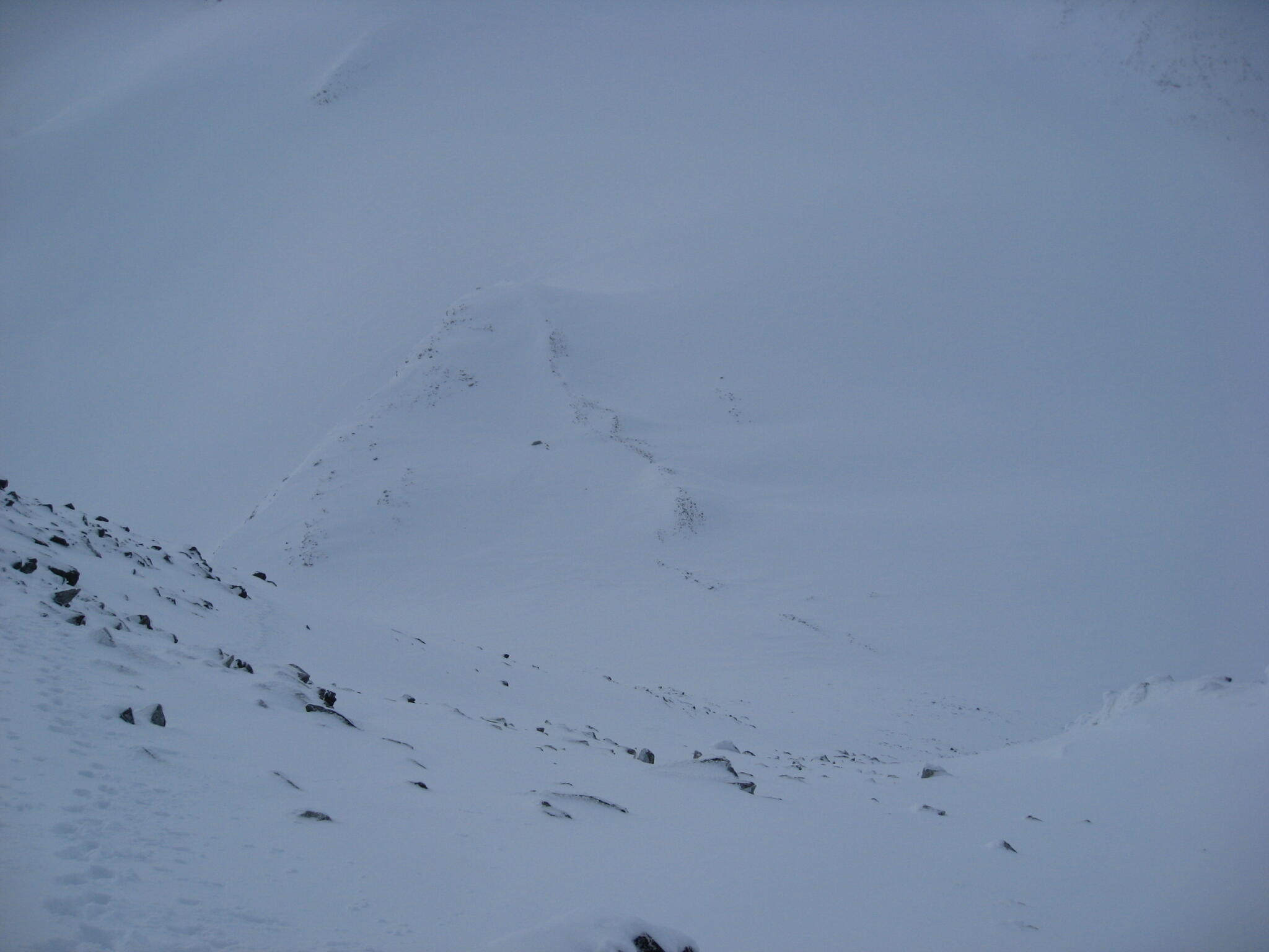 På väg ner längs kammen vi kom upp. Vore bra med stegjärn och det inköptes efter hemkomst till Uppsala inför framtida äventyr.