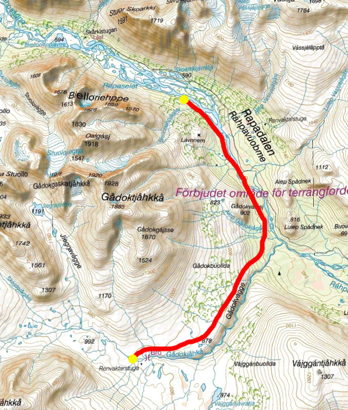 På väg österut i Rapadalen. Fjället Gådokvárásj i sikteFoto: Michael Heuman