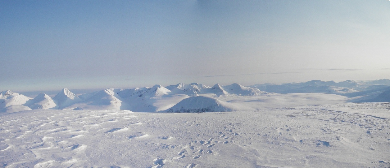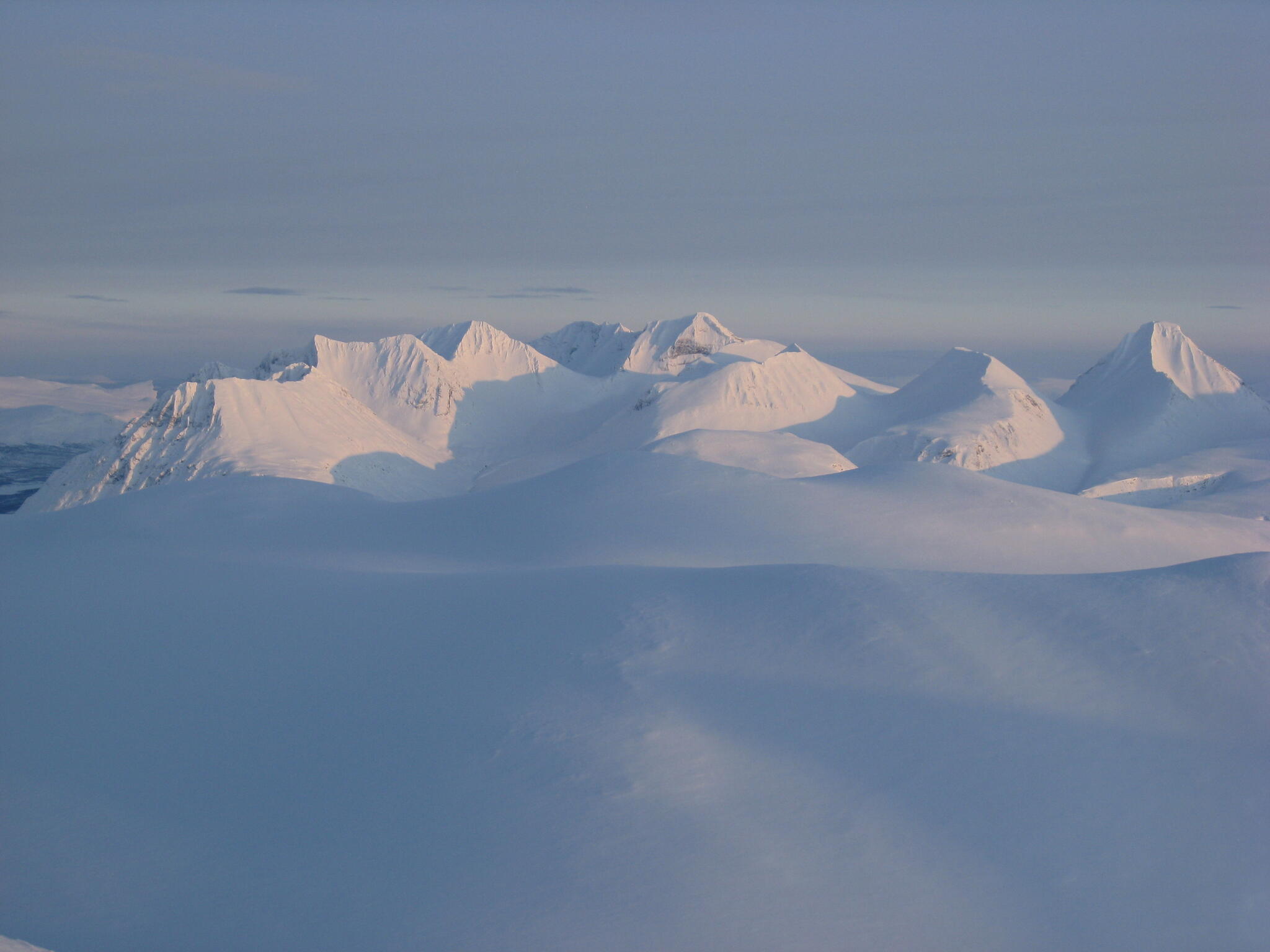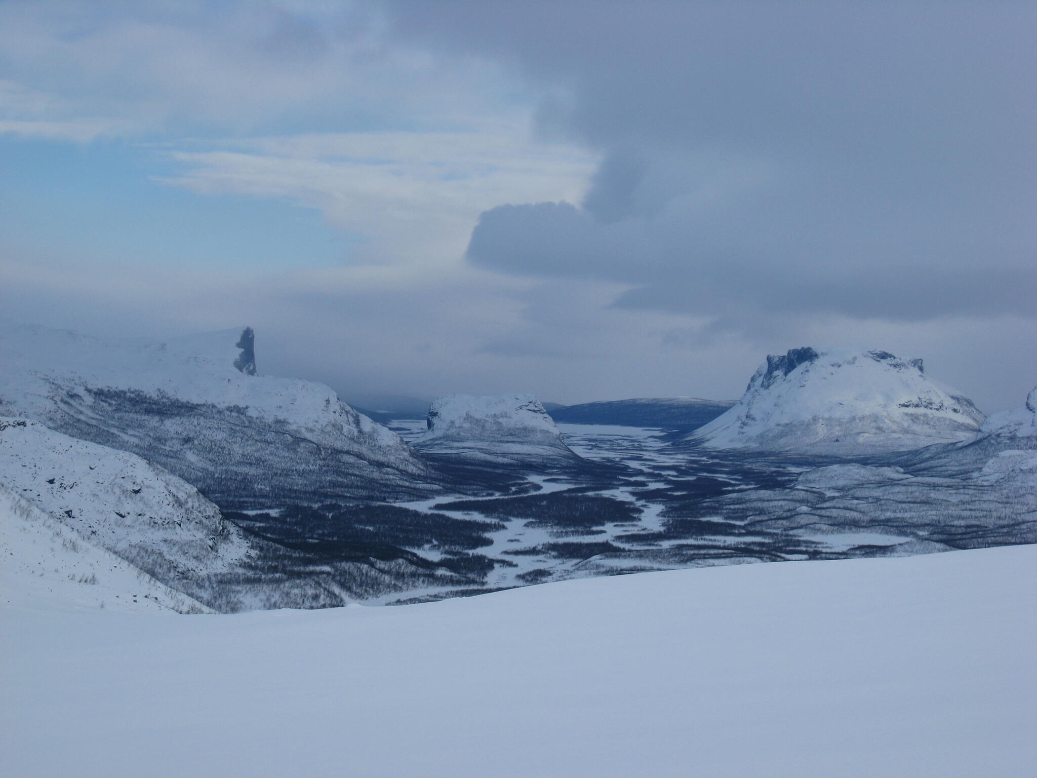 Efter att vi slått läger tog vi oss uppeför Kanalberget som erbjöd denna otroliga utsikt. Åt söder. Längst till vänster Rapadalen. Vindstilla på toppen!