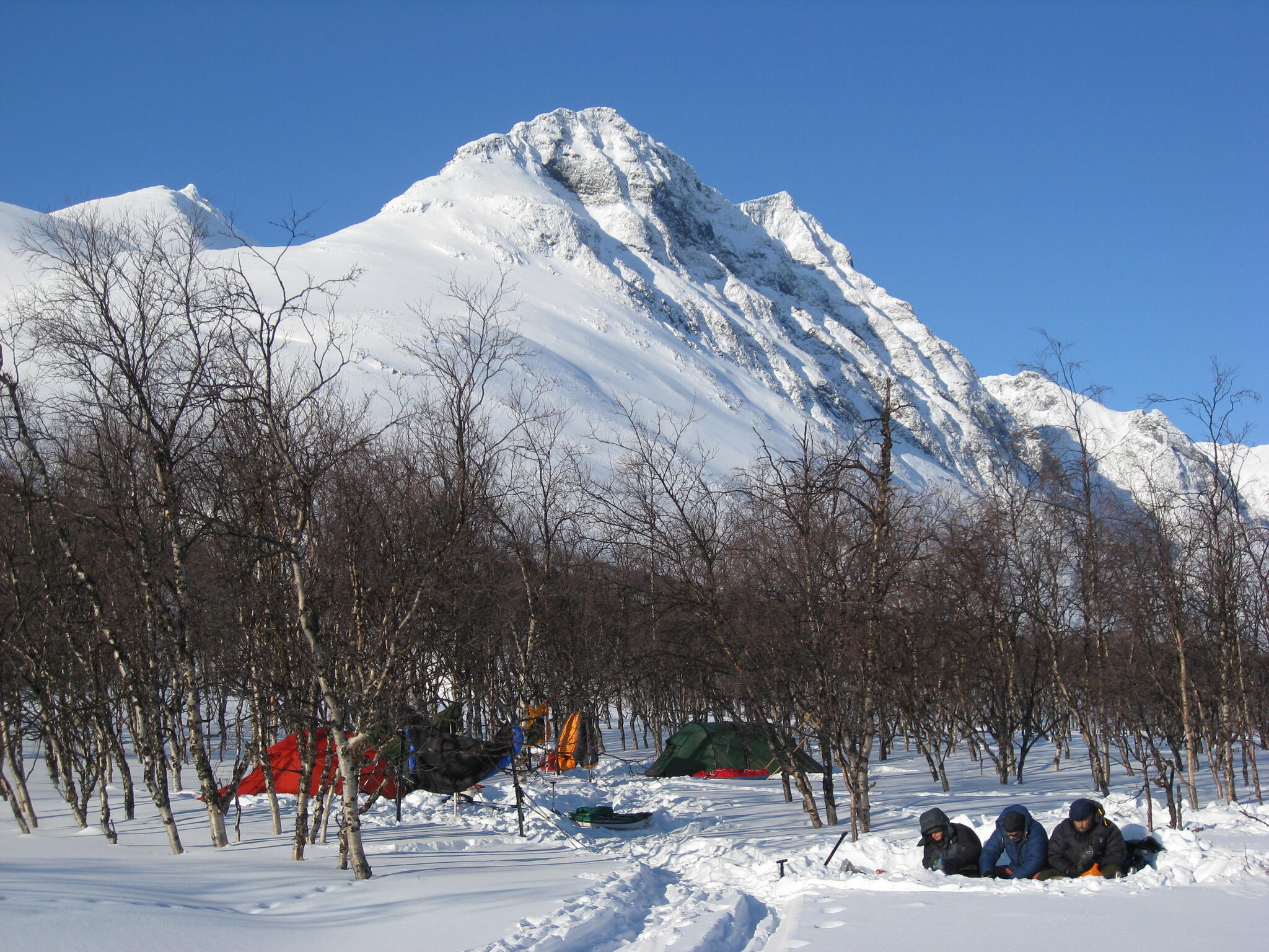 Vår tältplats nedanför fjället Bielloriehppe i Rapadalen. Foto: Michael Heuman