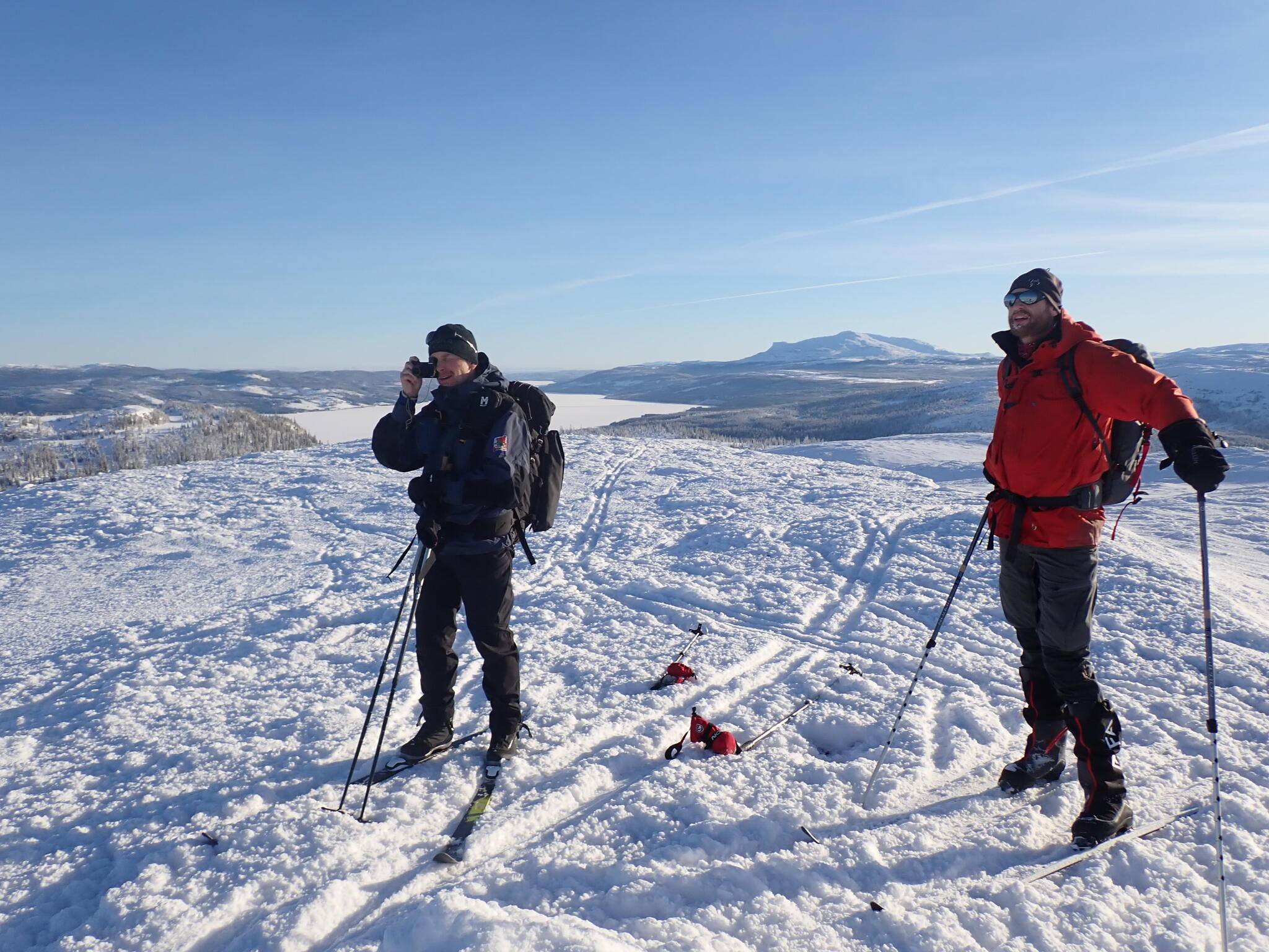 Lunchpaus med utsikt över Sundsvalen, Skäckerfjällen och andra fjäll västerut.