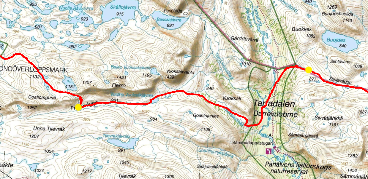 Denna dag skulle vi upp över en bergskedja och sedan vidare mot Sulitelma.