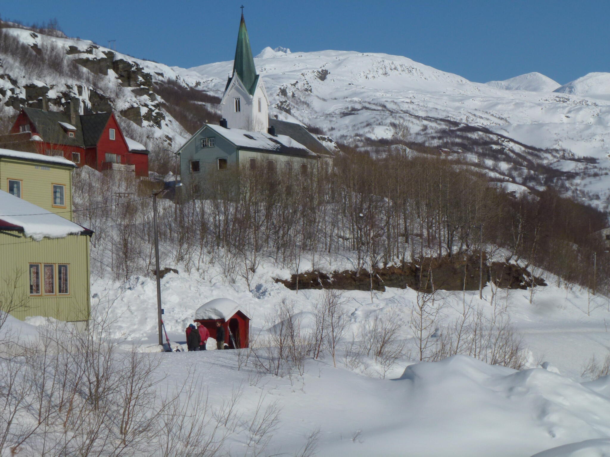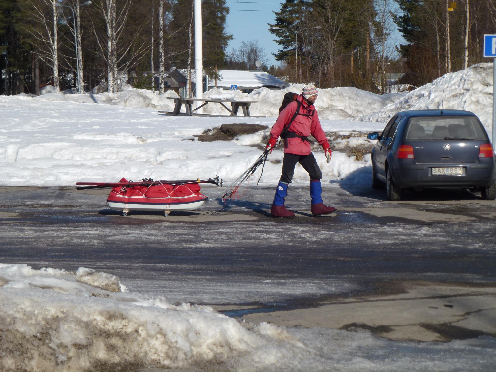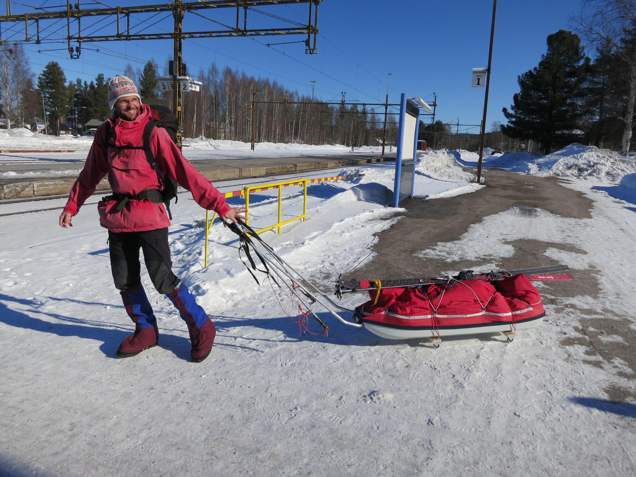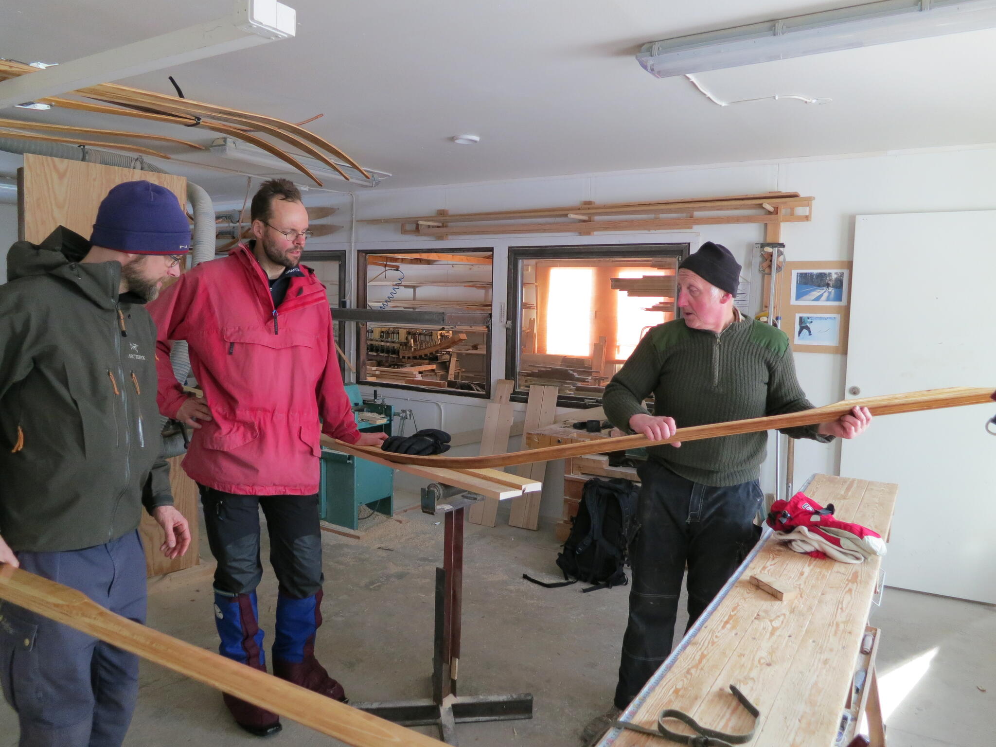 Magnus S hade inför denna tur tagit fram små hjul att ha under pulkan för att lättare kunna dra den till snö och på perronger.I Jokkmokk i väntan på buss till Kvikkjokk besökte vi Bo Östergrens skidverkstad. Det var väldigt givande och han visade oss runt, och till och med skjutsade oss till busstationen efteråt.2 km och 79 höjdmeter uppför