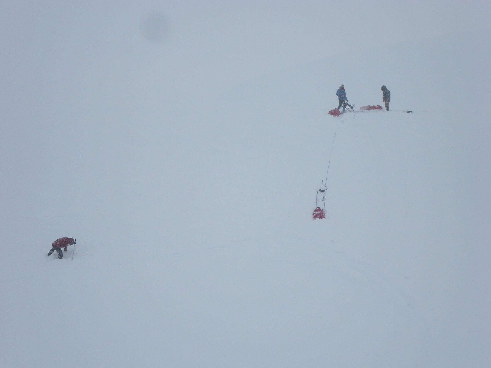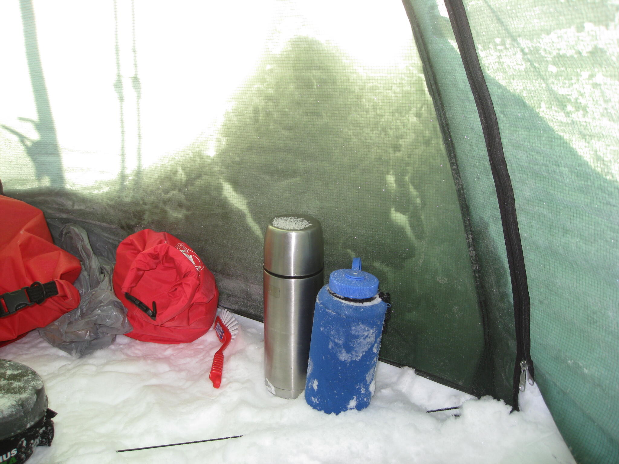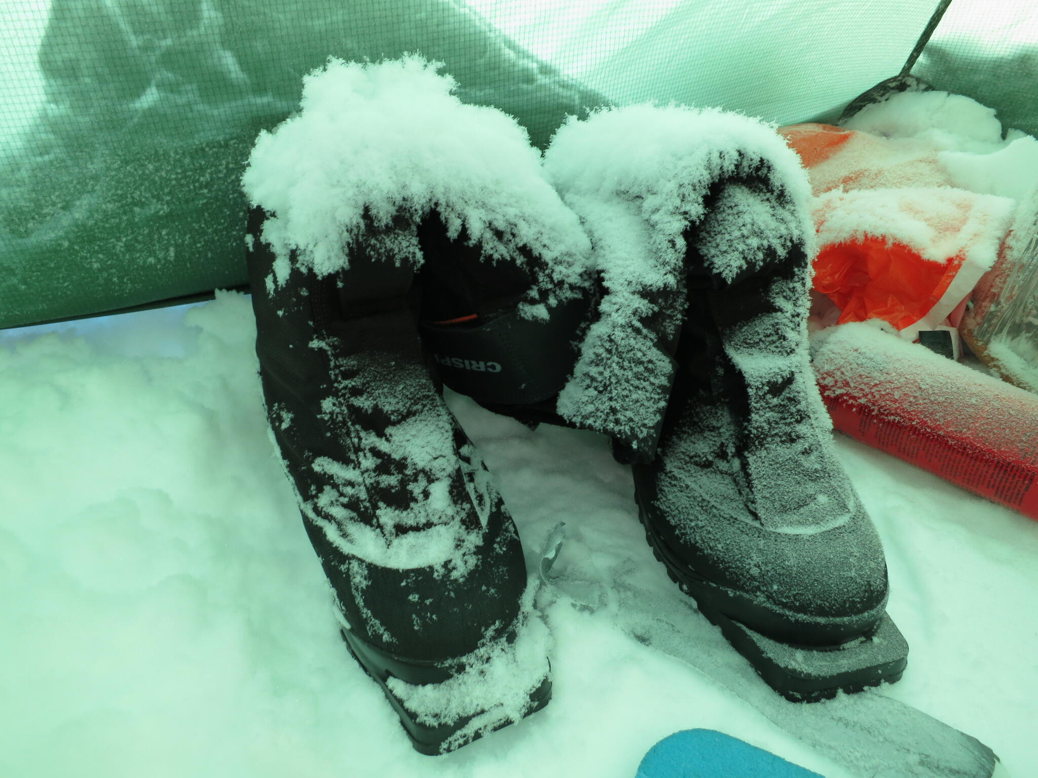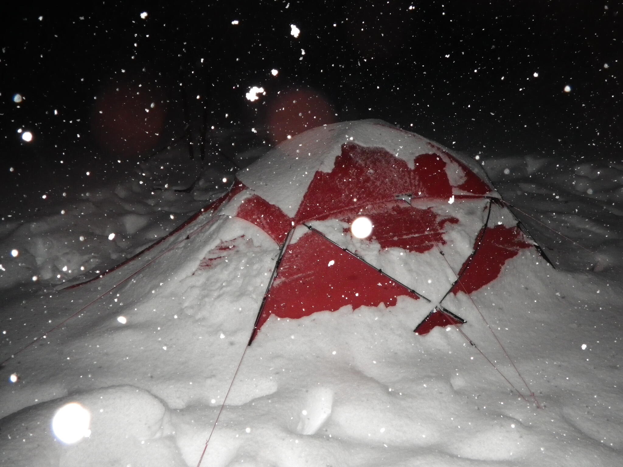 Vi slog läger strax söder om Sulitelma-massivet. Vi hade förhoppning om att kunna göra topptur på Suliskongen från det hållet, via glaciären. Om det bara inte skulle snöa och blåsa så mycket.