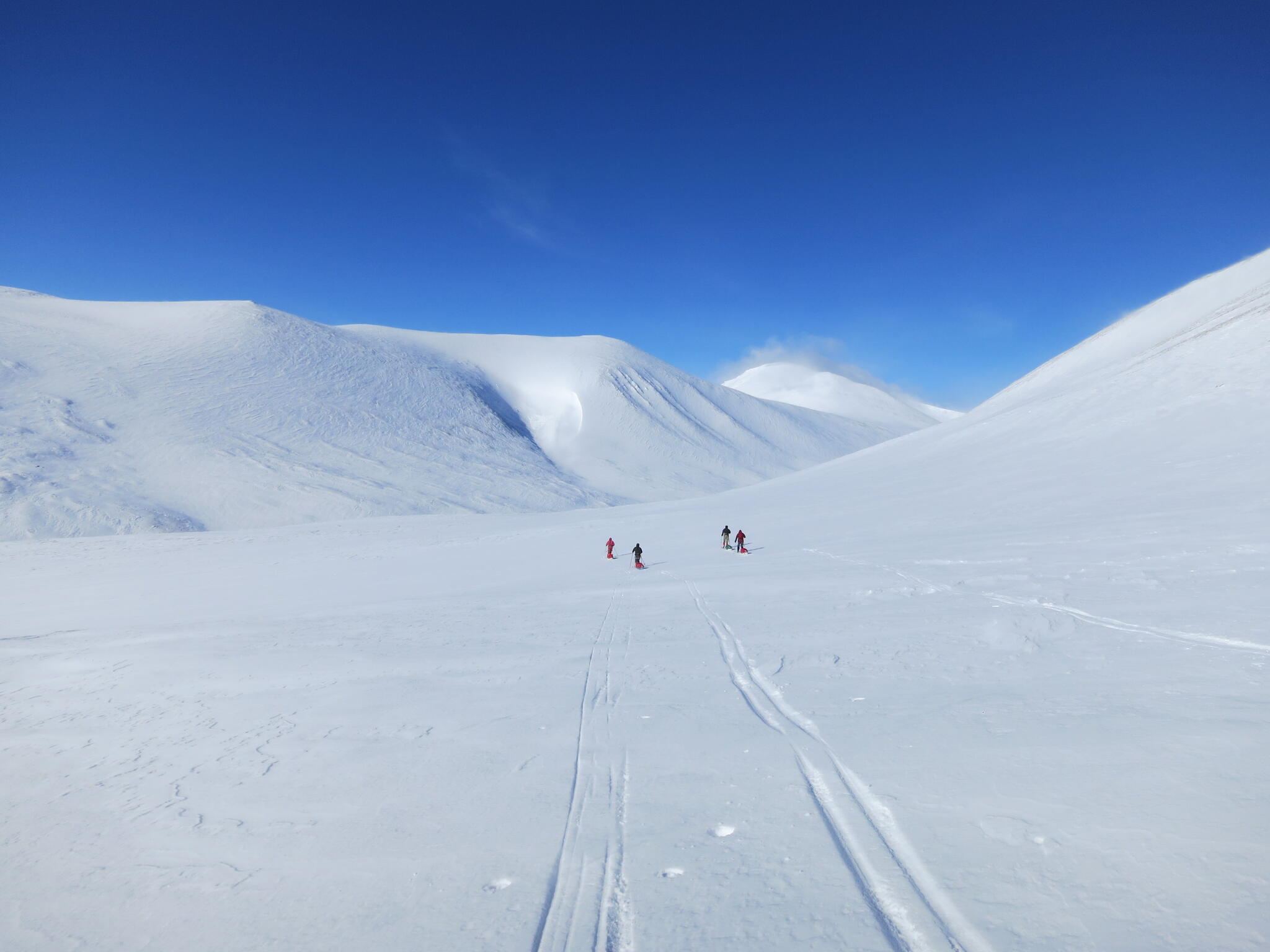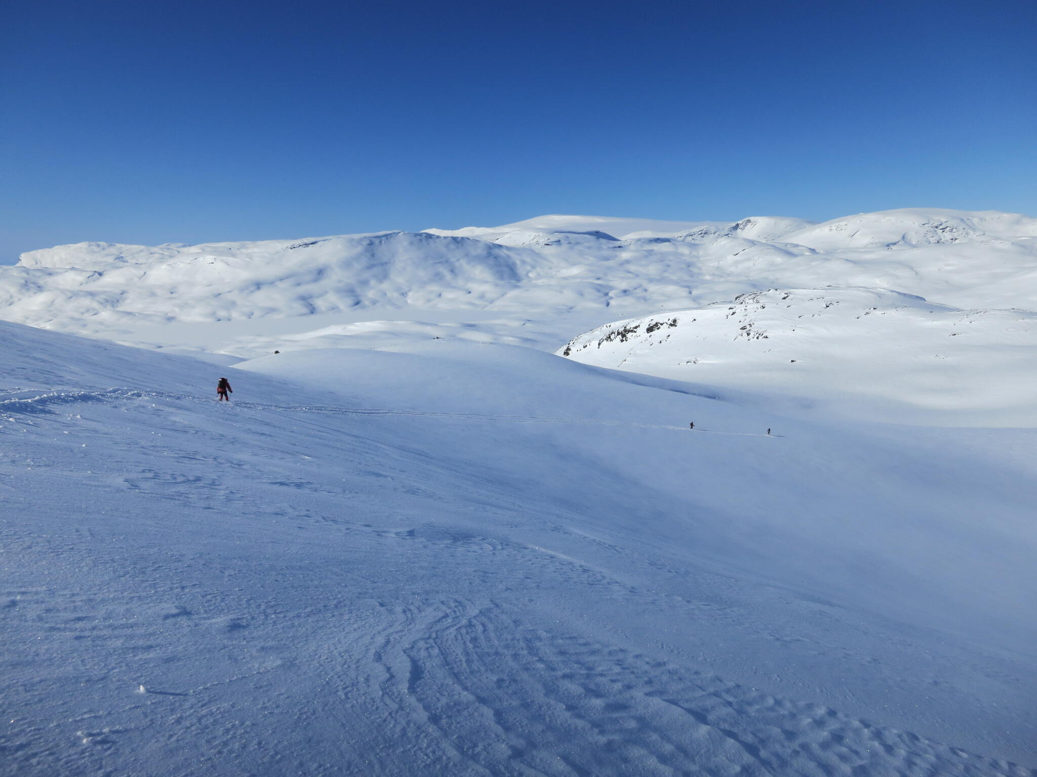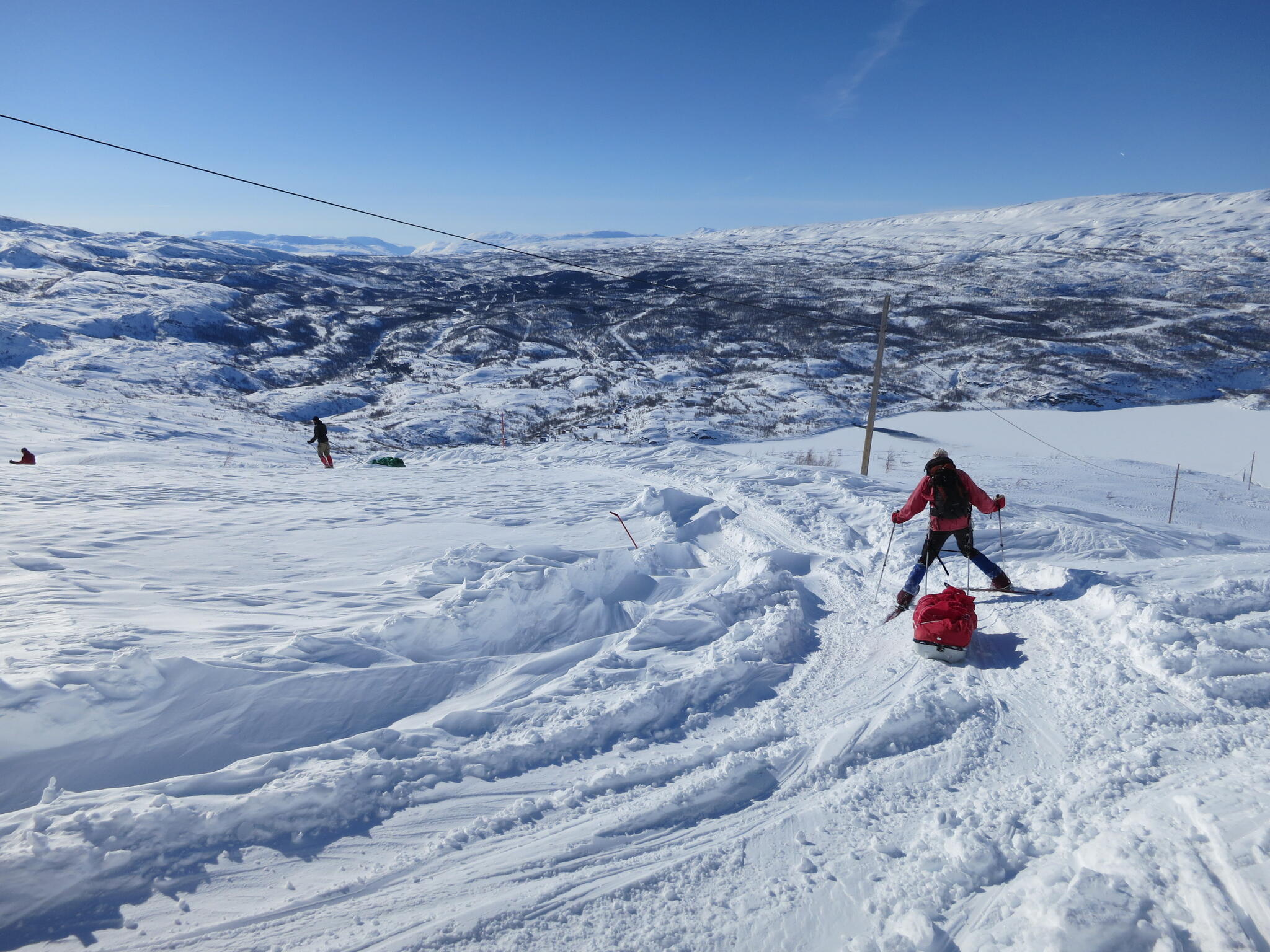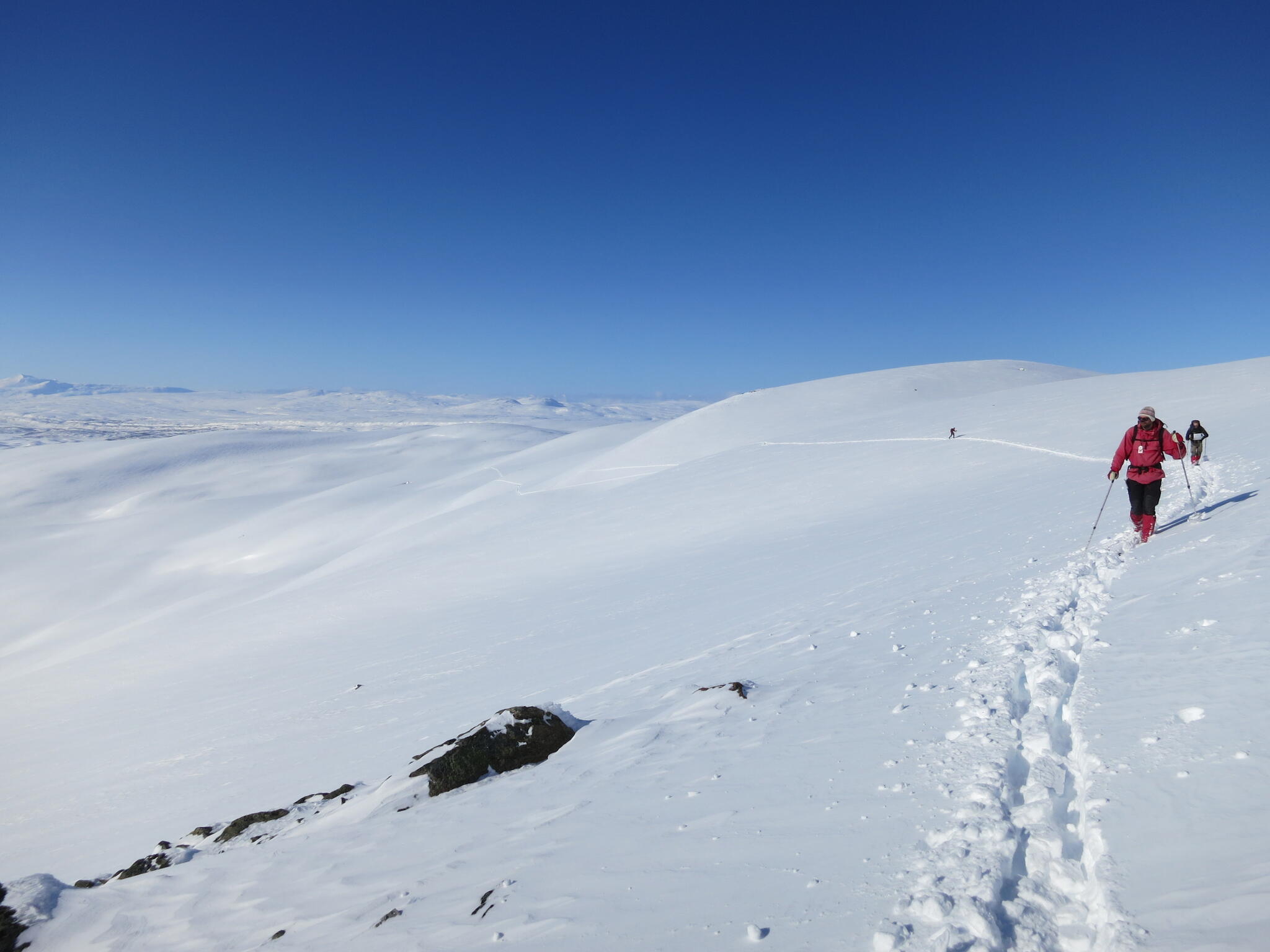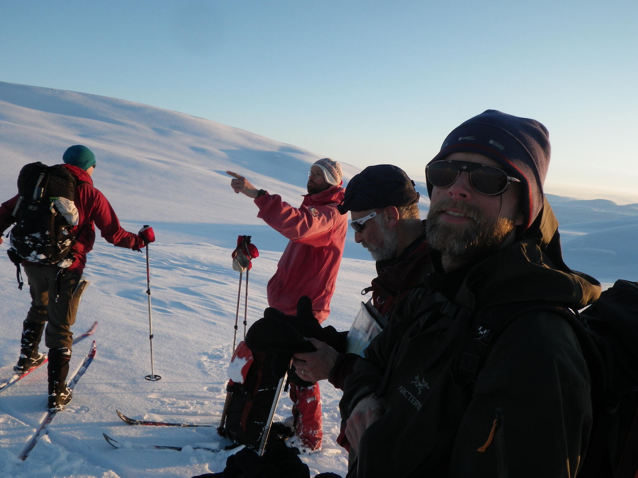 Foto: Michael HeumanPå väg upp på Kokdaltinden. Sårjåstjåhkkå i bakgrunden. Foto: Michael HeumanUppe på Kokdaltinden hade vi fantastisk utsikt. Här ser vi österut mot Sluskhatten till vänster och Knekten till höger. Högsta toppen Suliskongen syns där bak i mitten.Snart alla uppe! Stortoppen och Vardetoppen syns där bak. Foto: Magnus AhnesjöTopparna från vänster: Sluskhatten, Suliskongen, Knekten, Stortoppen och Vardetoppen. Foto: Magnus AhnesjöFoto: Michael HeumanFoto: Anders AhnesjöFoto: Michael HeumanDags att börja skida neråt tillbaka mot stugan. Foto: Michael HeumanFoto: Michael HeumanFoto: Anders Ahnesjö