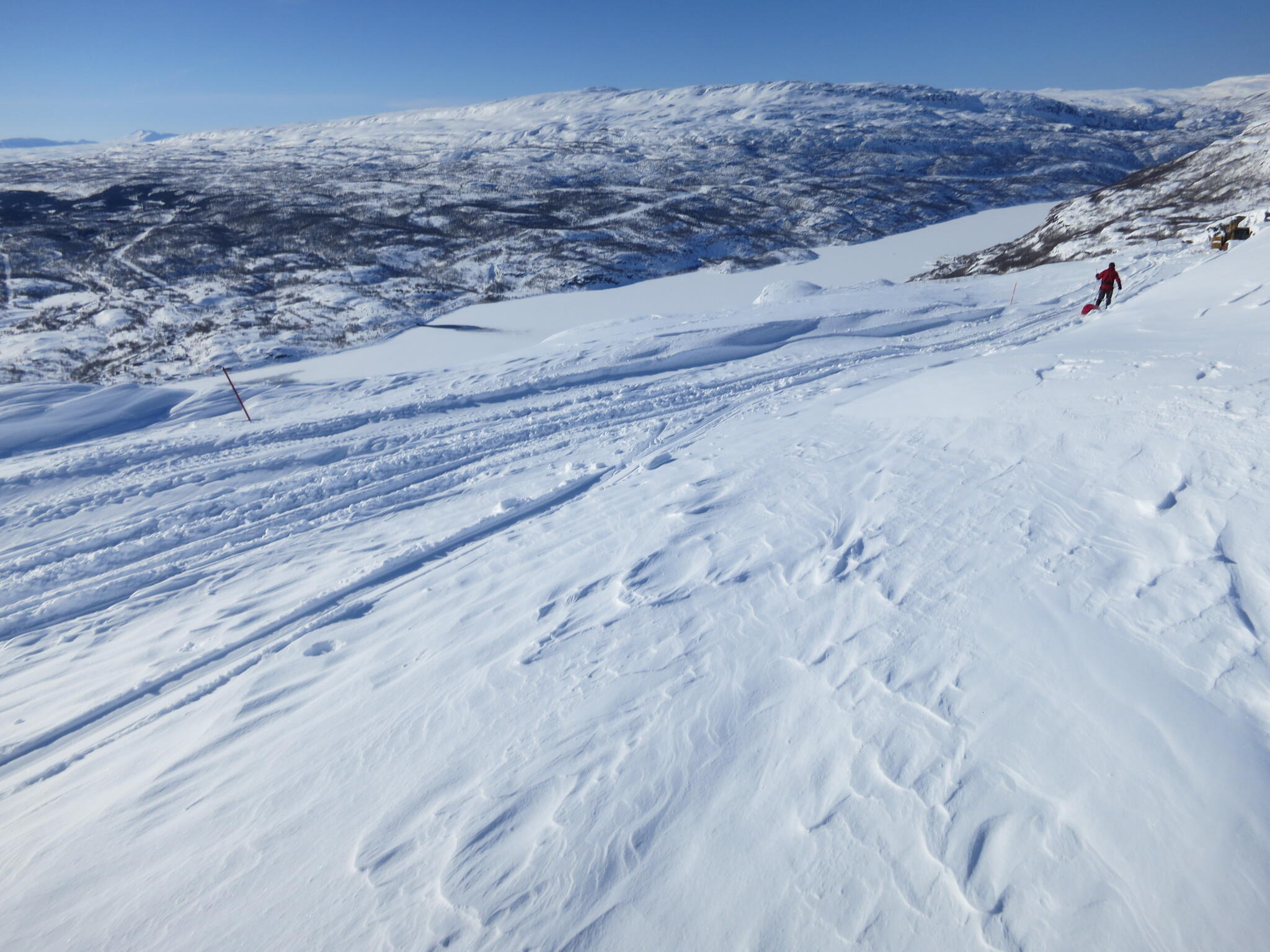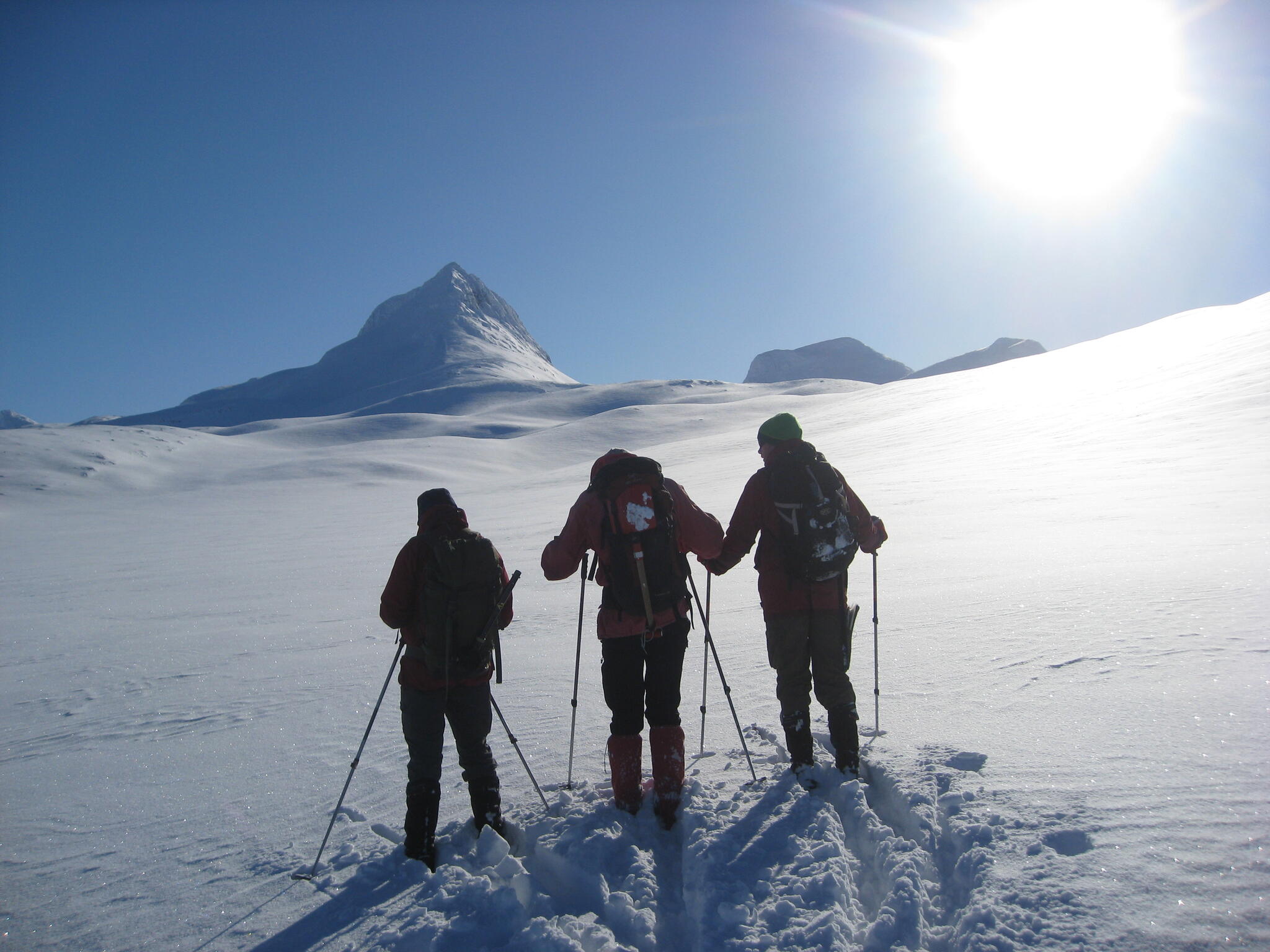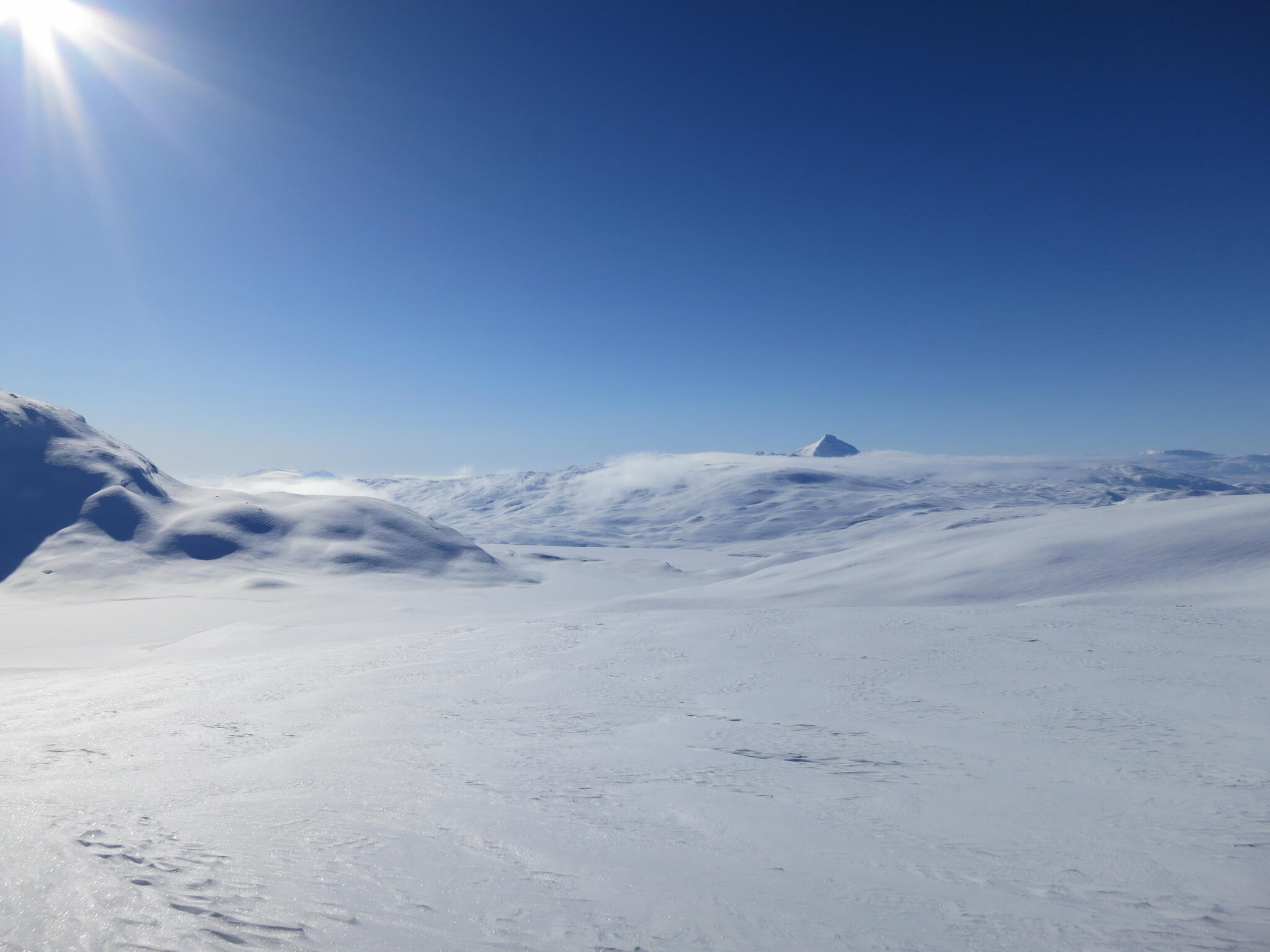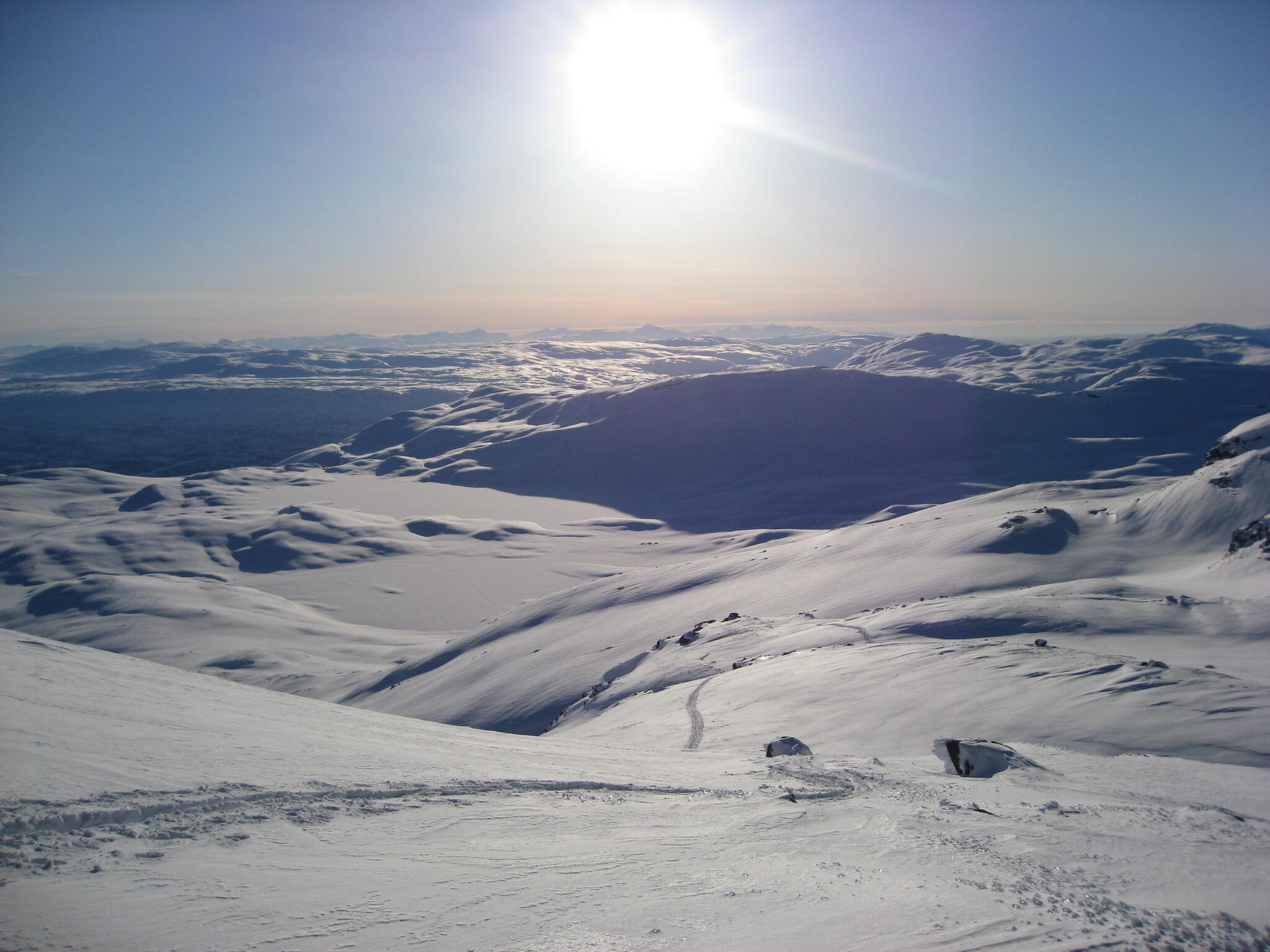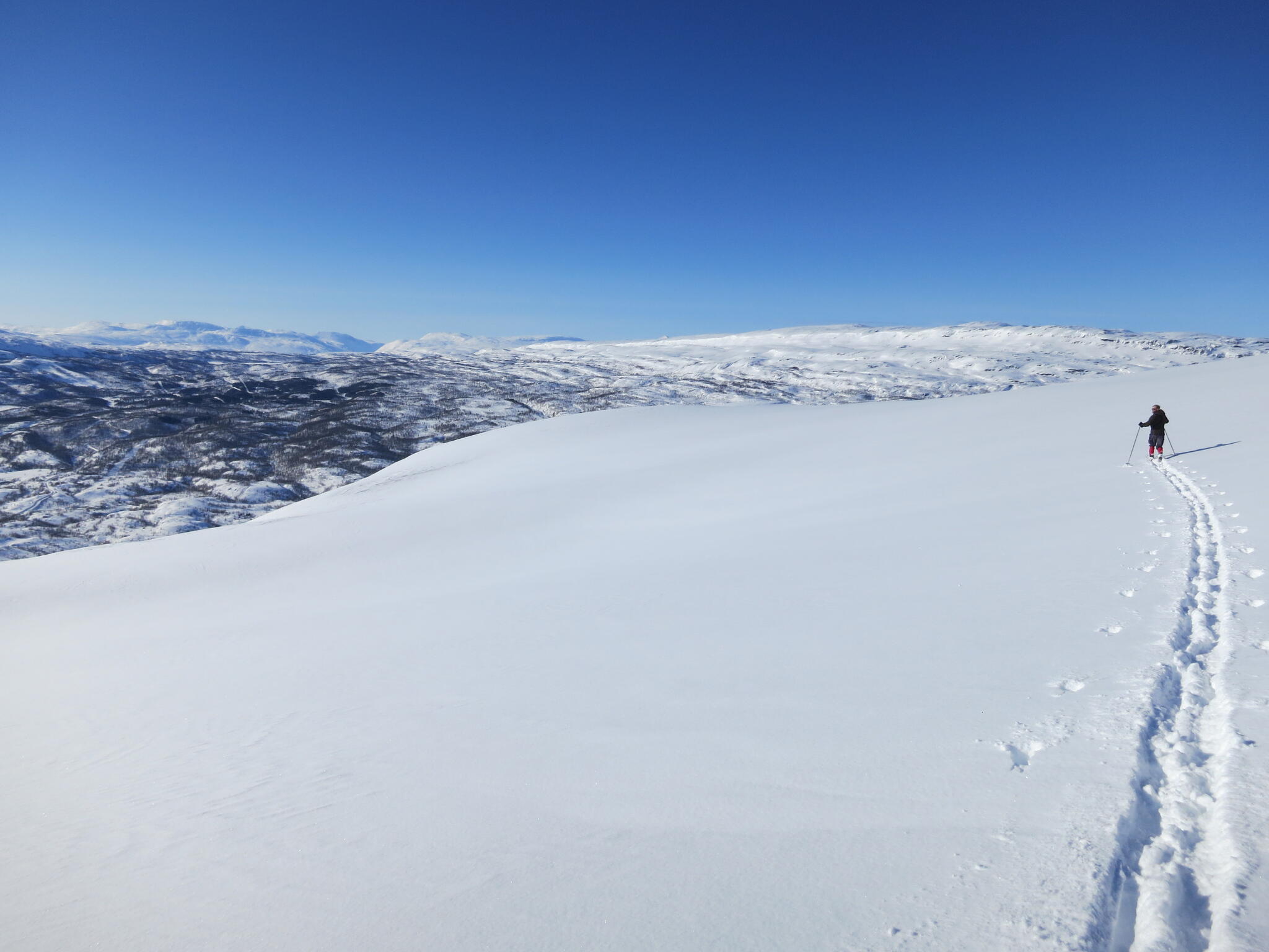 Denna dag var vi verkligen taggade på en topptur. Fint väder: vindstilla, sol och massor av pudersnö. Vi siktade in oss på den höga toppen Suliskongen.