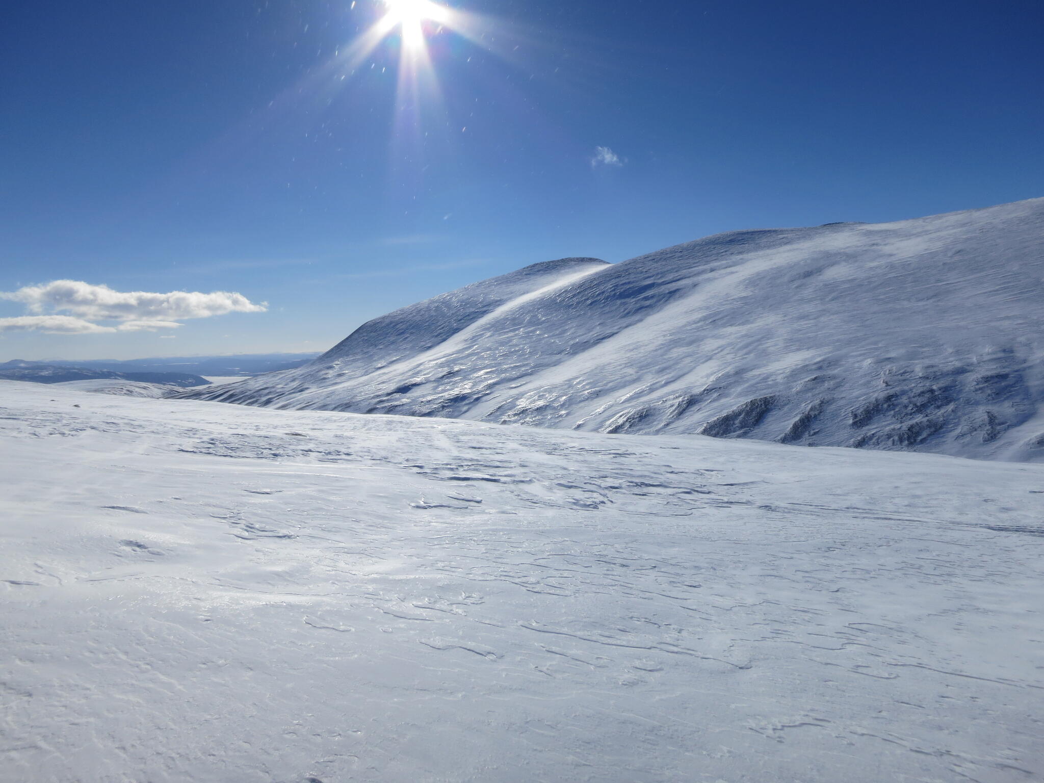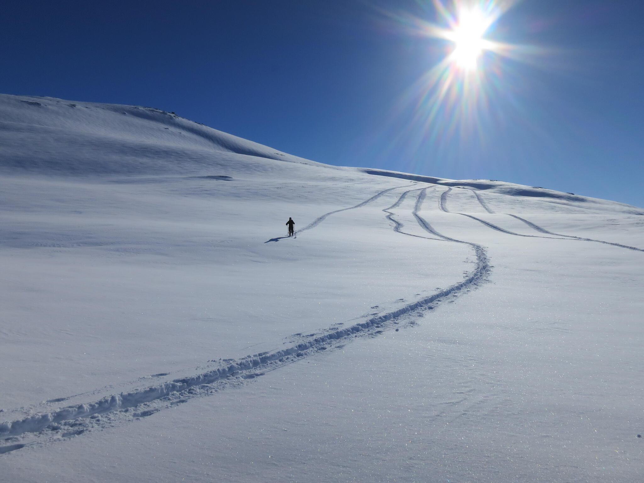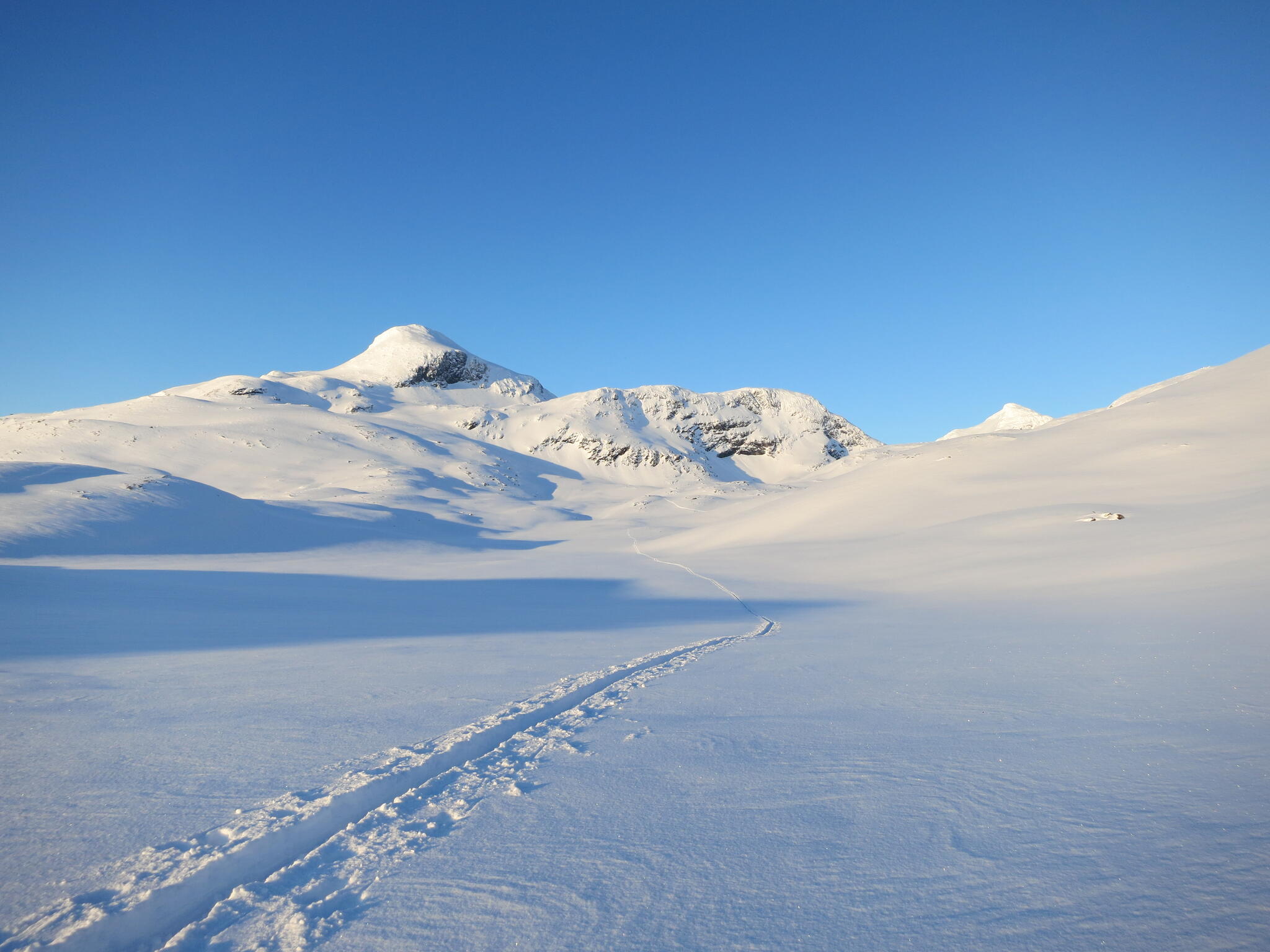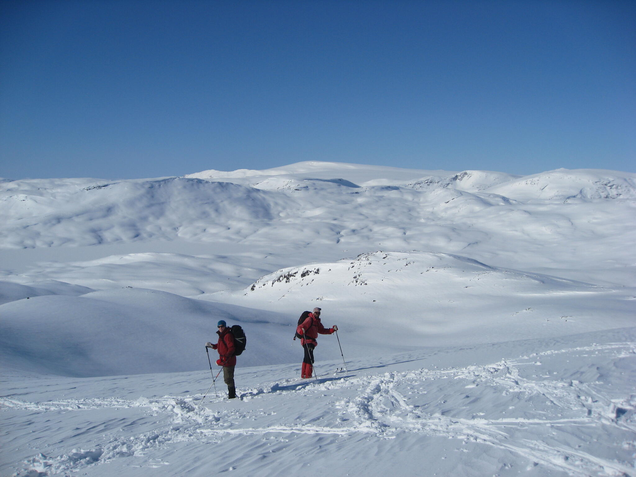 Denna dag var vi verkligen taggade på en topptur. Fint väder: vindstilla, sol och massor av pudersnö. Vi siktade in oss på den höga toppen Suliskongen.