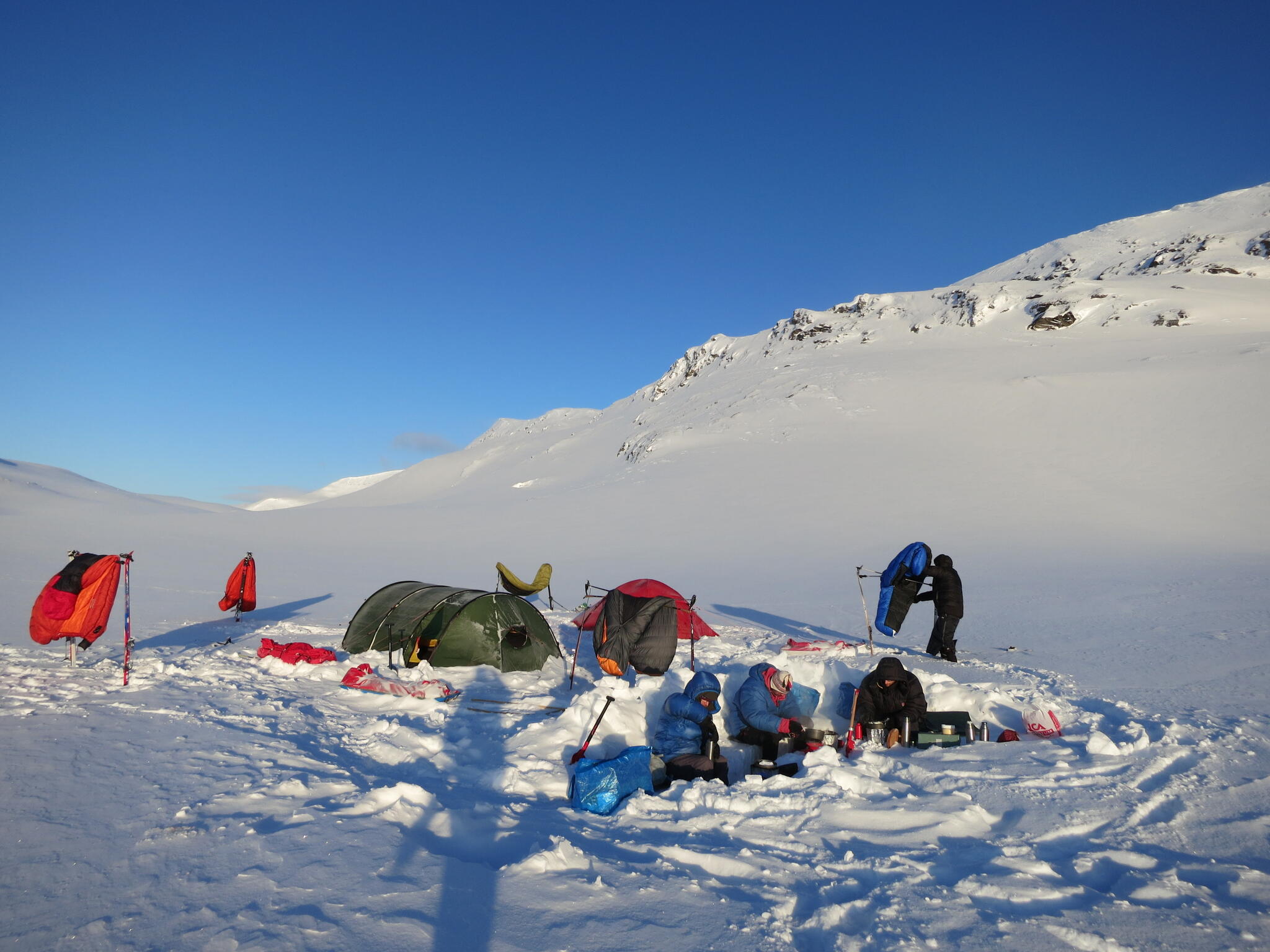 Middagsdags i första lägret på fjället. Foto: Magnus Ahnesjö