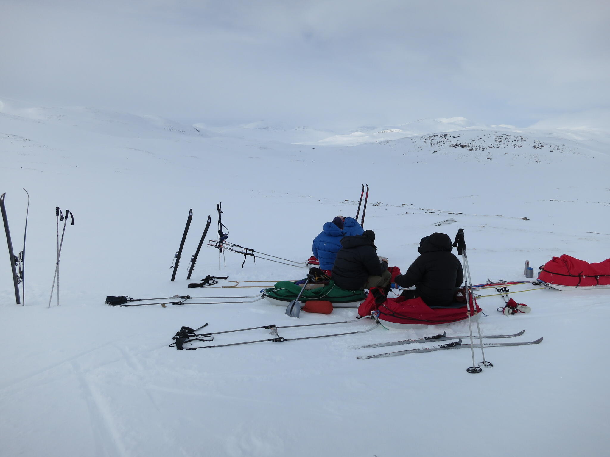 När vi kom upp från skogen belönades vi med fina vyer. Foto: Magnus AhnesjöFoto: Anders AhnesjöFoto: Michael HeumanDet var fint skidföre uppe på fjället. Foto: Michael HeumanFikapaus. Foto: Michael Heuman