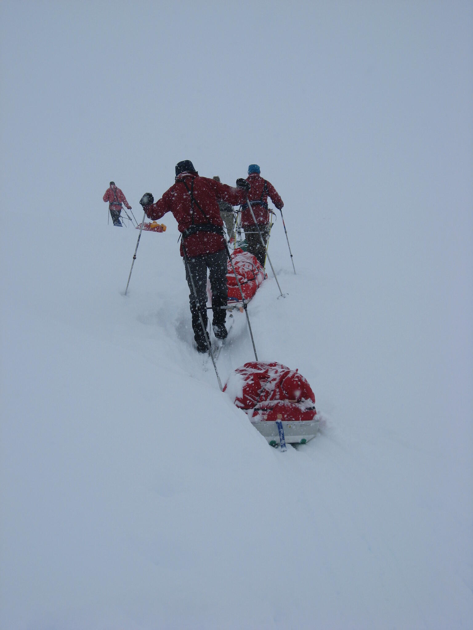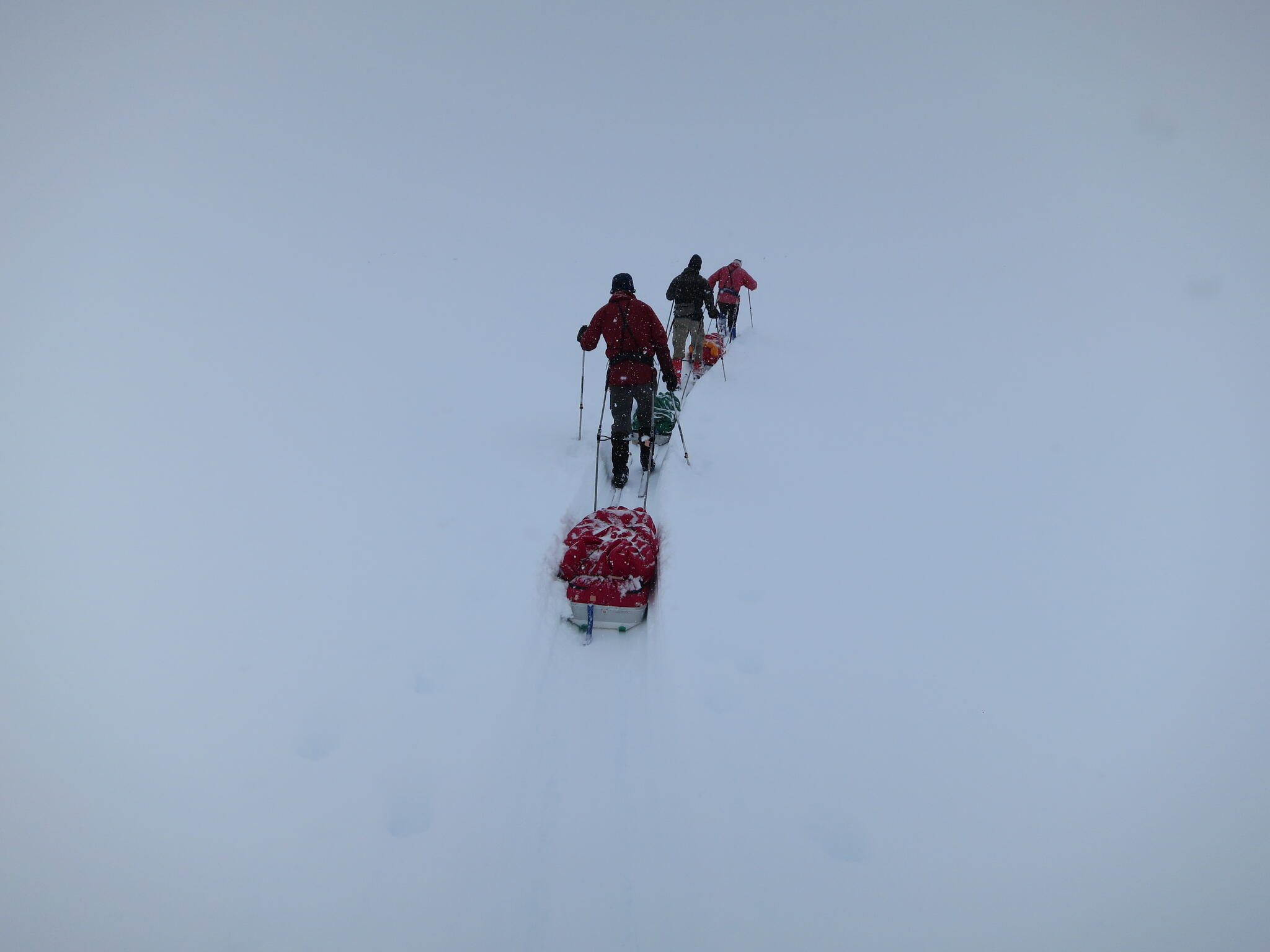 Snön blev allt djupare och det blev allt jobbigare att dra pulkorna.