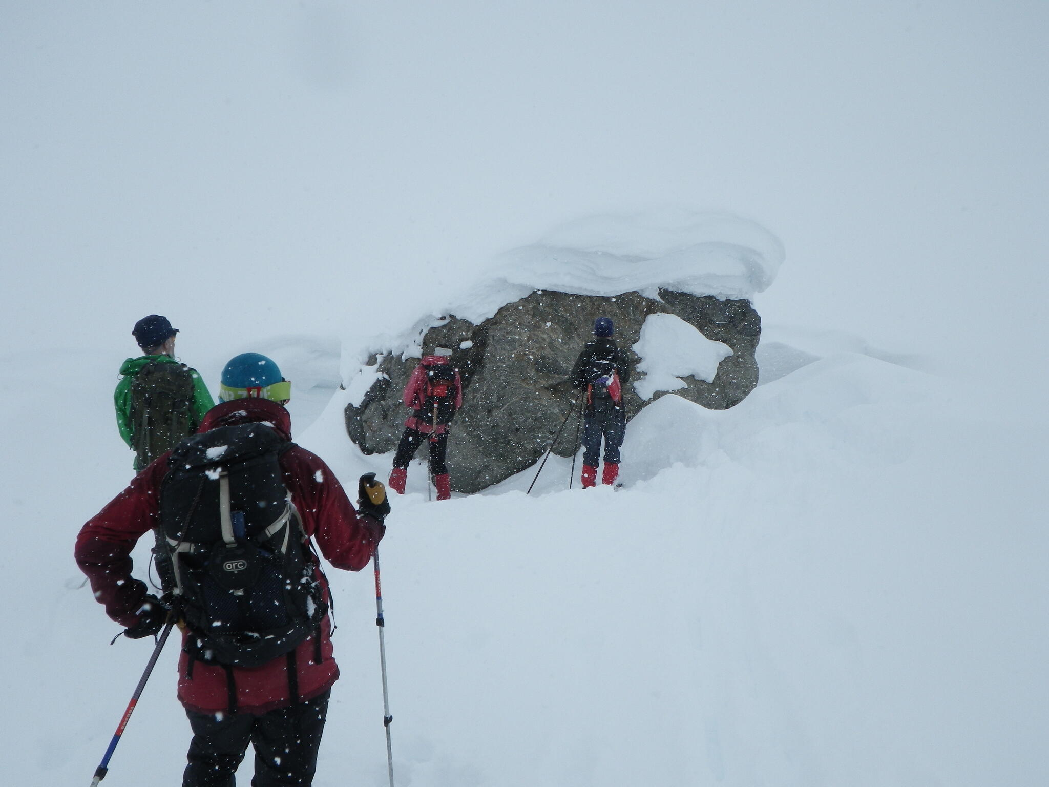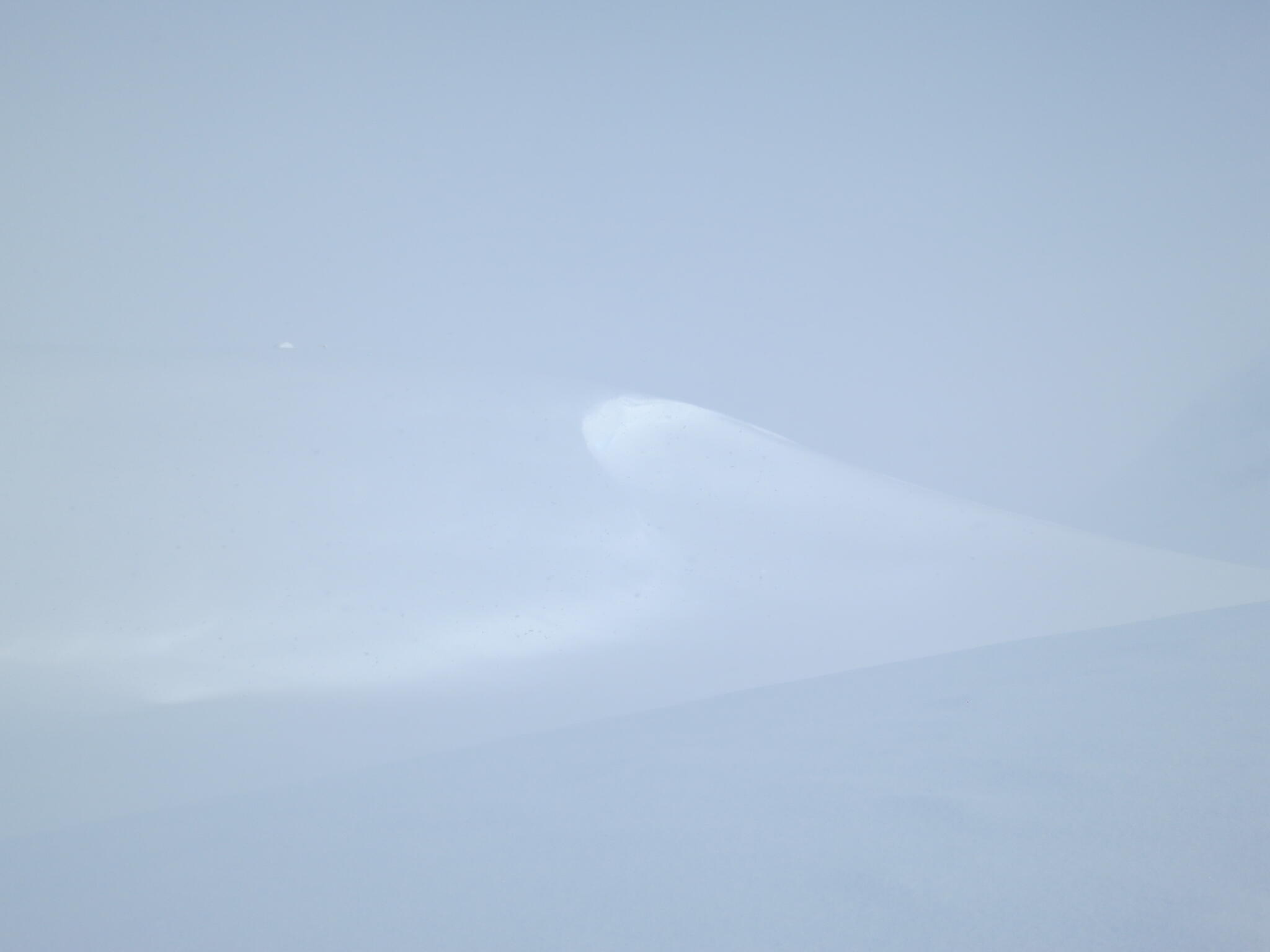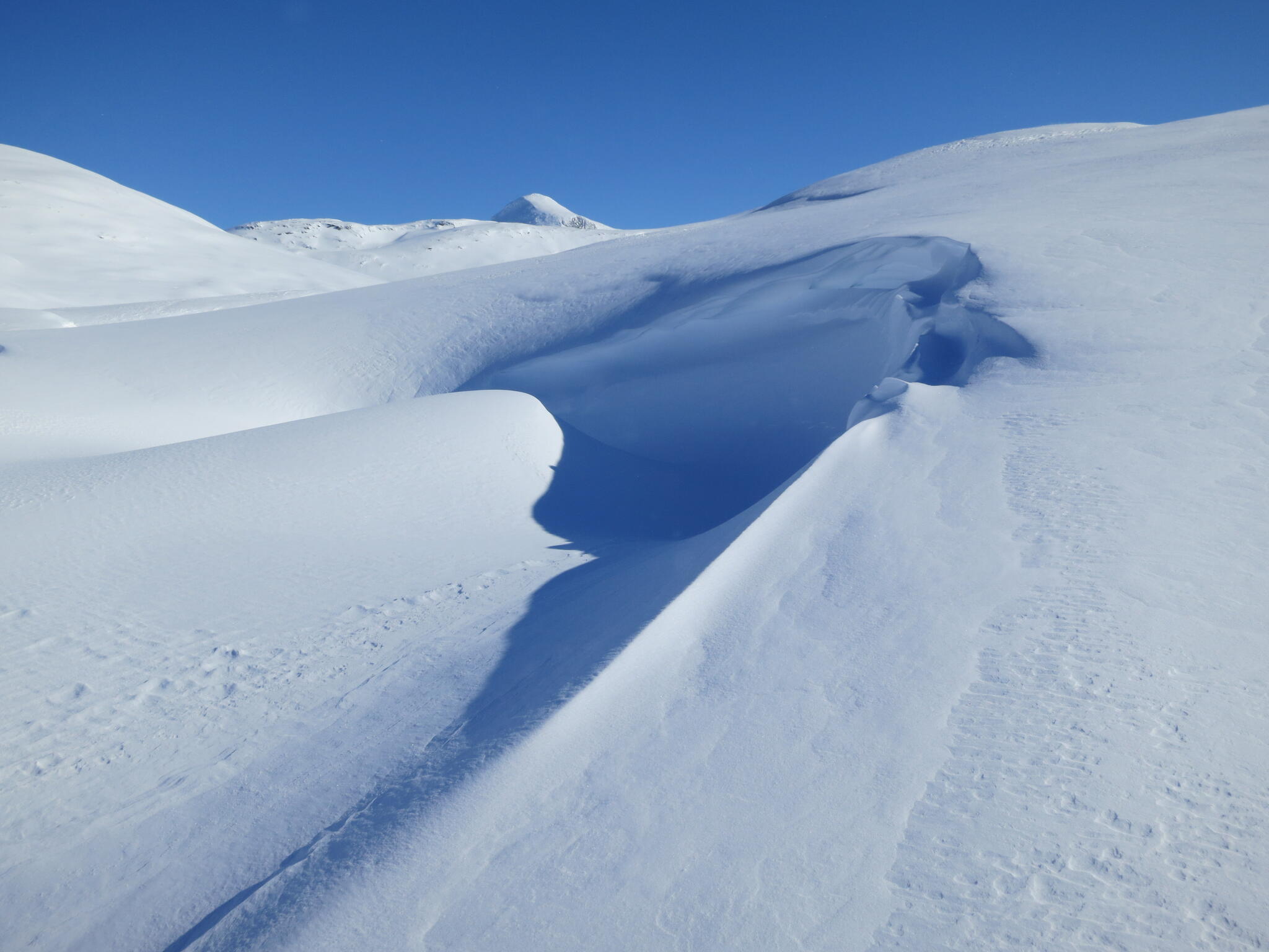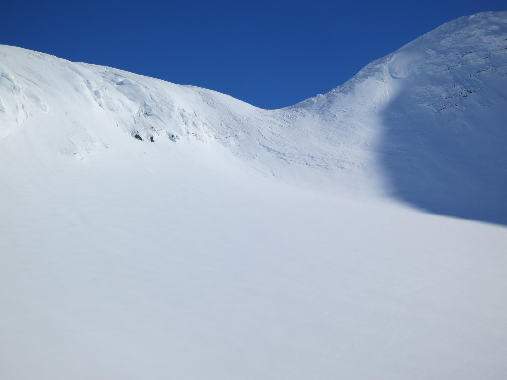Vi velade hur vi skulle göra. Mycket lössnö på en brant sluttning. Förmodligen skulle det fungera, men vi kom fram till att vi inte skulle ta risken. Vi skidade istället till Kokdaltinden. En topp som såg ut att erbjuda fin utsikt.