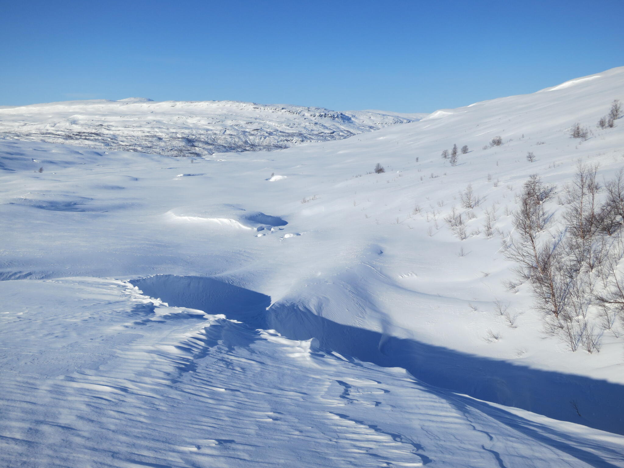 Det blev en dag med mycket snöfall, så istället för en topptur på Suliskongen blev det lite skidåkning i närområdet. Bland annat längs jokken.