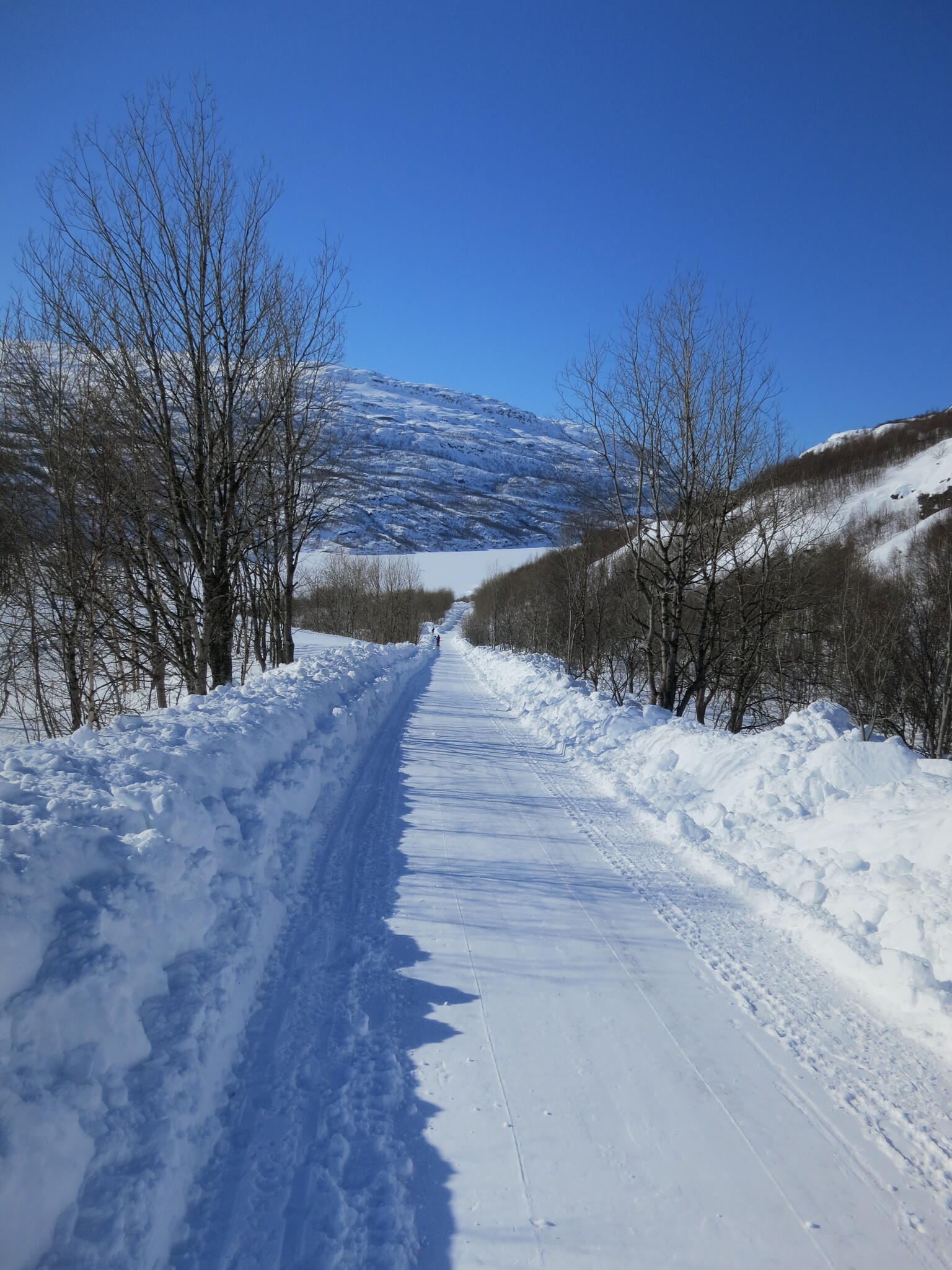 Vi skida upp på en väg som går längs med sjön vi skidade på och följde den ett tag.