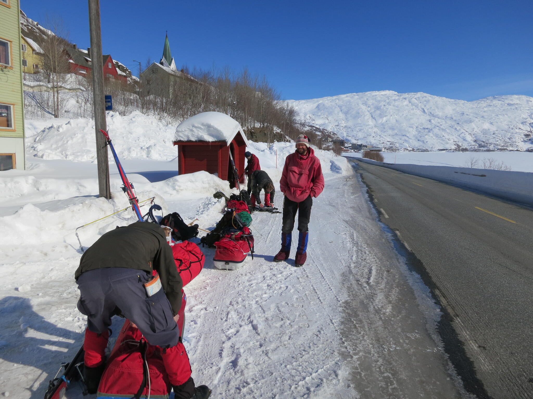 Det var bitvis lite isigt så vi var några som tog på oss stegjärn och gick ner på vägen.Foto: Michael HeumanFoto: Michael HeumanFoto: Magnus AhnesjöSvenskar på Svenskveien. Foto: Michael HeumanMatpaus vid busshållplatsen.