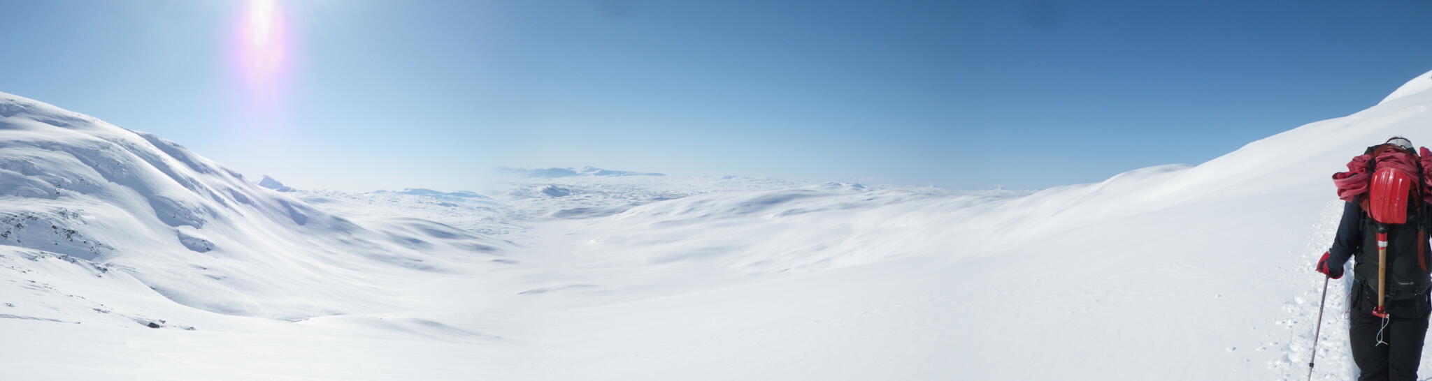 Den här dagen erbjöd riktigt fina vyer, när vi skidade uppe i Tarrekaise-massivet.