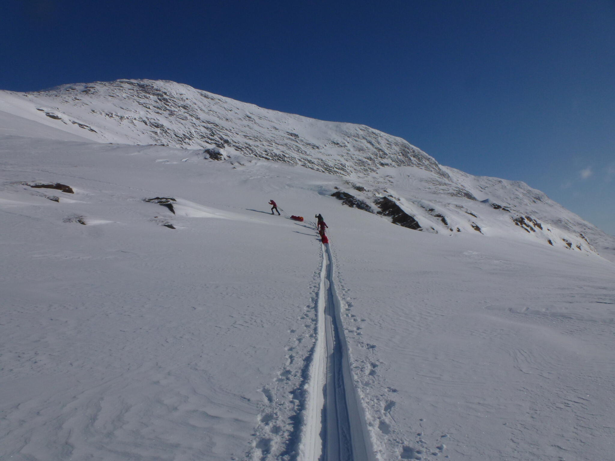 Påskturen 2013. En skidtur som vi relativt ofta refererar till. För den hårda starten med brant stigning i svår terräng på Prinskullen; för den djupa snön vi drog pulkorna genom under ett par dagar; men också för det fantastiska vädret med puder vid Sulitelma, men där en brant uppförsbacke fick oss att avstå från topptursförsöket på Suliskongen. Men där vi istället fick en jättefin tur på Koktaltinden.